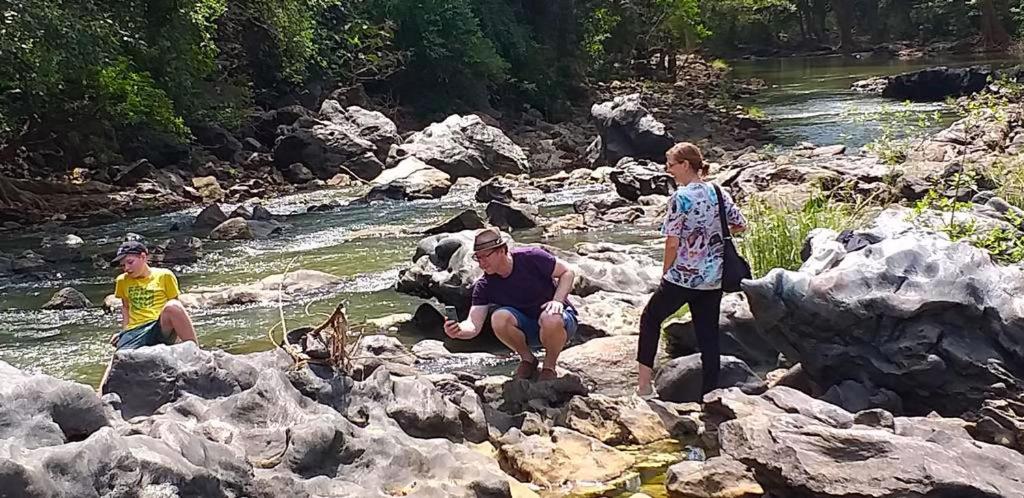We had drinks and lunch on the hut, while looking at birds and monkeys in the trees over the river (tip: bring some binoculars. We used ours alot looking at many different birds).