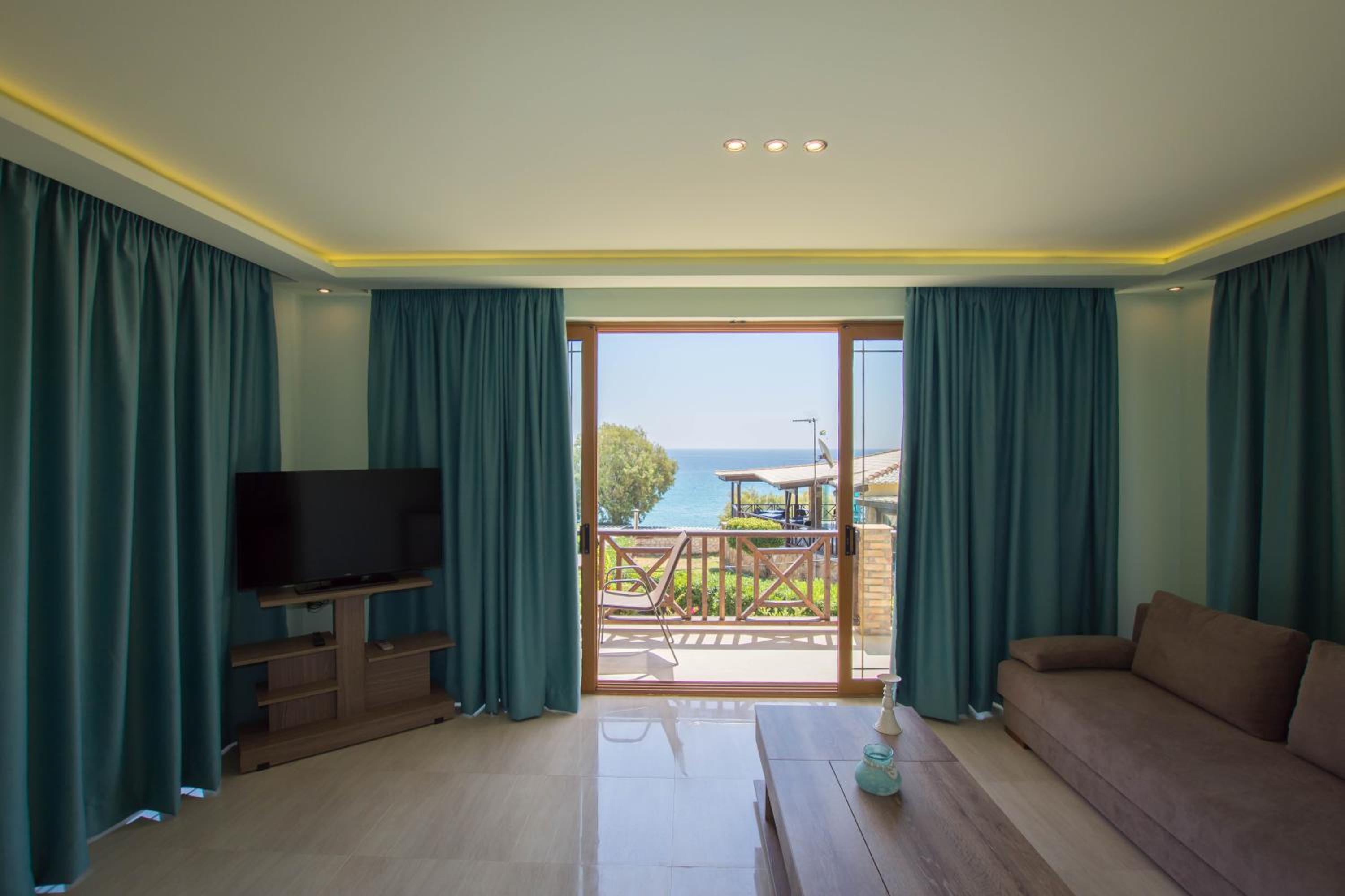 We chose Koukis Club because we wanted to be on a sandy beach and the beach was sandy, more shallow than expected, and with calm warm waters in a protected bay. There are no beach chairs included with your stay but there is a discount for guests to rent chairs and umbrellas for the day. The pool area is very nice, chairs are provided, and we ended up spending quite a bit of time relaxing, tanning, and swimming here. The rooms were large, spacious, with modern furnishings and with large balconies facing the sea with amazing views especially at sunrise and sunset. The rooms were kitchenettes with a coffee maker, hot top, kettle, and a few pans and dishware. A safe was provided as well as a very good quality hair dryer.A continental style breakfast was included each day from 8:30am-10:30am and included a loaf, bread, jams, meats, boiled egg, vegetables, fruits, and cheeses. I would have appreciated some yogurt - either Greek yogurt or small packaged yogurts as I didn't eat the meats or boiled eggs. We only had breakfast a couple of times as we had tours and a pickup before the 8:30am opening time in the morning. Rooms and bathrooms were clean and very open feeling as our ceiling vaulted in the 3rd floor room. I liked the cozy blankets provided for the room.