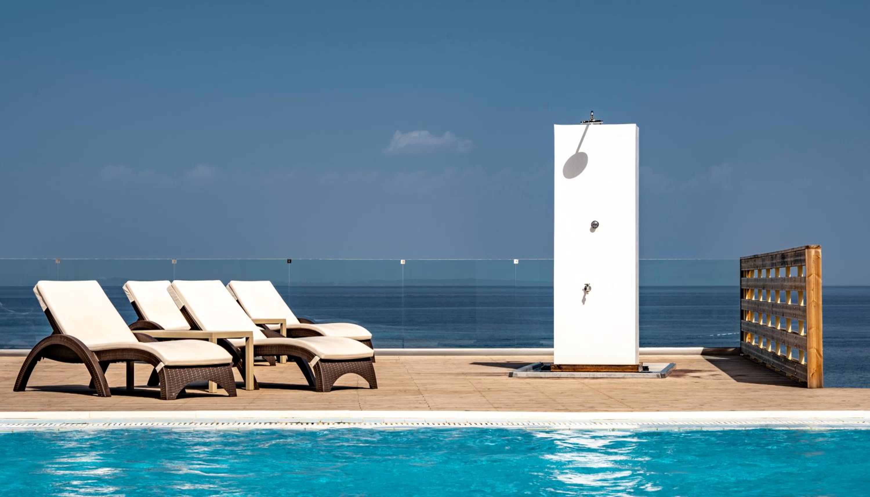 Amazing location, right on the sea front with easy access (as long as you are ok with steps). Beautiful views from the room and the beach was gorgeous, clean, sandy, gently shelving, completely clear water - a joy to swim in. Staff were welcoming and friendly. Spacious rooms and the best hotel hair dryer I have ever used! So good I am going to buy one for home. Pool was clean and large but cold so we only braved it a couple of times.