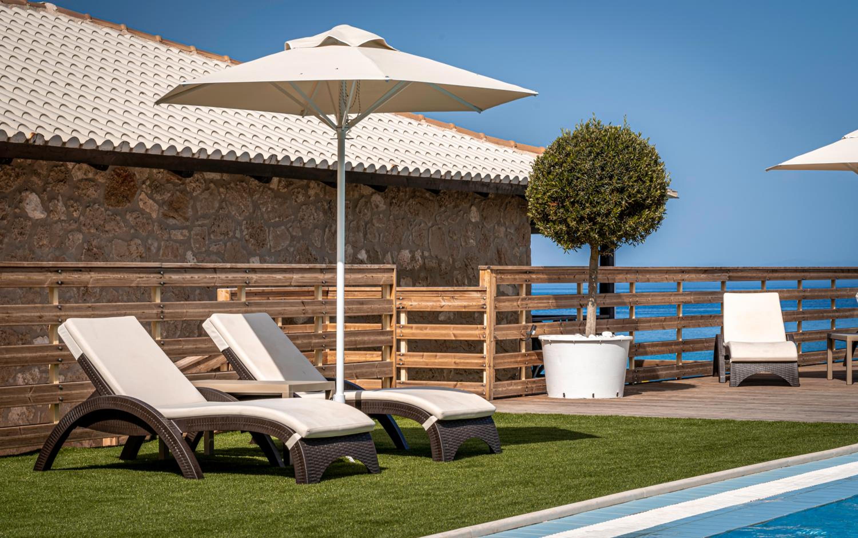 Very poor wifi in the rooms and limited English speaking channels on the TV meant that even though it was smart, flat screen TV, no access to online services such as netflix etc. Not a problem mostly as we spent our time out of the rooms but was a frustration that with some wifi boosters could easily be fixed and in this day and age is basic level of service expected in any hotel. Breakfast, although I can see the effort attempted was very poor so we only went on one day. Limited choice, cold meats and cheese, some fruit, cereal, boiled eggs. Also problems with wasps which they attempted to manage by laying out honey but unfortunately just meant you were constantly bothered whilst trying to eat so not very relaxing despite the beautiful view. Rooms not well cleaned - drains in the bathroom were disgusting and we ran out of toilet roll and had to ask for more (which they gladly supplied). Pricey drinks at the bar and we were very disappointed that despite being guests of the hotel we still had to pay for the beach beds at 20 euros a day. We also had loss of water on 2 days and loss of electric on another although these issues were quickly resolved. Also a lot of the pool sunbeds need replacing and were ripped or dirty. With a little more investment this place has the potential to be a gold mine so just needs a bit more love and attention and you could charge more for your rooms.