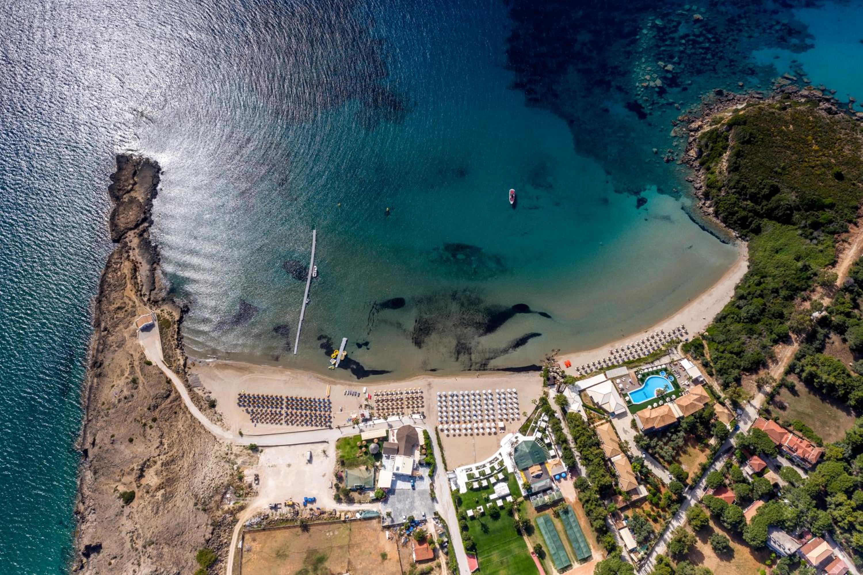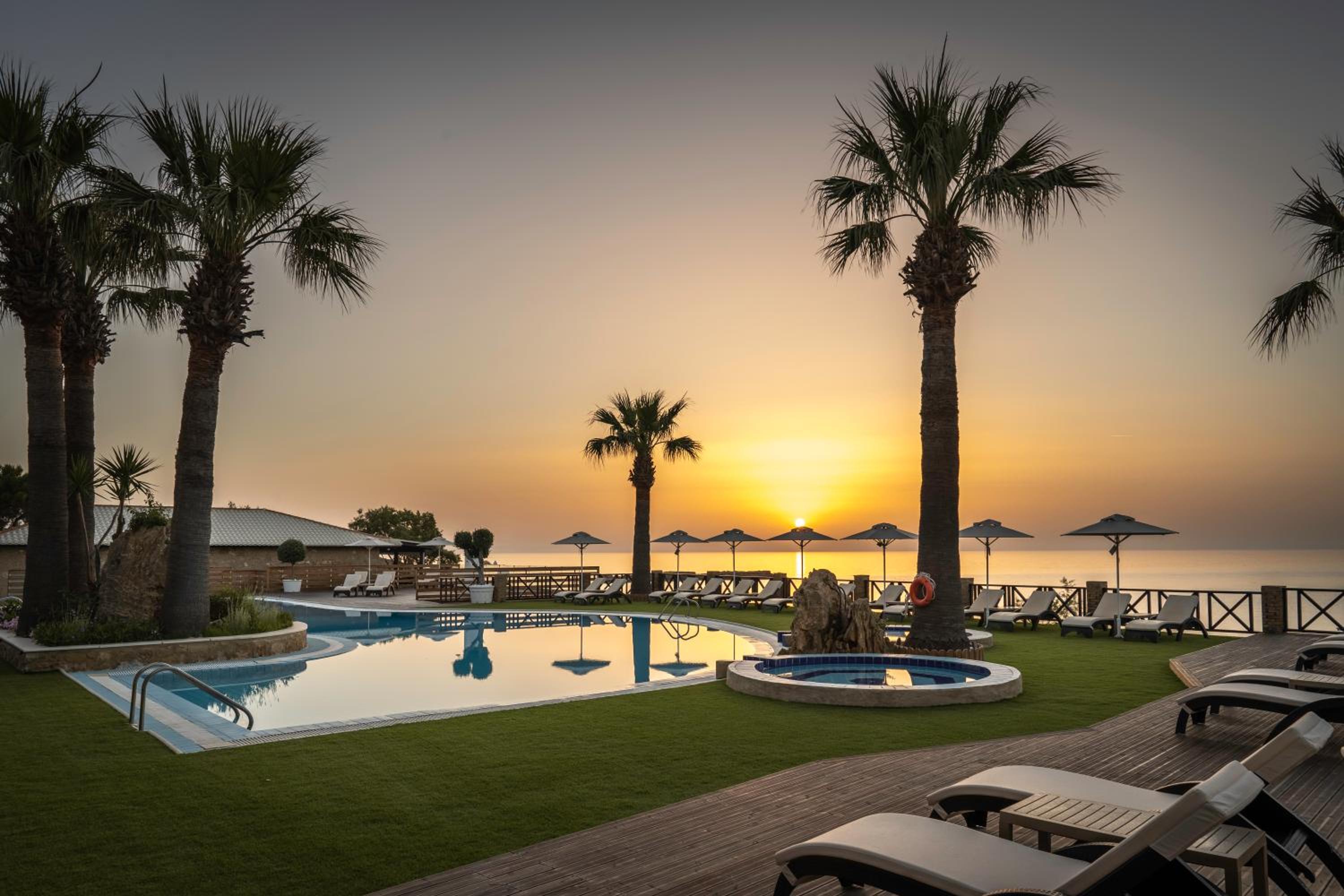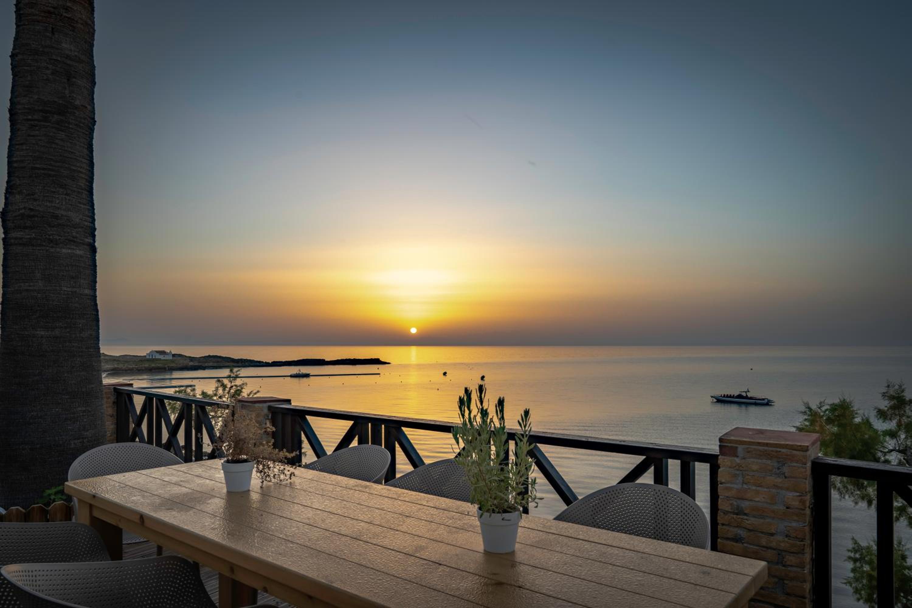 Perfekte Lage, sehr sauber, ruhig, sehr freundliches Personal sehr gute Hotel-Eigene Taverne, ganz tolle Strandbar mit toller Aussicht