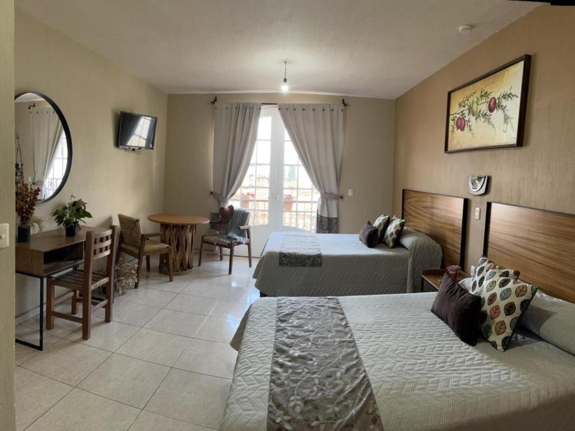 Indulge in the warm tones and wooden furniture of our rooms, each offering a private balcony or terrace overlooking Mazamitla’s vibrant main square. Enjoy modern amenities such as free Wi-Fi, cable TV, and a private bathroom for a comfortable stay.