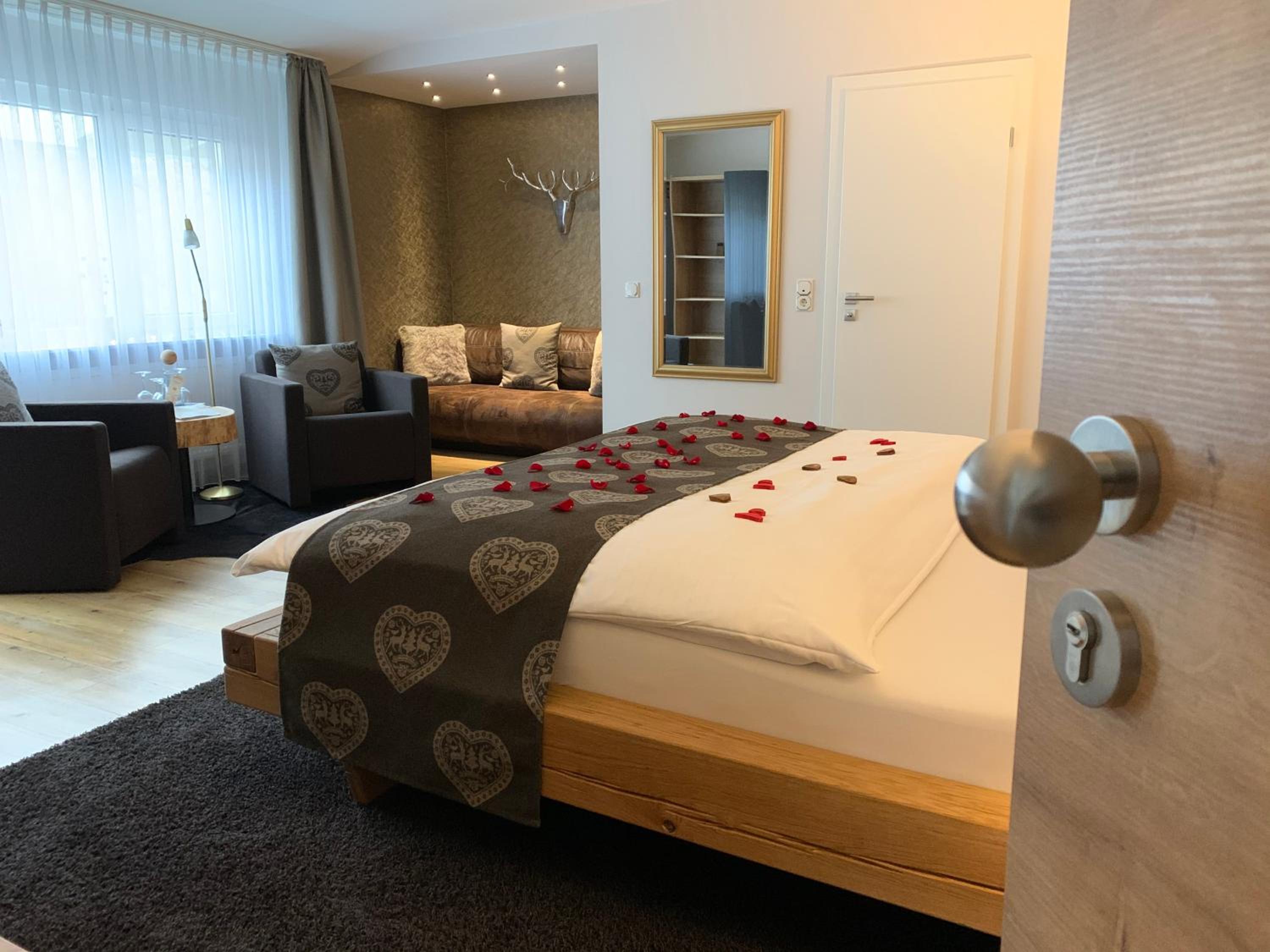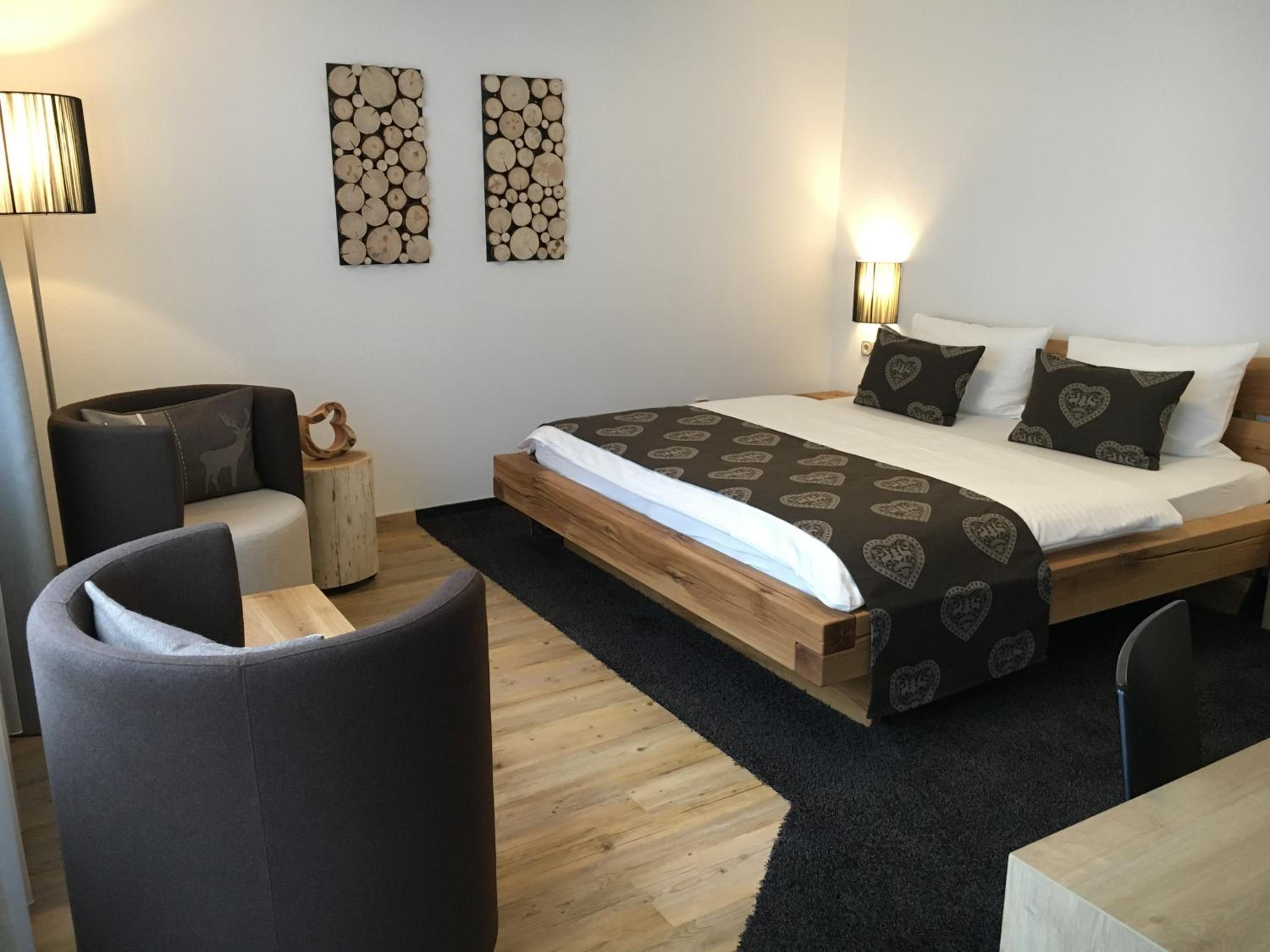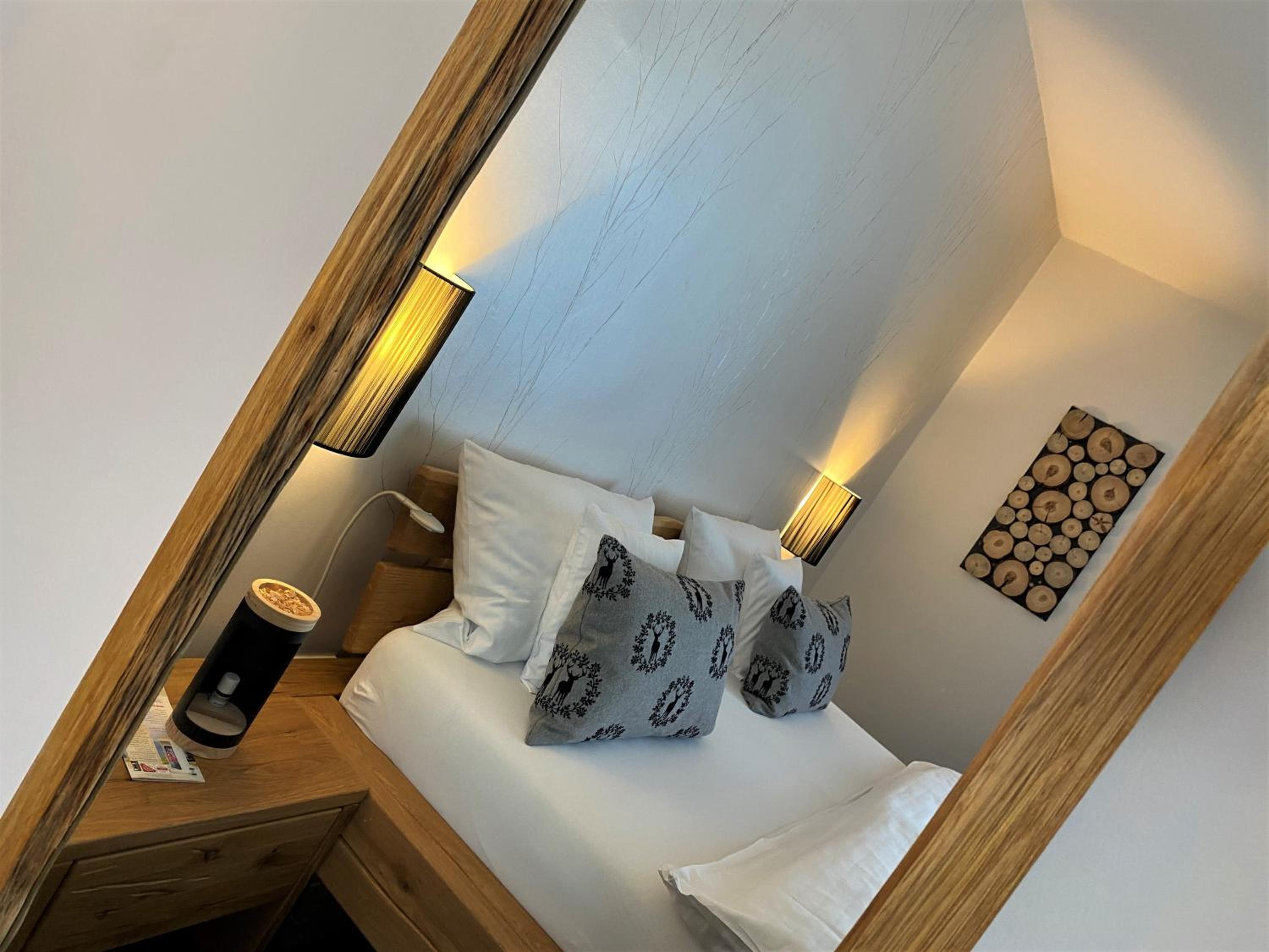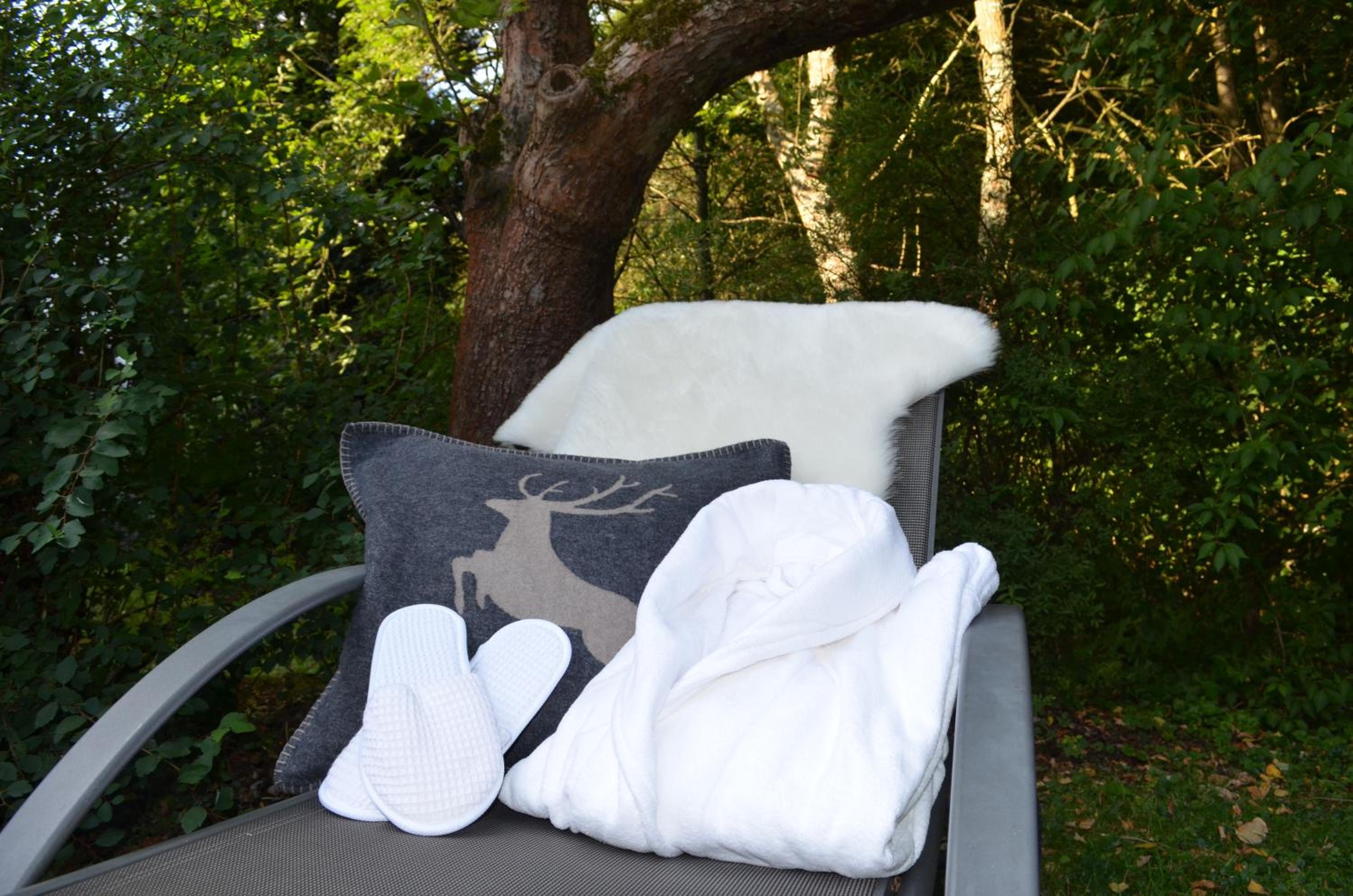 Die Zimmer mit Blick vom Balkon auf den angrenzenden Wald sind - ebenso wie das ganze Haus - sehr geschmackvoll mit viel Liebe zum Detail eingerichtet, die Betten sehr bequem, das Frühstück einfach genial mit allem was das Herz begehrt - und immer mit freundlicher Begrüßung, die ganz private Sauna herrlich entspannend.