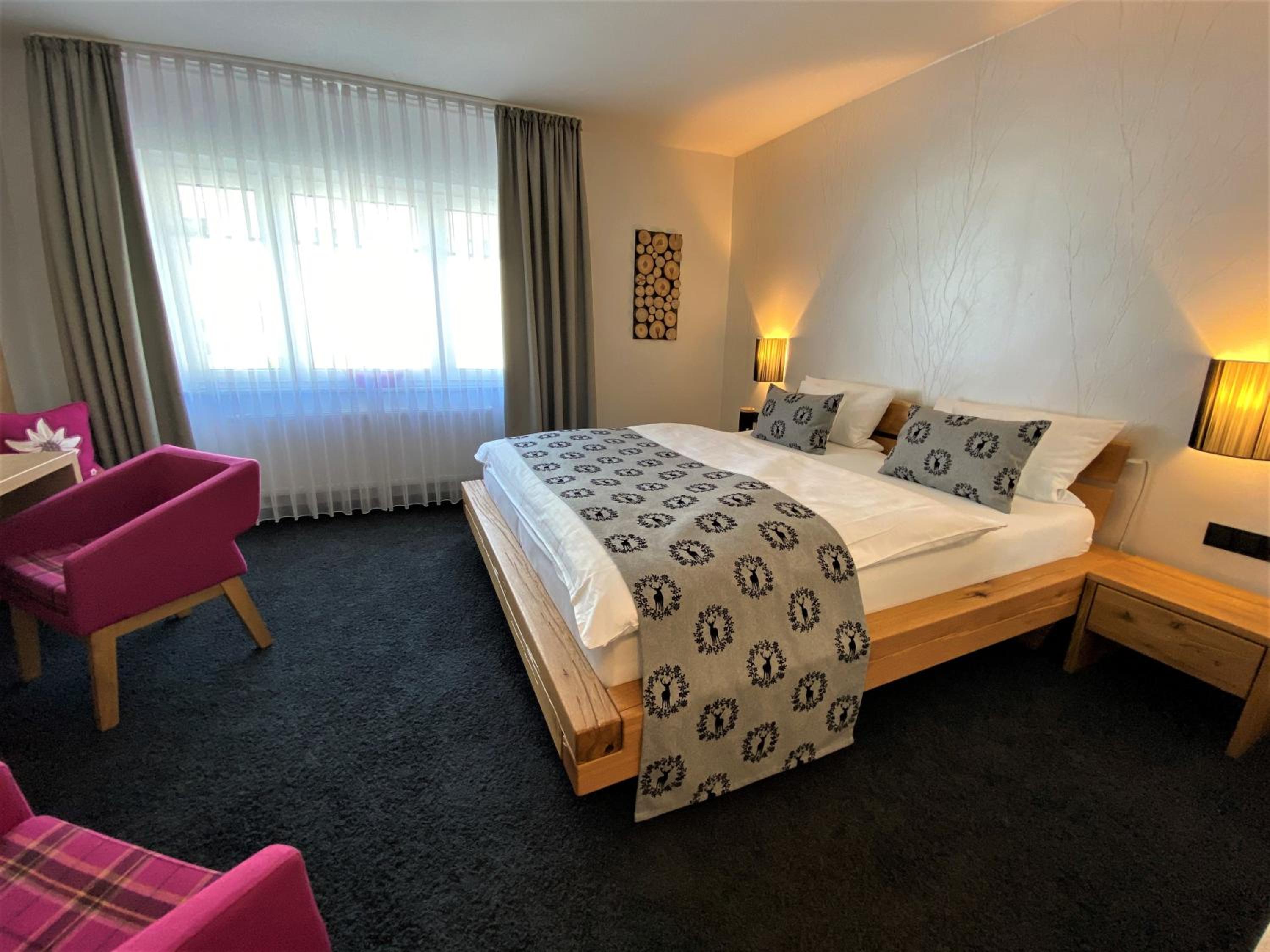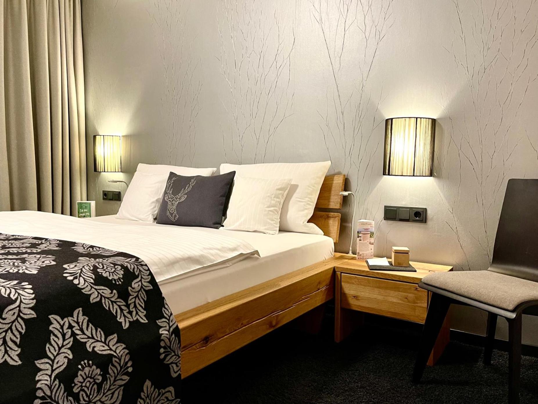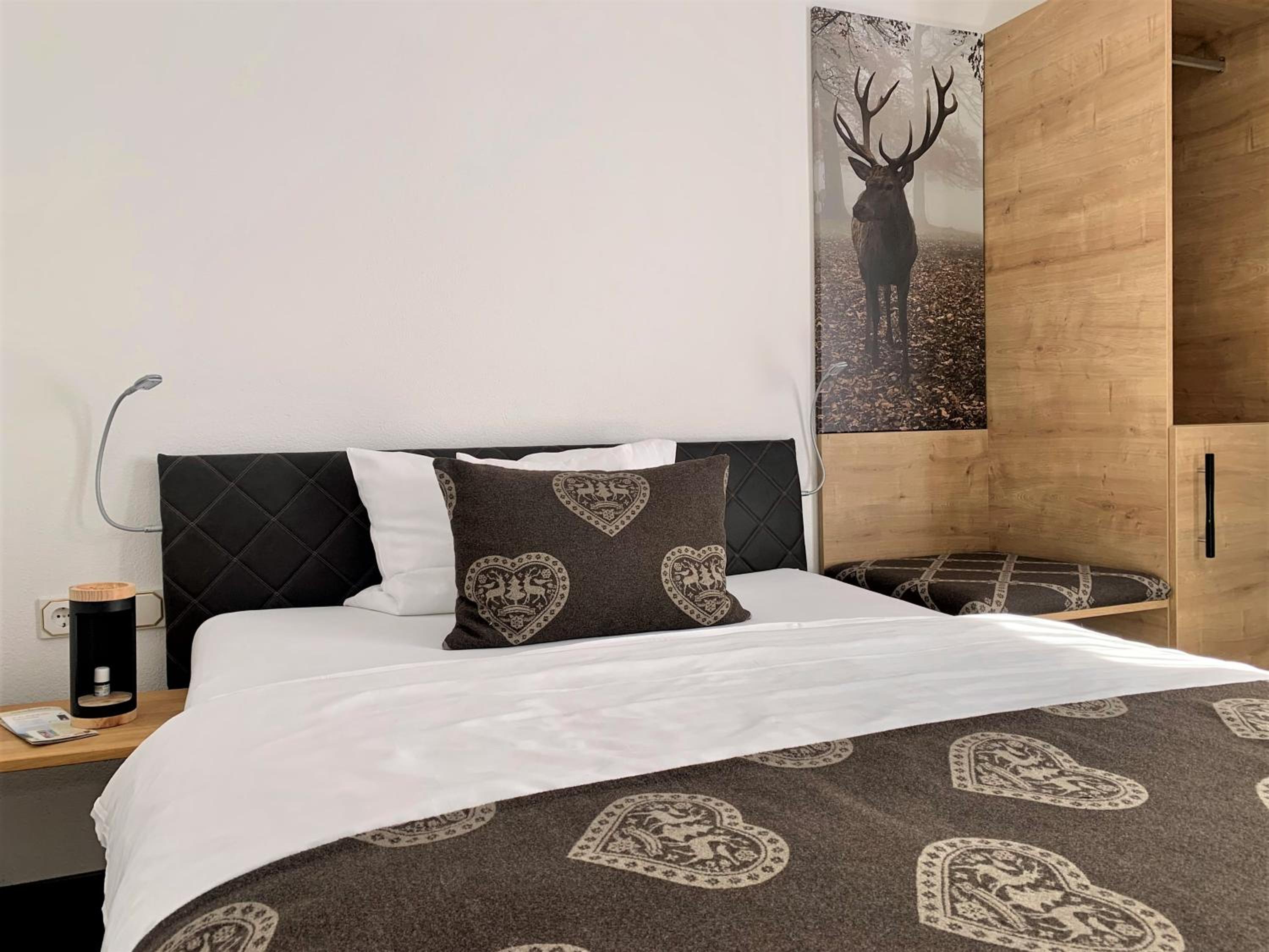 Die Zimmer mit Blick vom Balkon auf den angrenzenden Wald sind - ebenso wie das ganze Haus - sehr geschmackvoll mit viel Liebe zum Detail eingerichtet, die Betten sehr bequem, das Frühstück einfach genial mit allem was das Herz begehrt - und immer mit freundlicher Begrüßung, die ganz private Sauna herrlich entspannend.