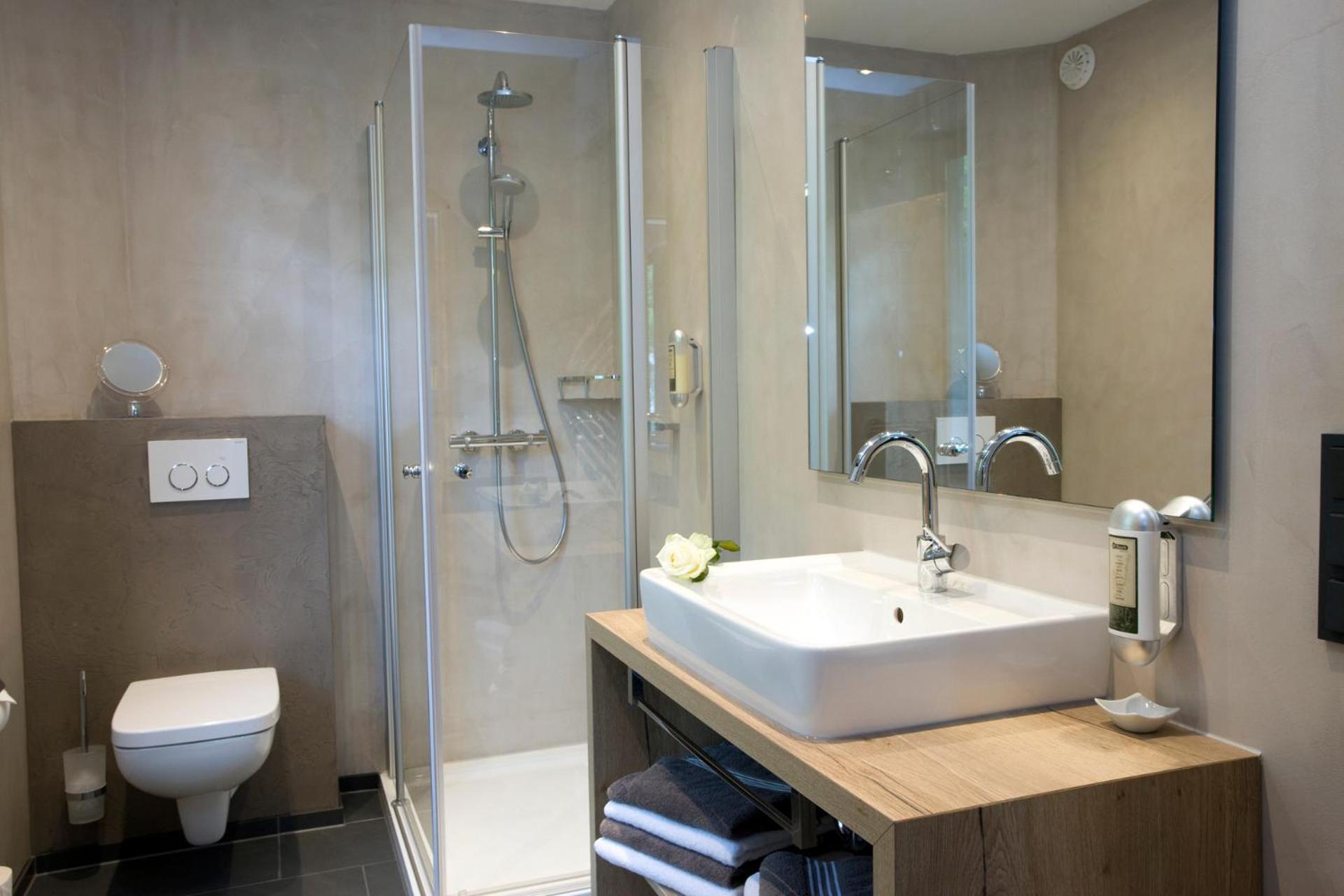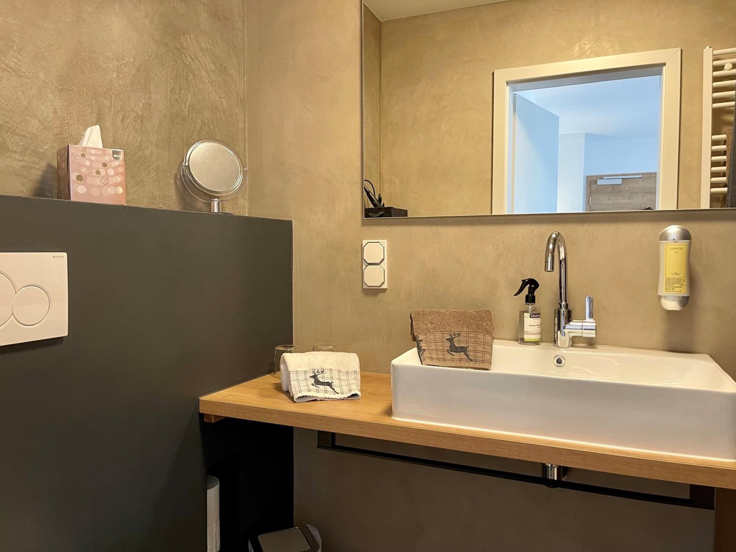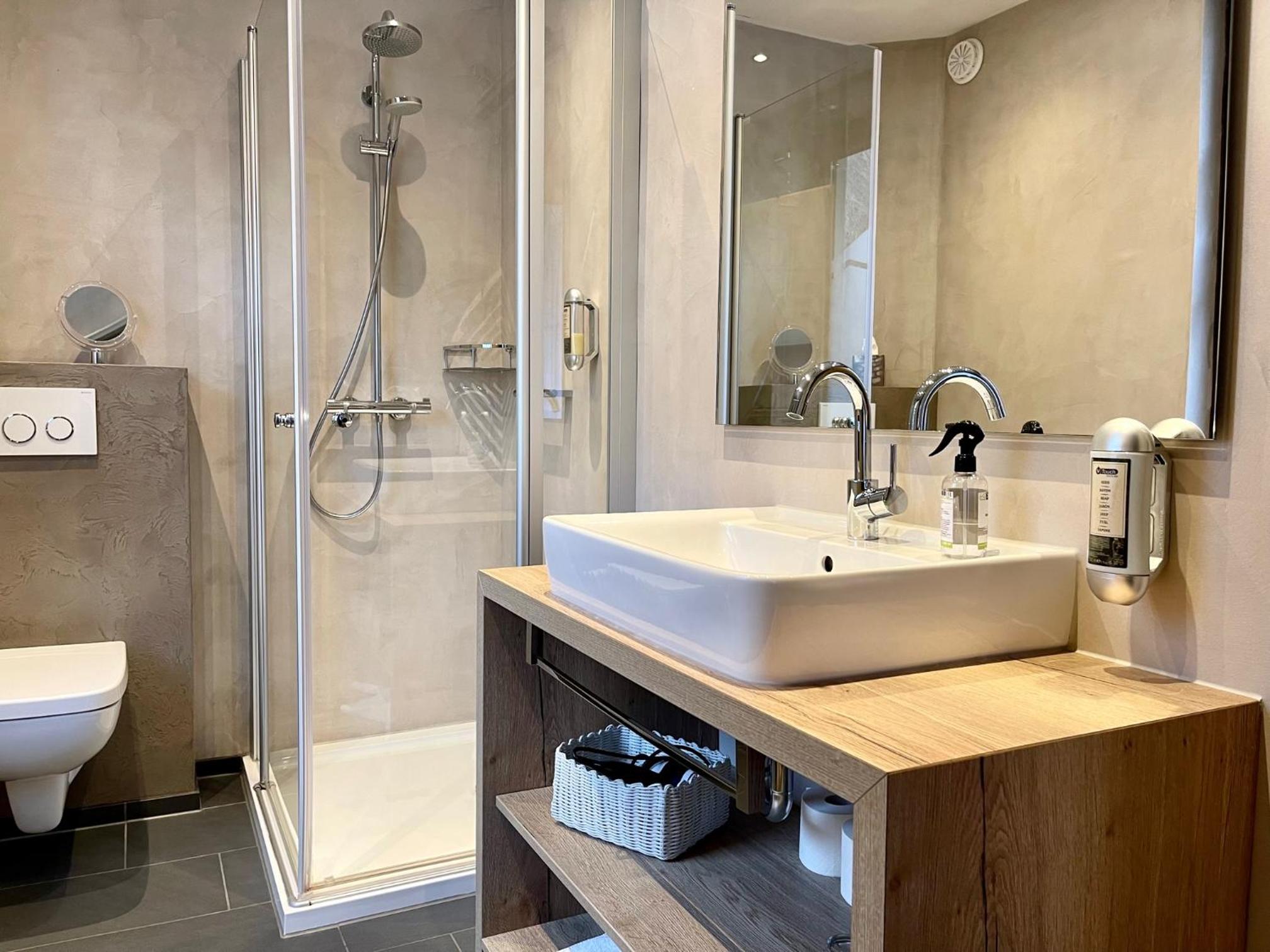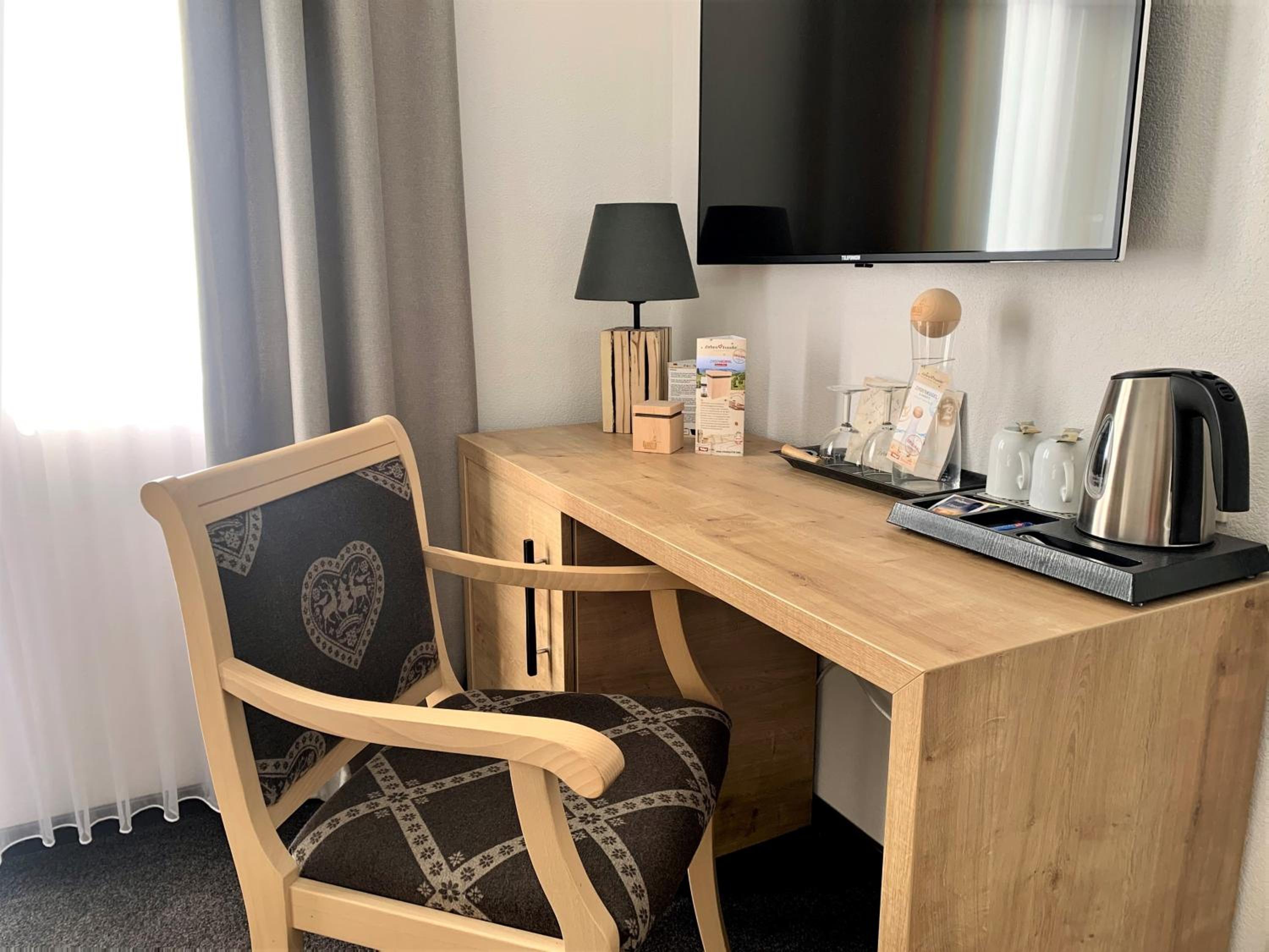 Die Zimmer mit Blick vom Balkon auf den angrenzenden Wald sind - ebenso wie das ganze Haus - sehr geschmackvoll mit viel Liebe zum Detail eingerichtet, die Betten sehr bequem, das Frühstück einfach genial mit allem was das Herz begehrt - und immer mit freundlicher Begrüßung, die ganz private Sauna herrlich entspannend.