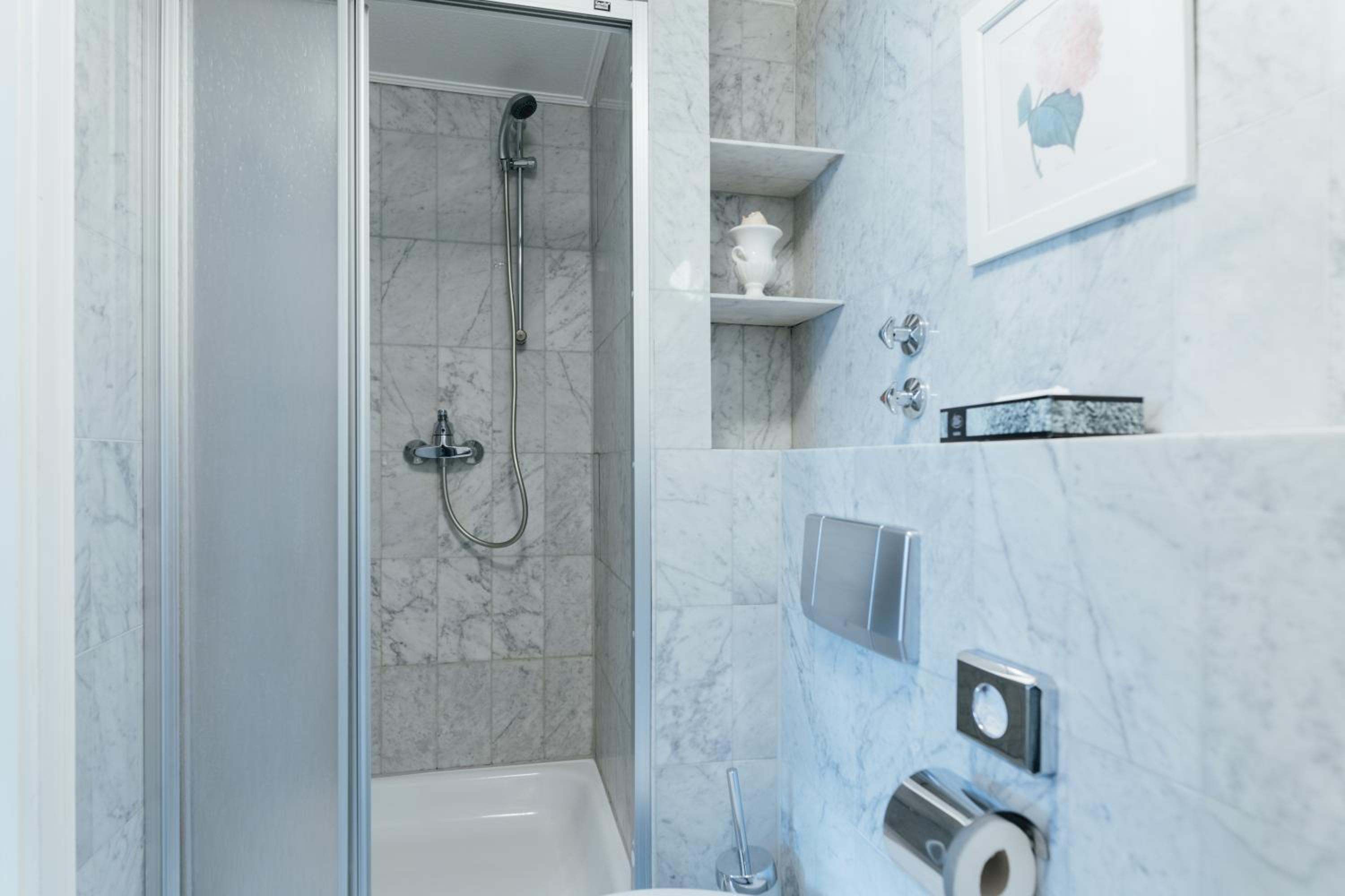 Das Zimmer im DG war etwas neutraler eingerichtet als die auf der Seite sonst dargestellten - aber es hat eine nette Atmosphäre zu bieten. Alles sehr sauber. Bettwäsche und Handtücher sehr angenehm. Betten bequem. Das Preis Leistung Verhältnis ist gut. Die Bäder pragmatisch und mit den Carrara Fliesen recht schön anzuschauen.