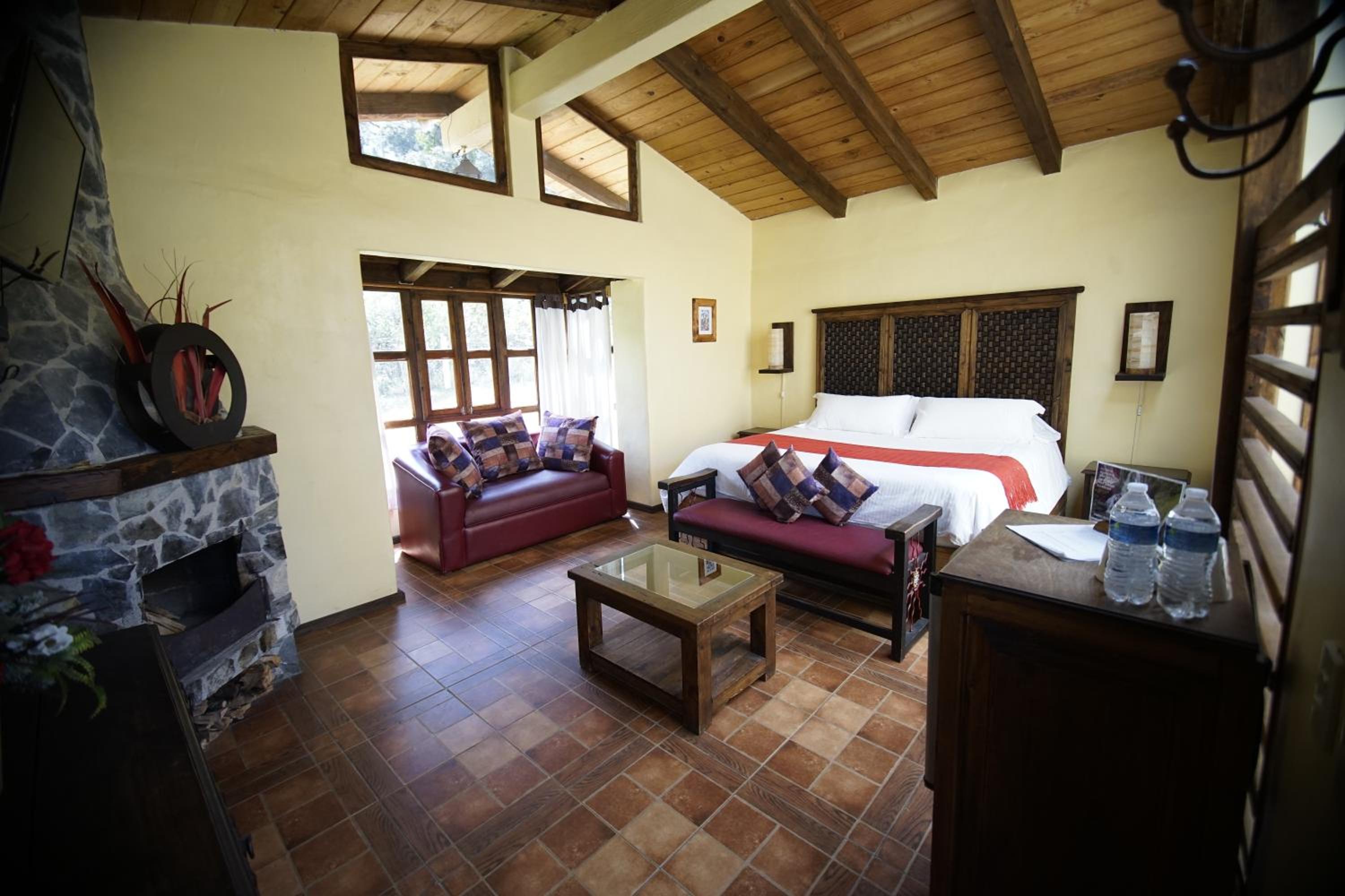 Secluded Escape: Nestled in a forest, Cabañas La Cascada offers rustic cottages with a cozy fireplace and outdoor seating.