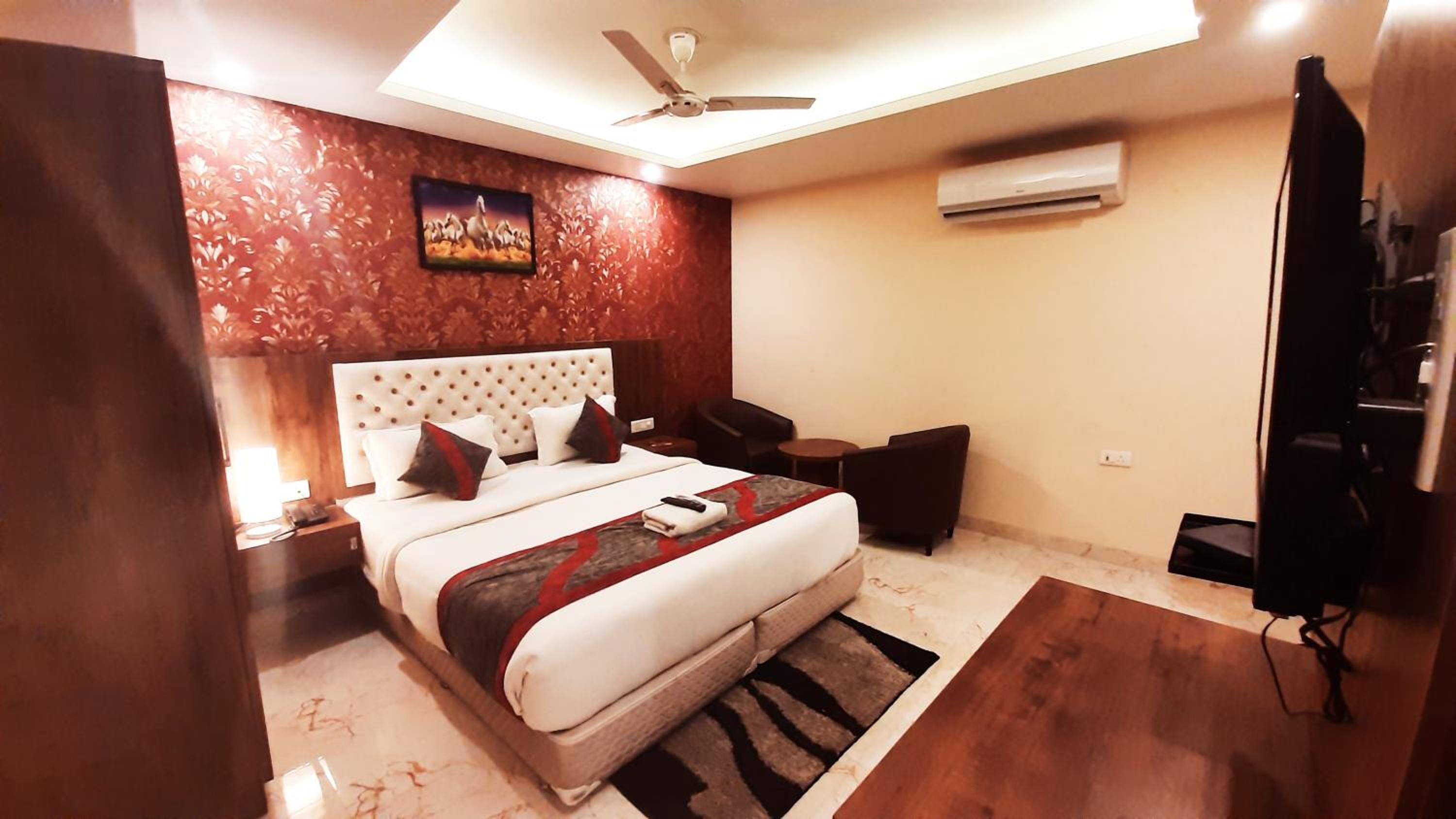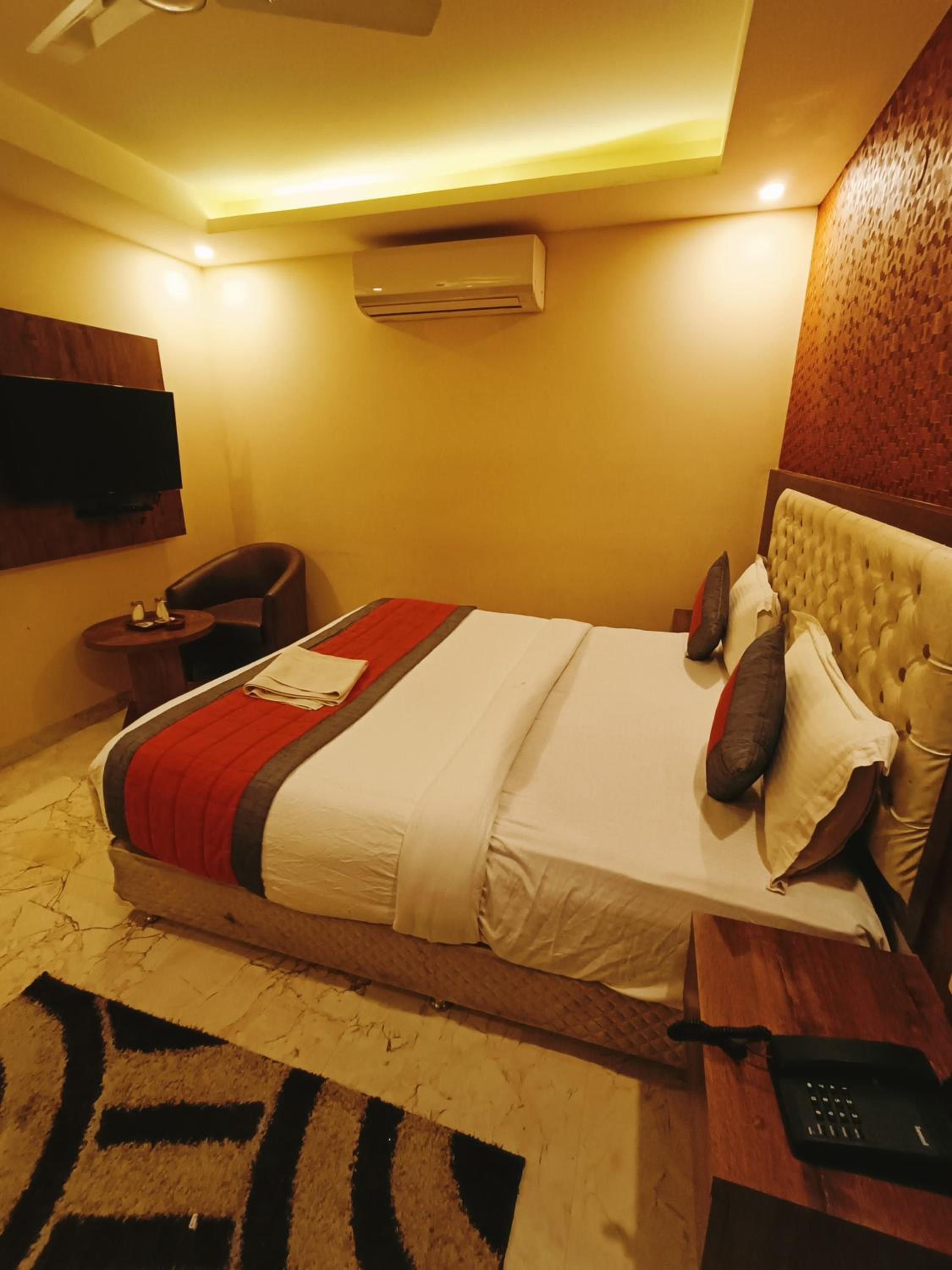 Mayda Inn- A Boutique Hotel in New Delhi offers a luxurious stay just 10 km from Qutub Minar. The hotel boasts a terrace, free private parking, and a restaurant. Each room is elegantly furnished with a flat-screen TV, air conditioning, and a private bathroom with free toiletries. Some rooms even feature a cozy seating area for relaxation.
