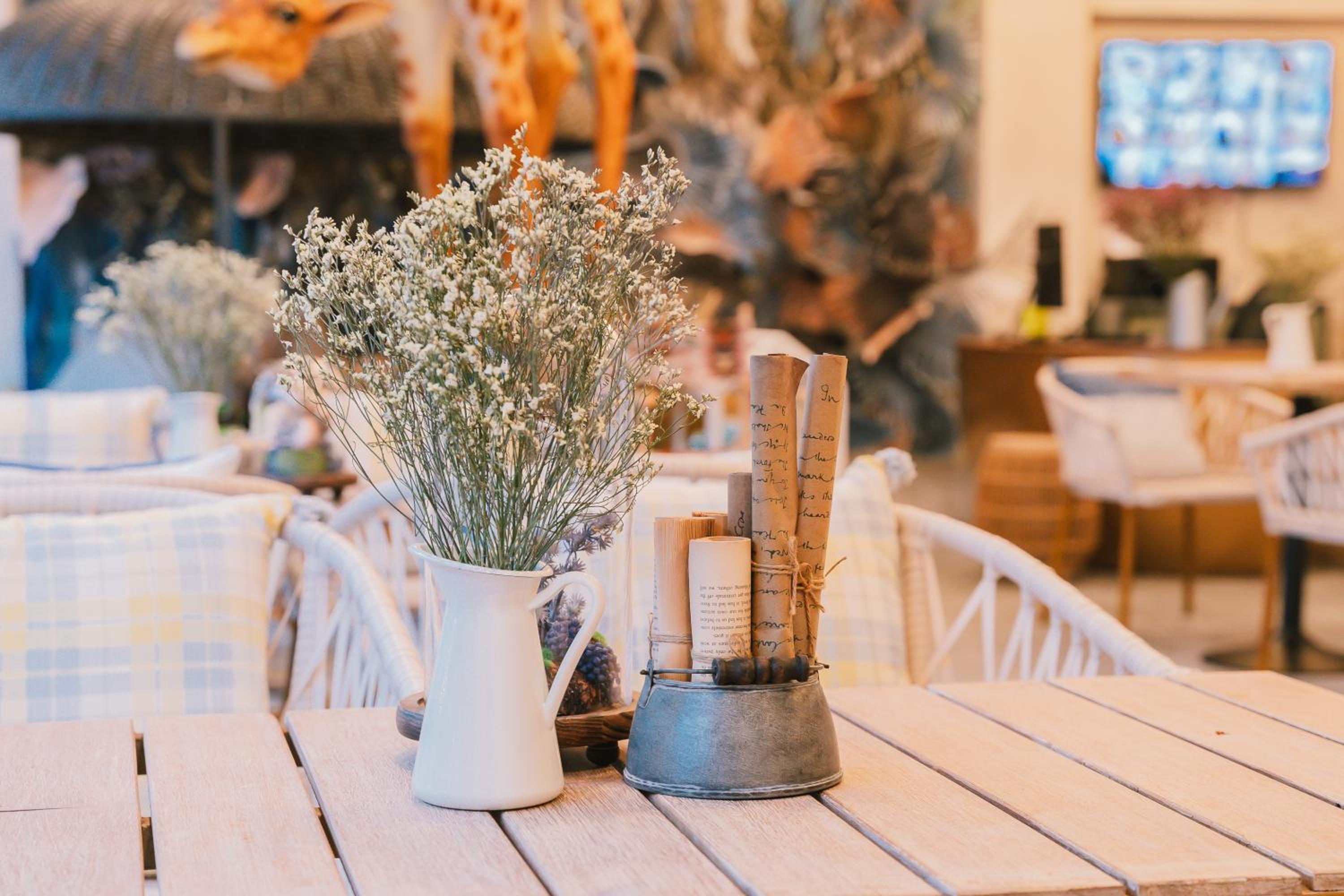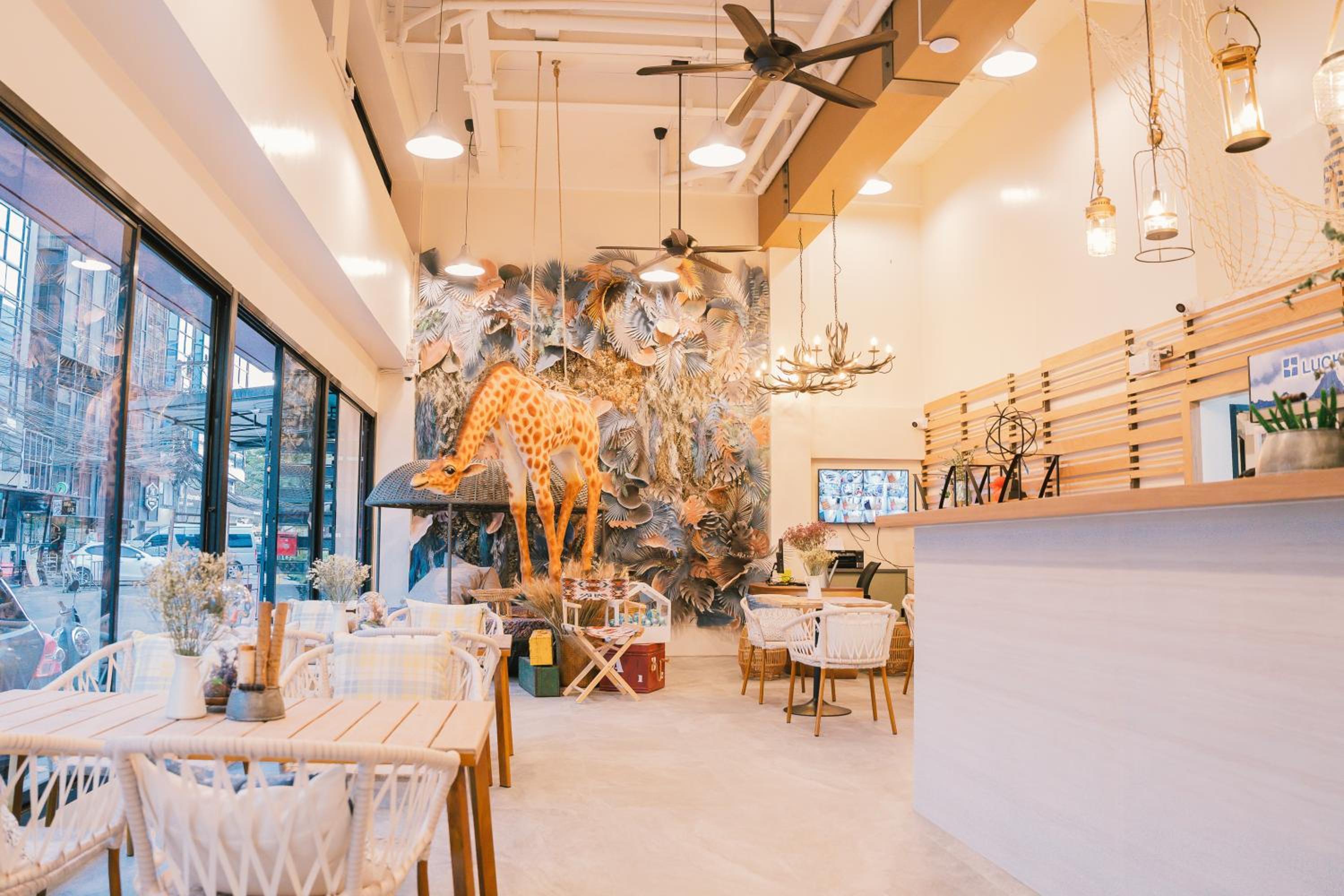 I like the friendliness of the stuff. I like the aesthetic safari vibes. My son is so happy to see the giraffe. I like the espresso cold drink. I like the design of the room. The bed is very soft. I like the location because it's near the market. I like the tour destination.