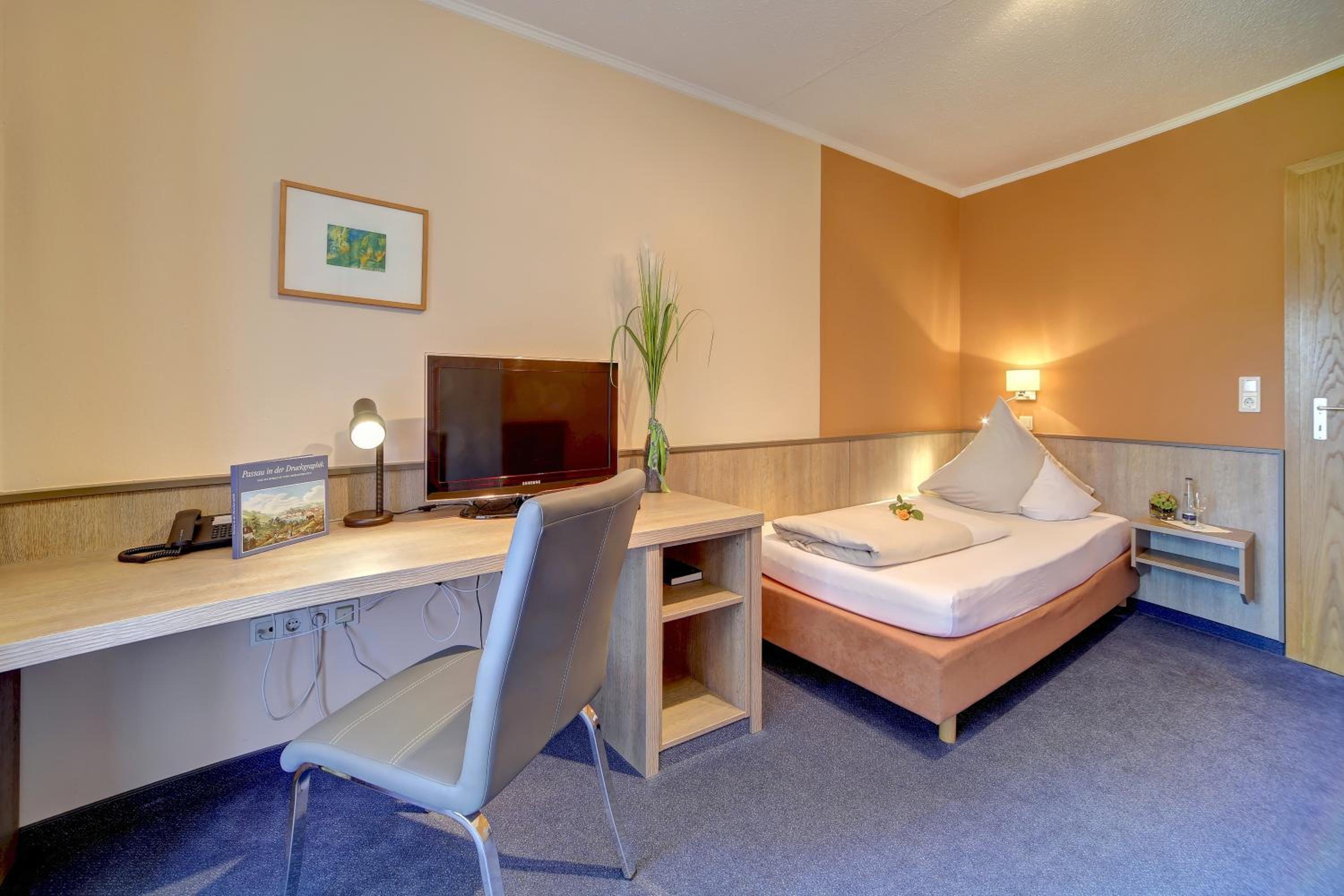 Very friendly staff, the room was spacious, we also had a small kitchenette and a fridge, we didn't expect that. A nice terrace, very quiet location. We had 2 TV, one in each room, big parking in front of the building. We just spent one night, but I'd be nice to stay longer because of the comfort we had. The location is 11 kilometers from Passau. We had a car, so transport was easy. The breakfast was delicious, although there wasn't much on offer.