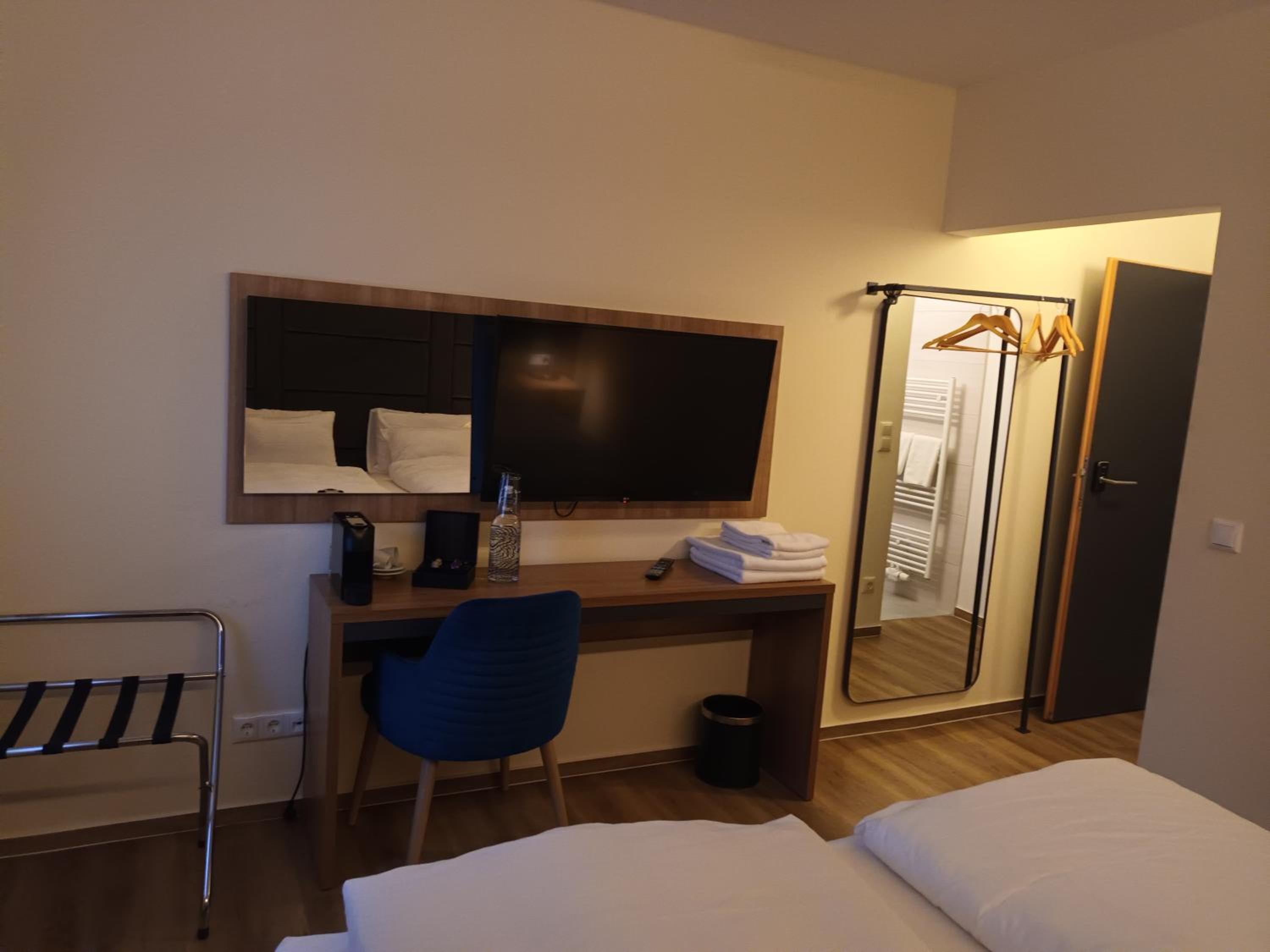 Zimmer völlig ausreichend von der Größe, Betten sehr bequem, Bad klein aber völlig ausreichend, Kaffeemaschine im Zimmer super, Frühstück sehr ansprechend,Brötchen sehr lecker, frisches Rührei auf Wunsch (mit Rucola und Tomaten seperat serviert) 😊