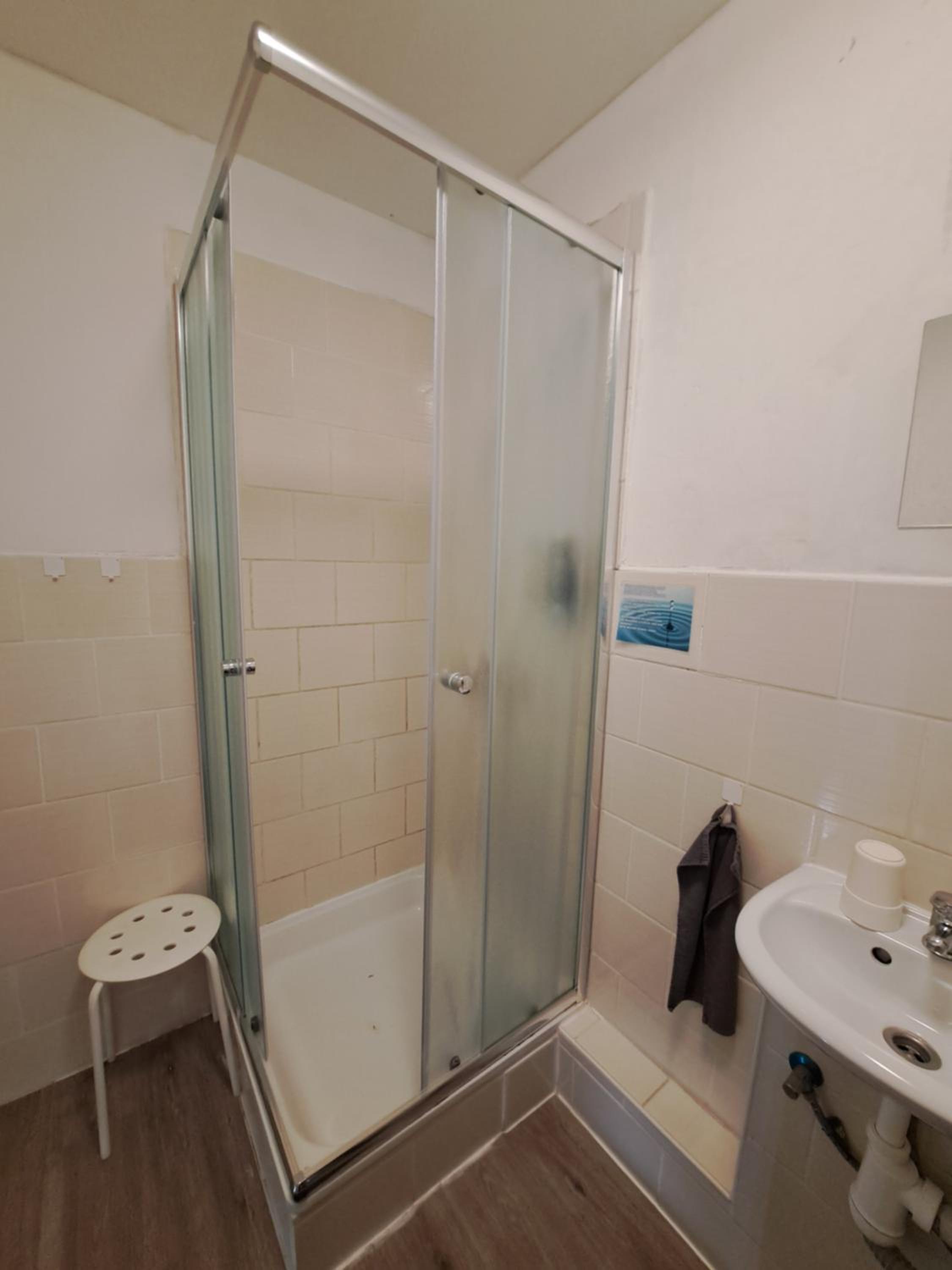 Das Türblatt zum Badezimmer Zimmer 6 könnte geschliffen und oder lackiert werden. Würde den Raum aufwerten.