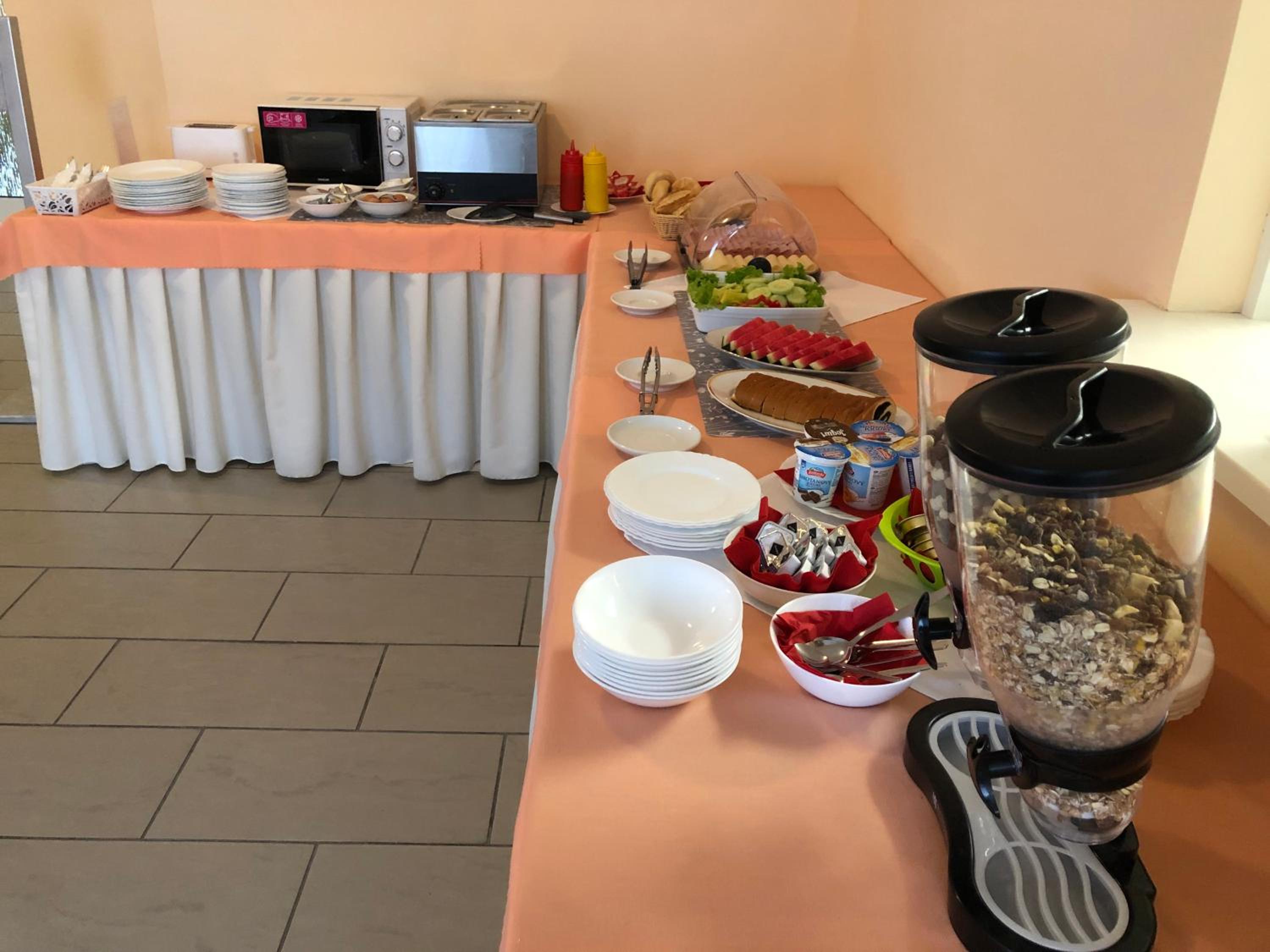 The hotel has 1 *. I do like my comfort but am not eager to have super luxury all the time. In my opinion this hotel has everything a person with normal needs wants and I would give it more stars. The rooms are nice, clean, with enough storage space, clean private bathrooms. Most have a fridge too. The beds were comfortable. Every member of the staff we met or communicated with on the phone was exceptionally nice, doing their best to please us and meet our every need. There's a lot of parking spaces. Breakfast can be served upon request at least the previous day maximum by 19:00.