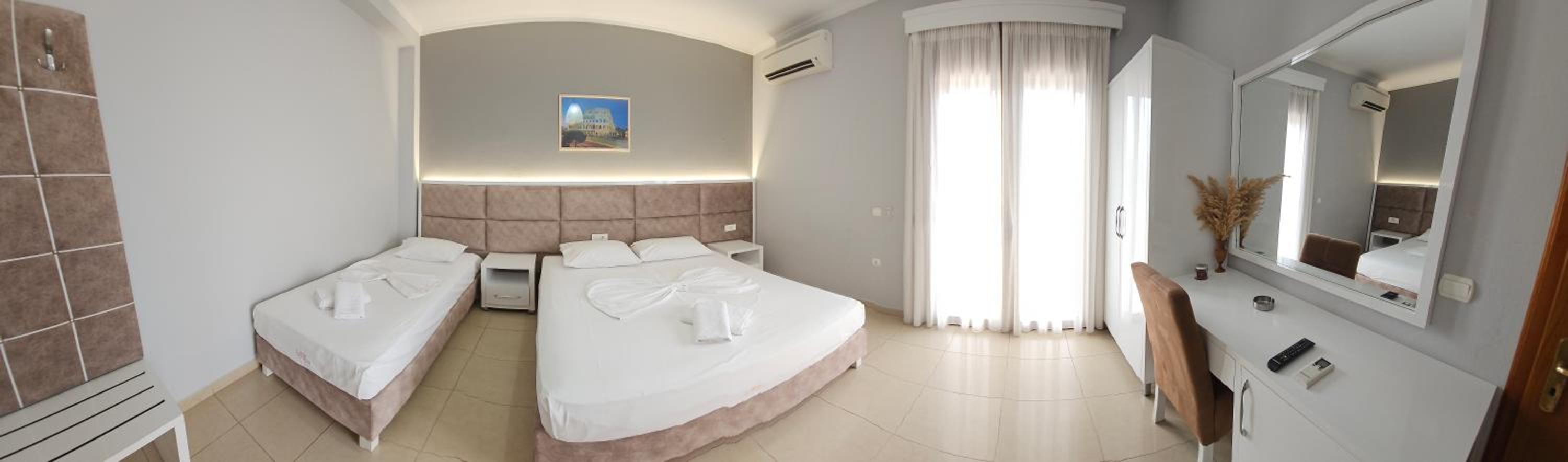 At Hotel Kolla in Derviçian, indulge in a luxurious stay with breathtaking views of the mountains and rivers. The rooms are elegantly furnished with modern amenities including air conditioning, flat-screen TVs, and private balconies. Enjoy the convenience of free WiFi and room service during your stay.