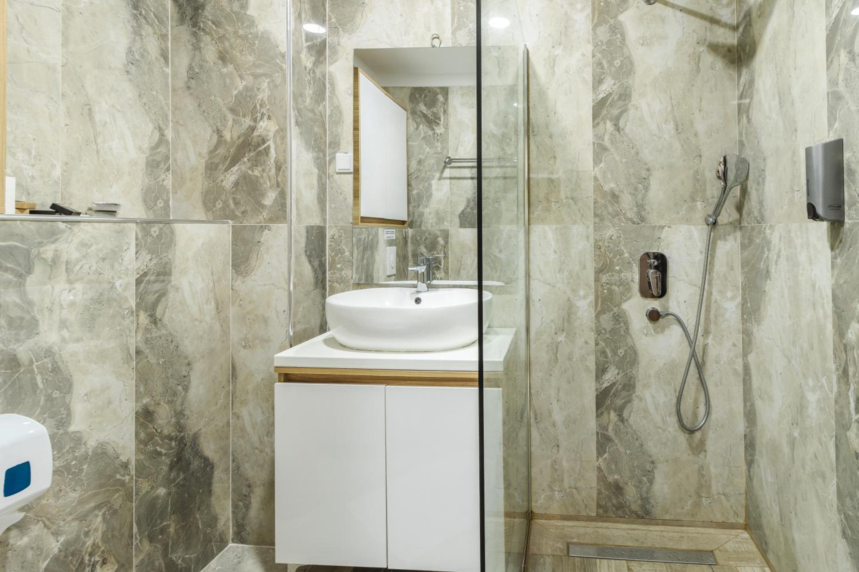 A tampa da sanita estava partida, mas o que foi mesmo desagradável foi ter a sala dos pequenos almoços que não tem nenhuma janela ventilada, com os clientes quase todos a fumar lá dentro. Depois do banho matinal sai de lá todo a cheirar a fumo.