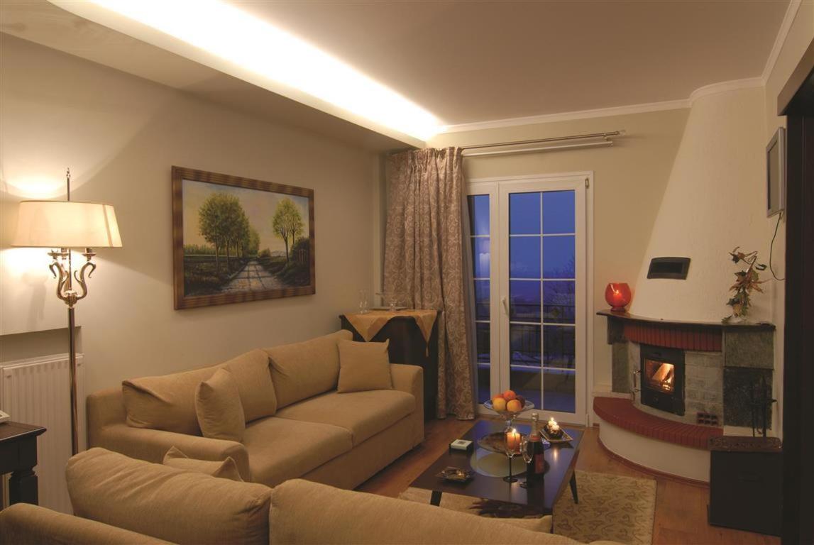 Charming Ambiance: With wood and stone accents throughout, Mythos Hotel exudes a cozy and rustic charm, offering spacious rooms equipped with hydromassage tubs and traditional fireplaces.