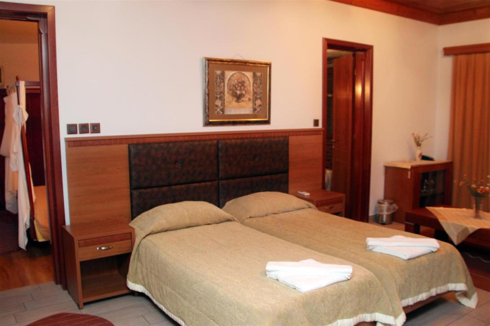 Its a family owned place, and absolutetly every person we came in contact with was amazing. Food was wow, the service was at its best, traditional meets fine dining, house wine great - Thank you, Sotiris for the good buy gift! There is fireplace and wood in your own room, so you can enjoy a cosy fire while sipping house wine in the privacy of your own room. Fairy tale kind of winter vacation! So sad the ski runs where not operational, it started snowing just before we left. And the breakfast was huge!!!