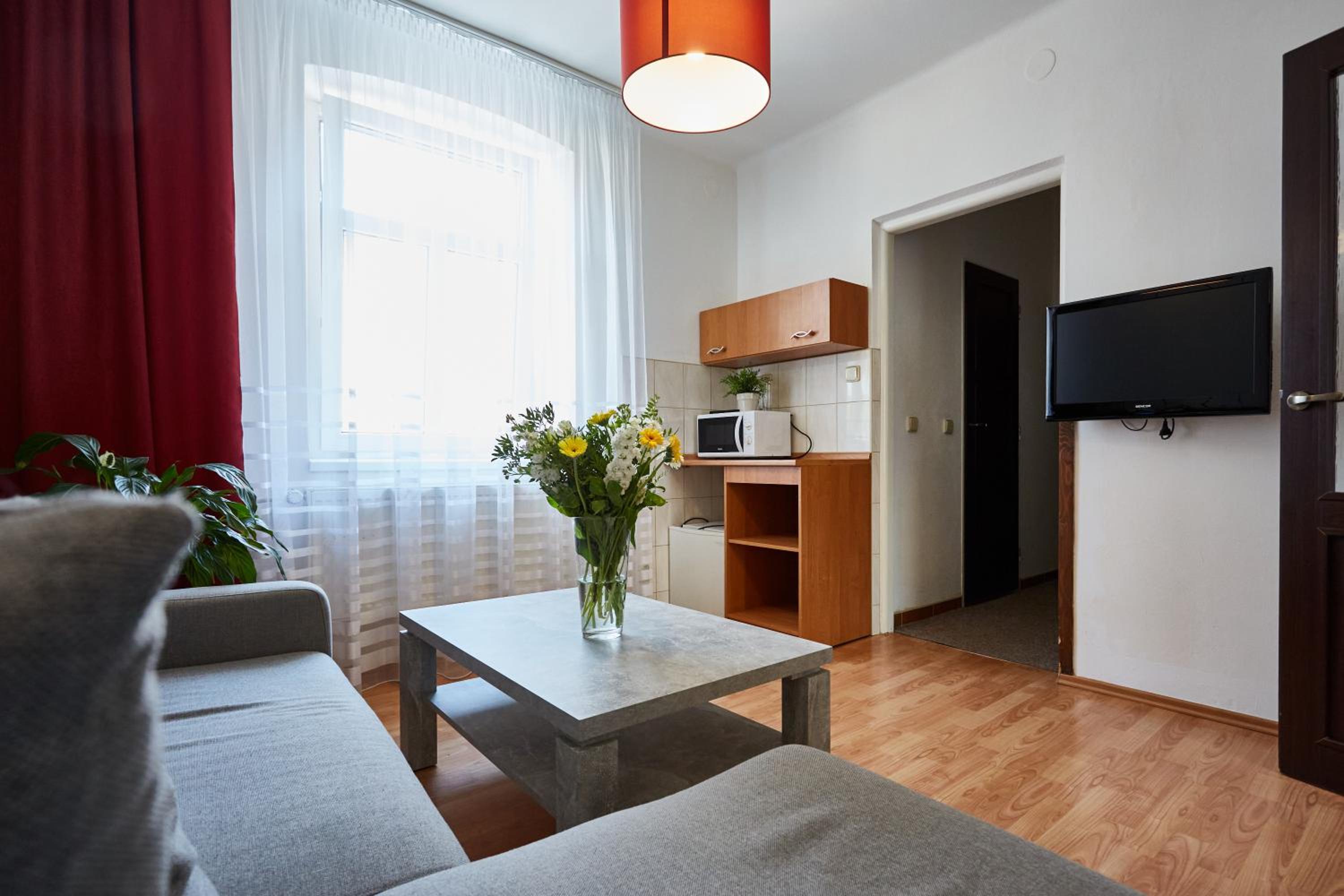 Veliké a vybavené pokoje s posezením, koupelnou, kuchyňkou, ledničkou. Milý a vstřícný personál, byli ochotni počkat i když jsem k check in přijela pozdě. Bezproblémové ubytování s velkým psem. Možnost zajít do wellness když pršelo, sauny, bazén, vířivka. Chutná kuchyně s v hospodě nachystali I misku s vodou pro psa. 🐩👍
