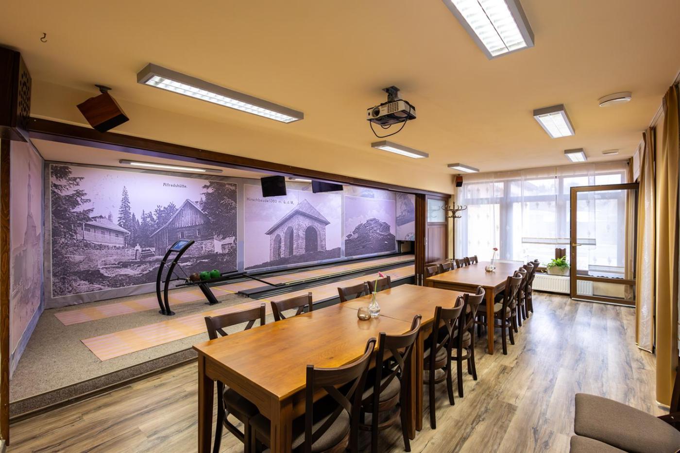 Savor Czech and regional cuisine at our restaurant, relish buffet breakfasts, and join our lively barbecue evenings. Explore the outdoors with bicycle rentals, ski equipment storage, and easy access to nearby ski areas and the scenic Slezská Harta water reservoir.