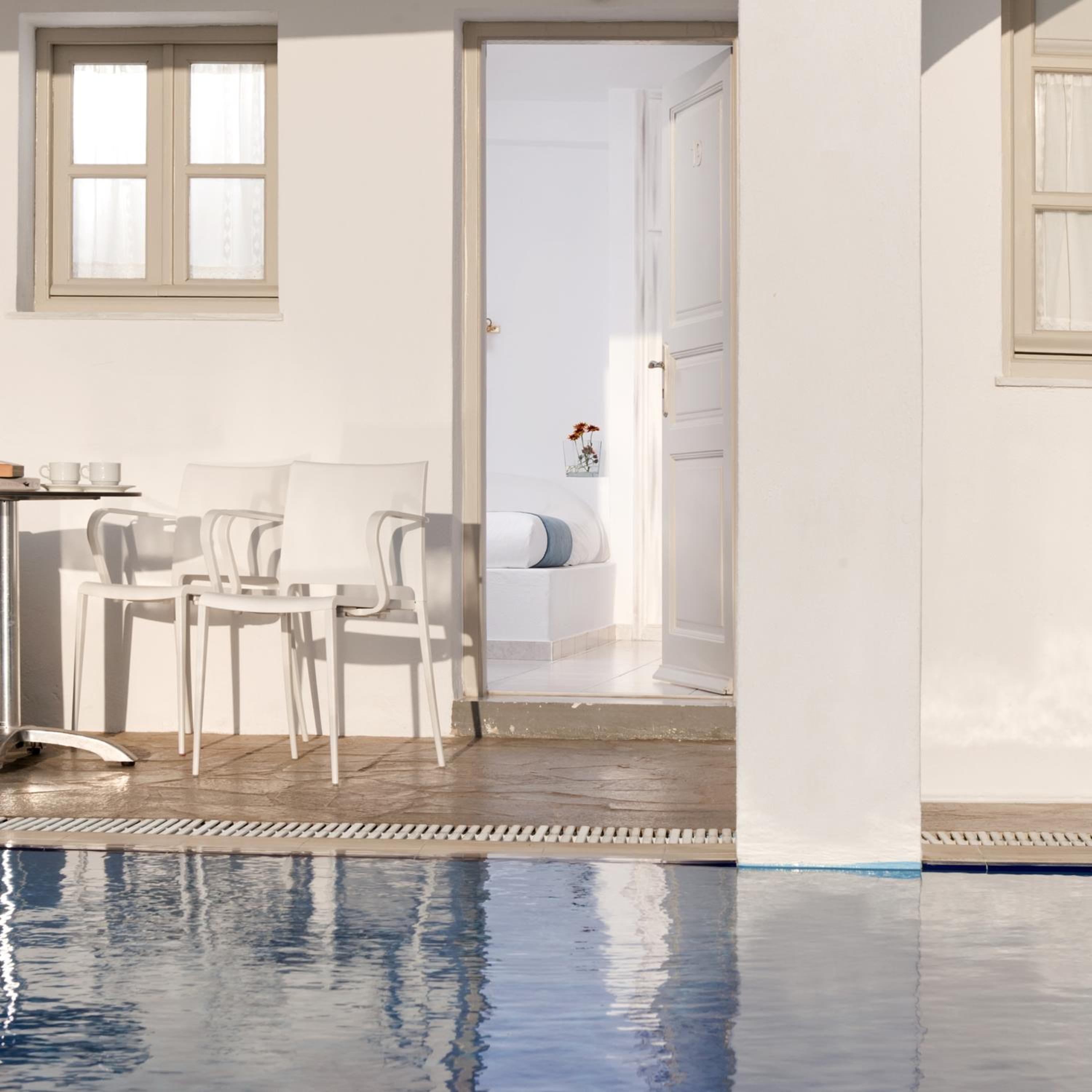 Die Lage mit Blick auf die Caldera ist fantastisch. Sehr gute Lage des Hotels zu Restaurants, auch Fira ist fussläufig gut zu erreichen. Das Frühstück konte täglich zusammengrstellt werden und wurde zur angebenen Zeit zum Zimmer gebracht. Das gesamte Personal ist sehr freundlich und hilfbereit. Es fehlte an nichts.