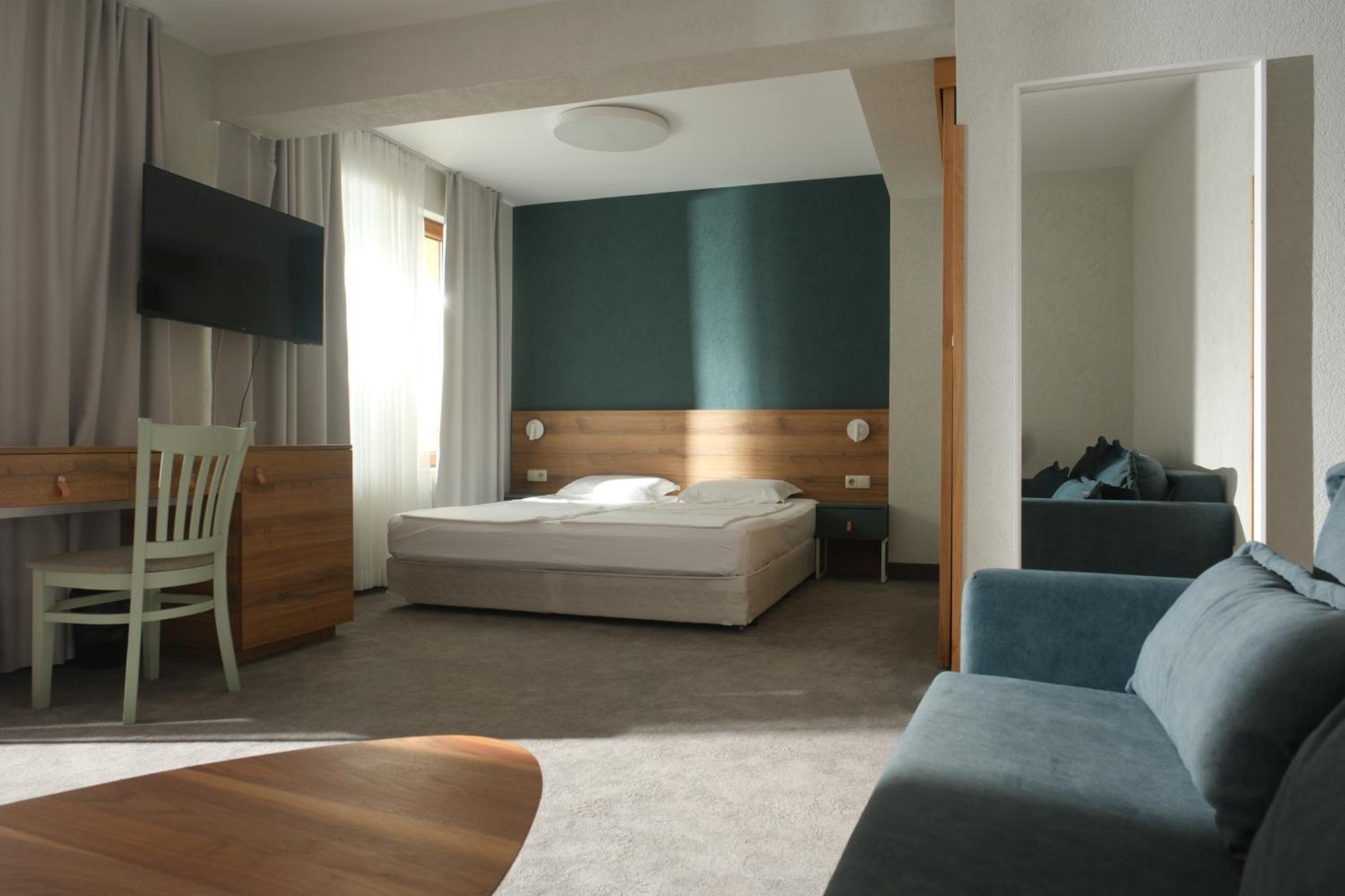 Стаята беше просторна, дори и с разпънати дивани. Чисто и приветливо! Храната в ресторанта беше много вкусна ! Персоналът е отзивчив и любезен!