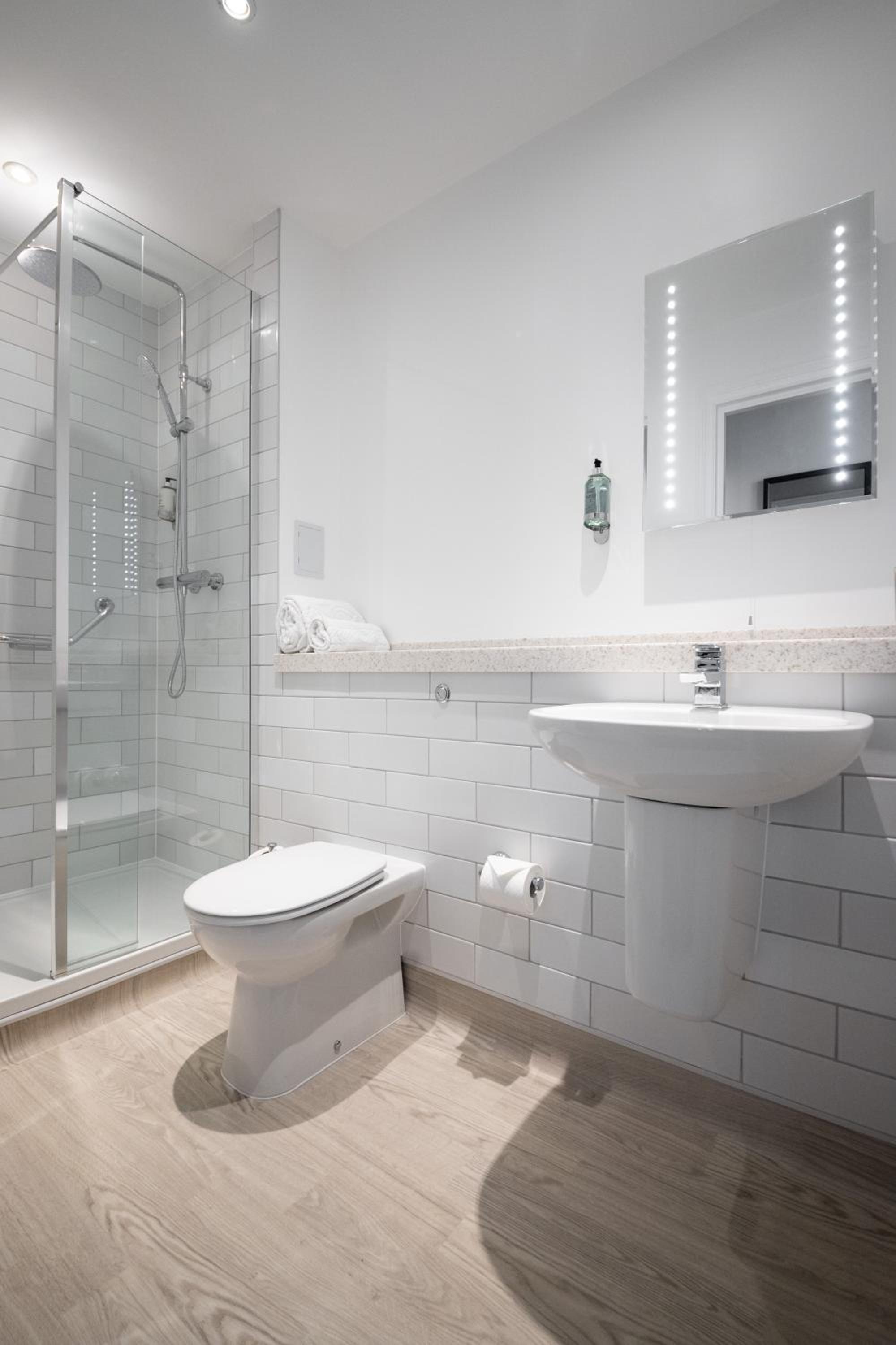 Each room is well-equipped with a work desk, tea and coffee making facilities, and a modern en suite bathroom with complimentary toiletries, ensuring a comfortable stay for guests.