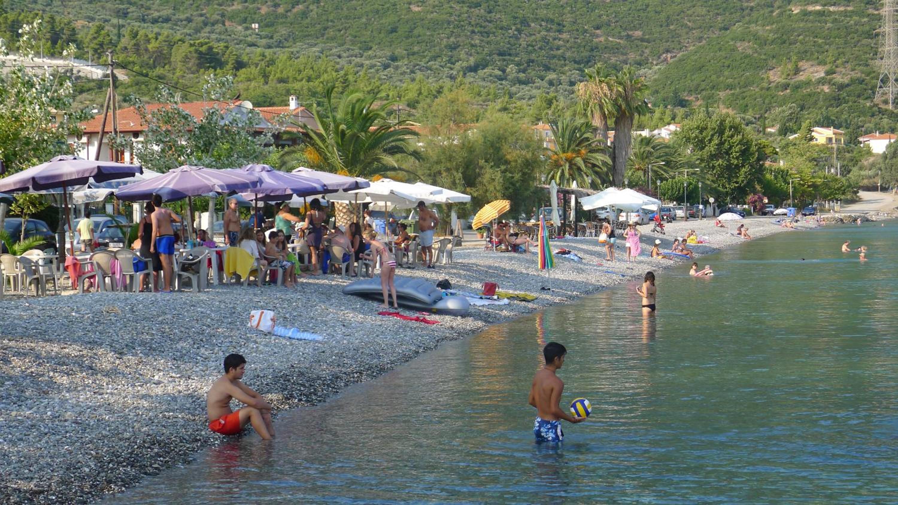 La playa es de piedras, necesarios escarpines.