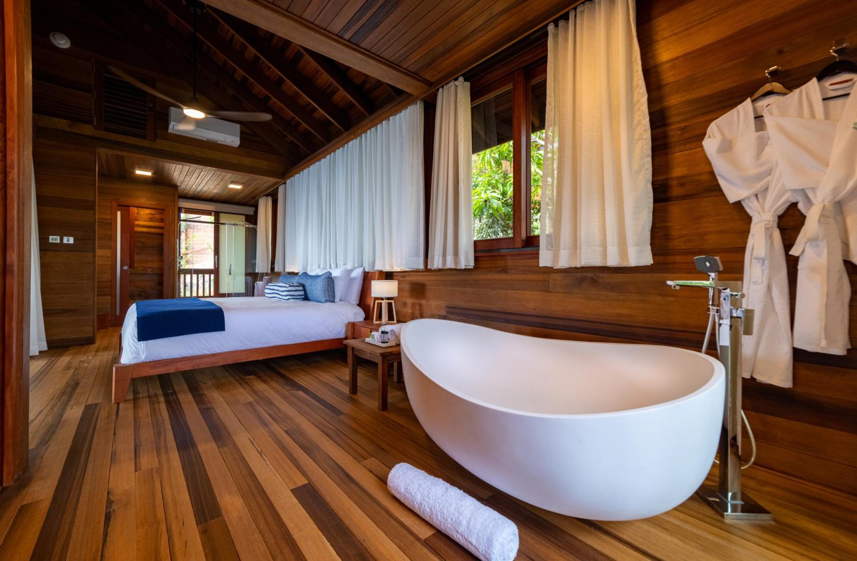 Experience the charm of Secret Bay's wooden bungalows and villas perched on a clifftop, offering breathtaking ocean and garden vistas. Enjoy the comfort of air conditioning, free Wi-Fi, and private balconies with some villas featuring plunge pools.
