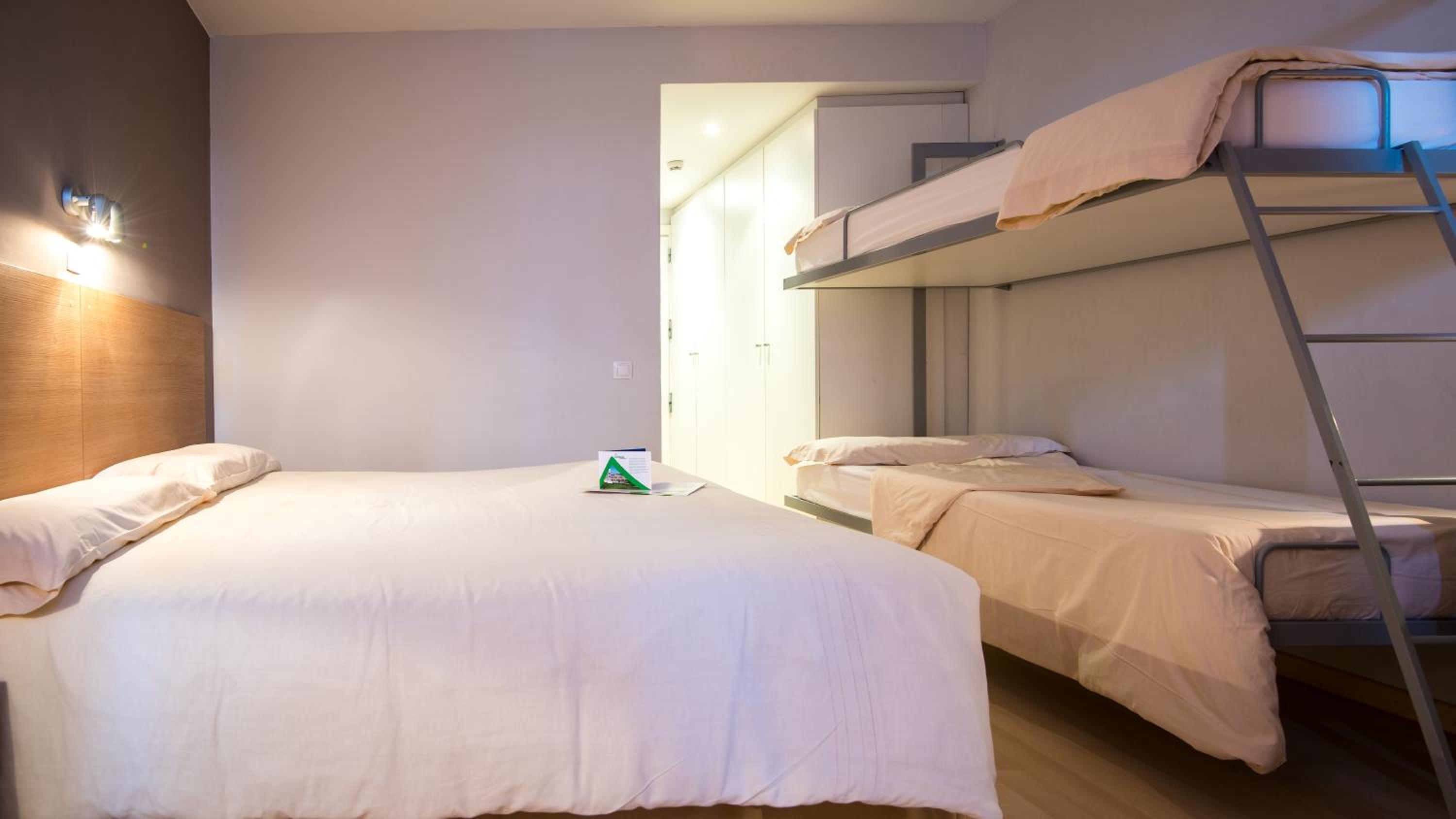La habitación era la típica de literas un poco incomodas tanto las camas como al habitación. El agua salia de la ducha por todos lados y las literas hacían el dormitorio muy incómodo.