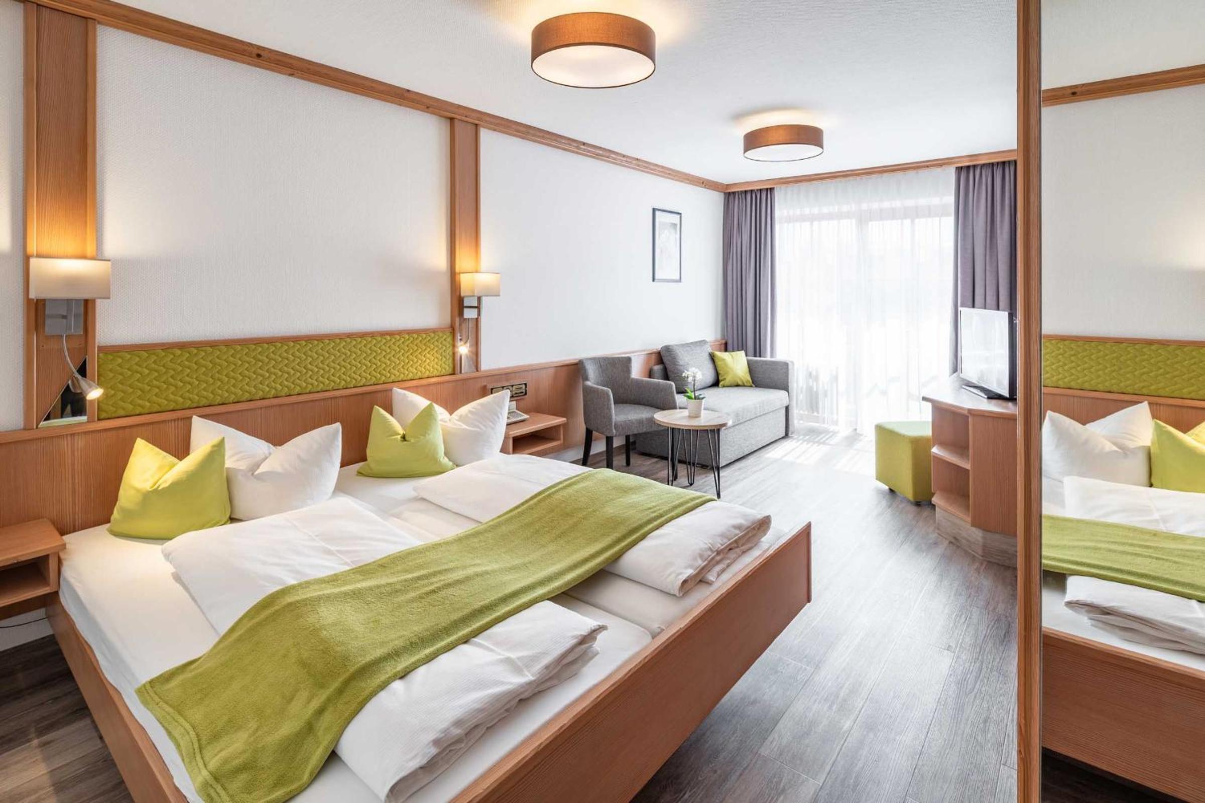 Luxurious Accommodation: Hotel AlpenSonne offers comfortable rooms with modern amenities including flat-screen TVs, free WiFi, and picturesque mountain views. Some rooms even feature a private balcony for guests to enjoy the fresh alpine air.