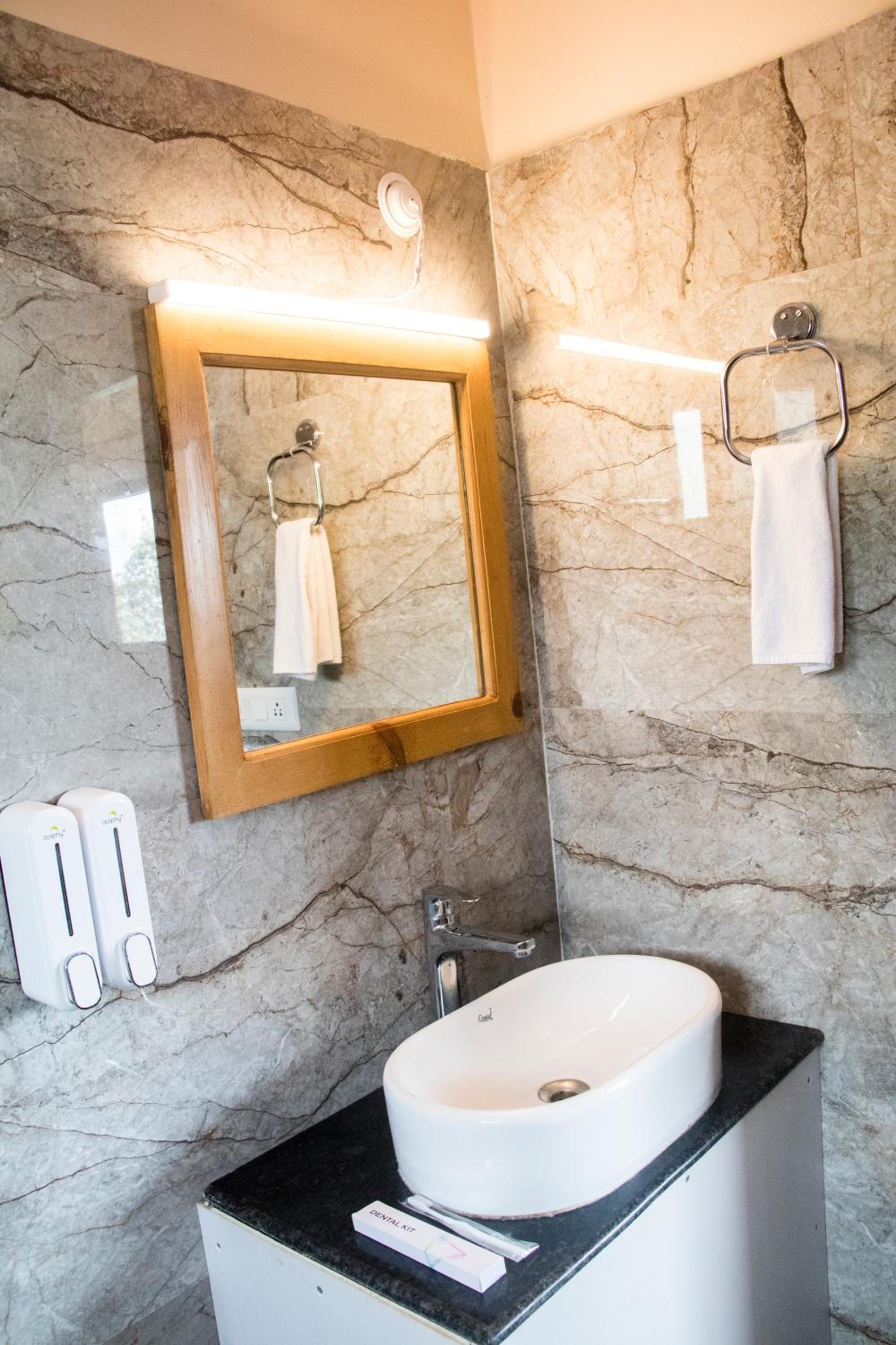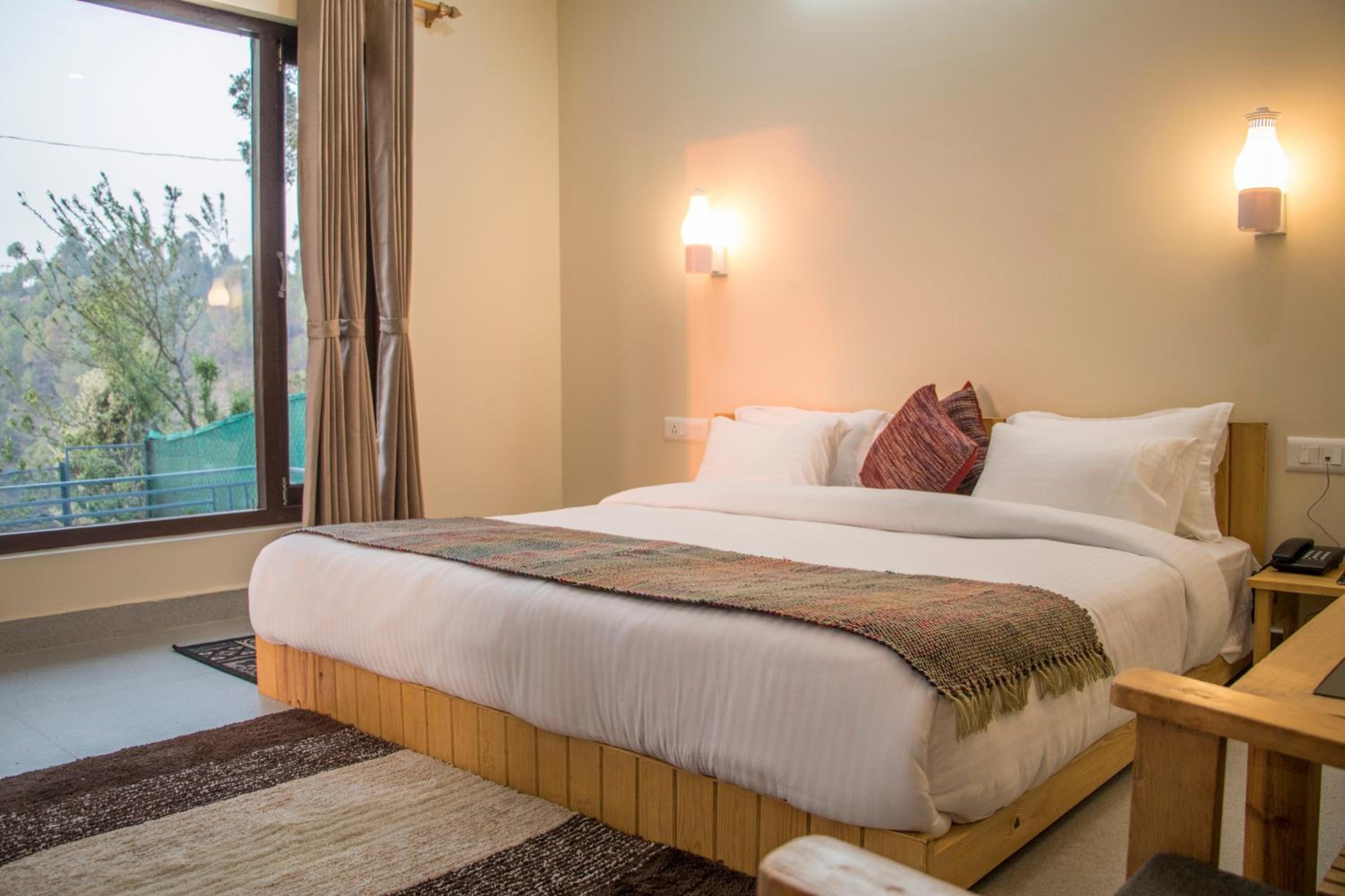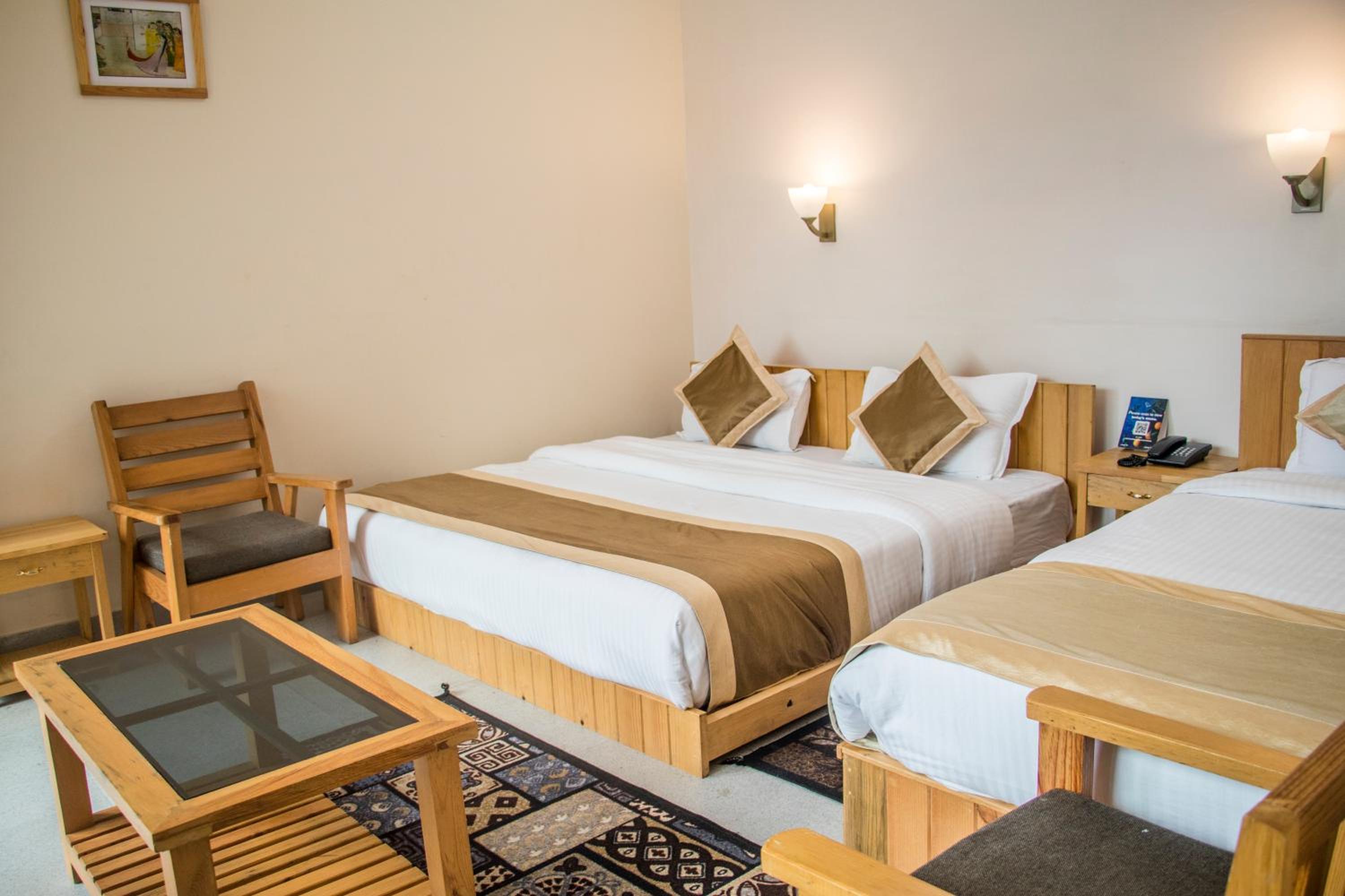 Alpine Rhapsody in Rānīkhet offers elegantly furnished guest rooms with modern amenities, ensuring a comfortable stay. Each room features a cozy seating area, a flat-screen TV, and a private bathroom stocked with complimentary toiletries.
