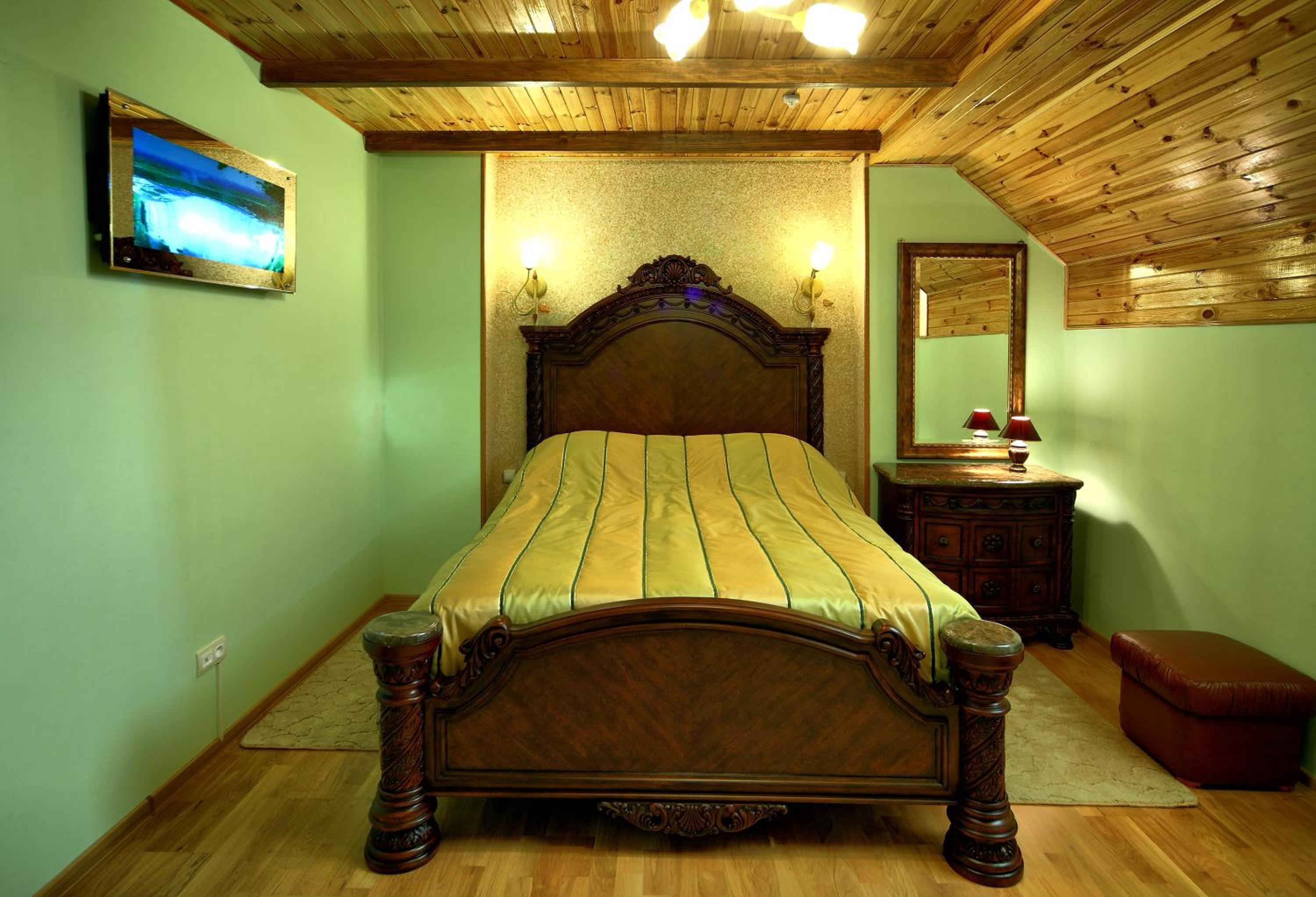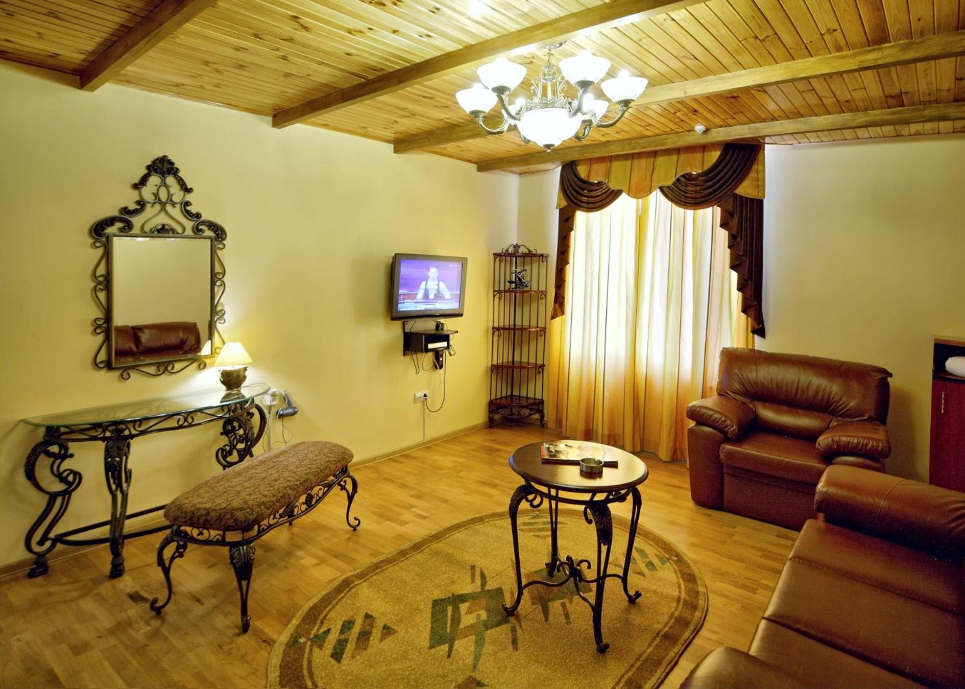 Дуже старе начиння в номерному фонді . На двоспальному ліжку реально неможливо спати - настільки розшатане і всі пружини з матрасу впиваються в ребра- як тільки одна людина перевертається , інша в зв'язку з цією розшатаністю ліжка аж підстрибує. Дивани теж вже "побачили монголо-татарів"(добряче витріпані- при розкладанні посередині дюна ( горб)на якій спати не можна)