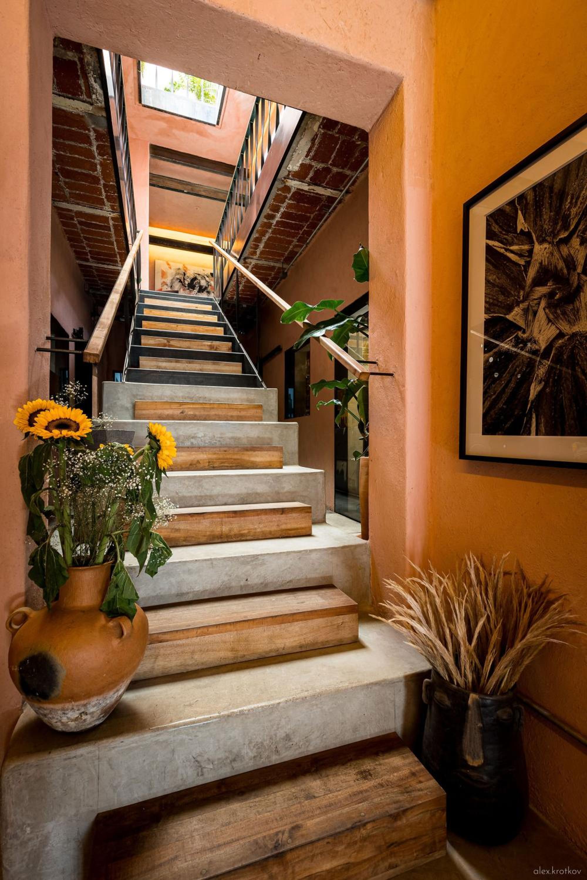 The building itself is quite striking inside. It is more modern, but the space is softened by color, lots of plants, dim lighting, and flowers in the room, which made it feel warm and inviting rather than stark. The rooftop is beautiful, with great views of the city and mountains and even more greenery. It was a really lovely place to spend time and eat breakfast.