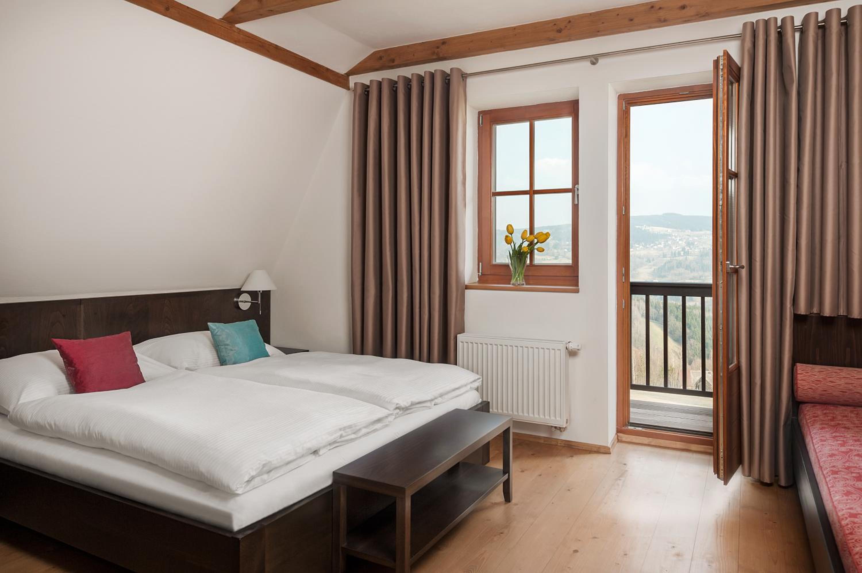 The Aneta Hotel & Restaurant in Vítkovice offers a luxurious stay with convenient amenities. Enjoy ski-to-door access, a kids' club, and free WiFi during your stay. The hotel also features a garden, free private parking, a terrace, and a restaurant where you can unwind after a day of activities.