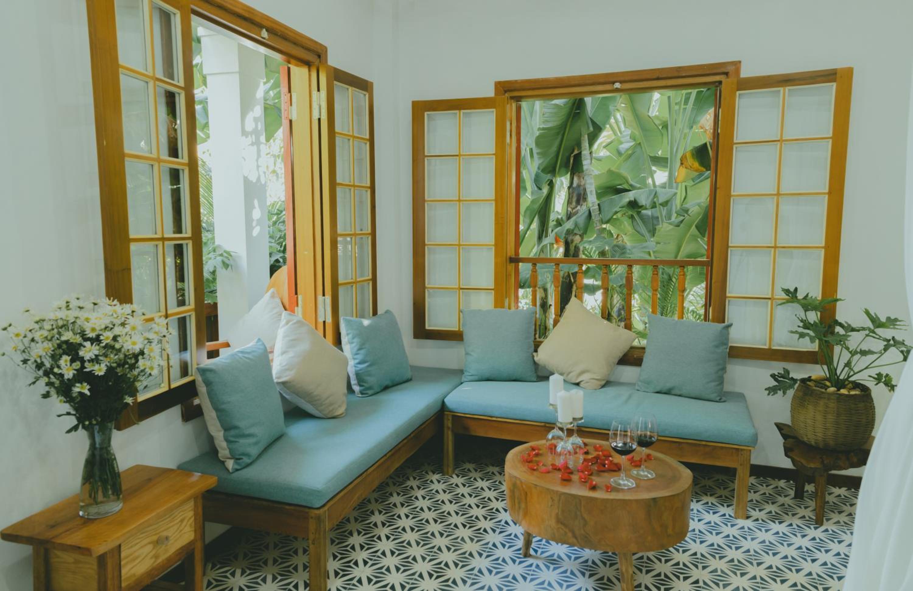 The wooden gate is a total pleasure to stay at. Fantastic staff, great little villas sleep 5. Great breakfast fee bikes and really easy to get to sightseeing and food spots.