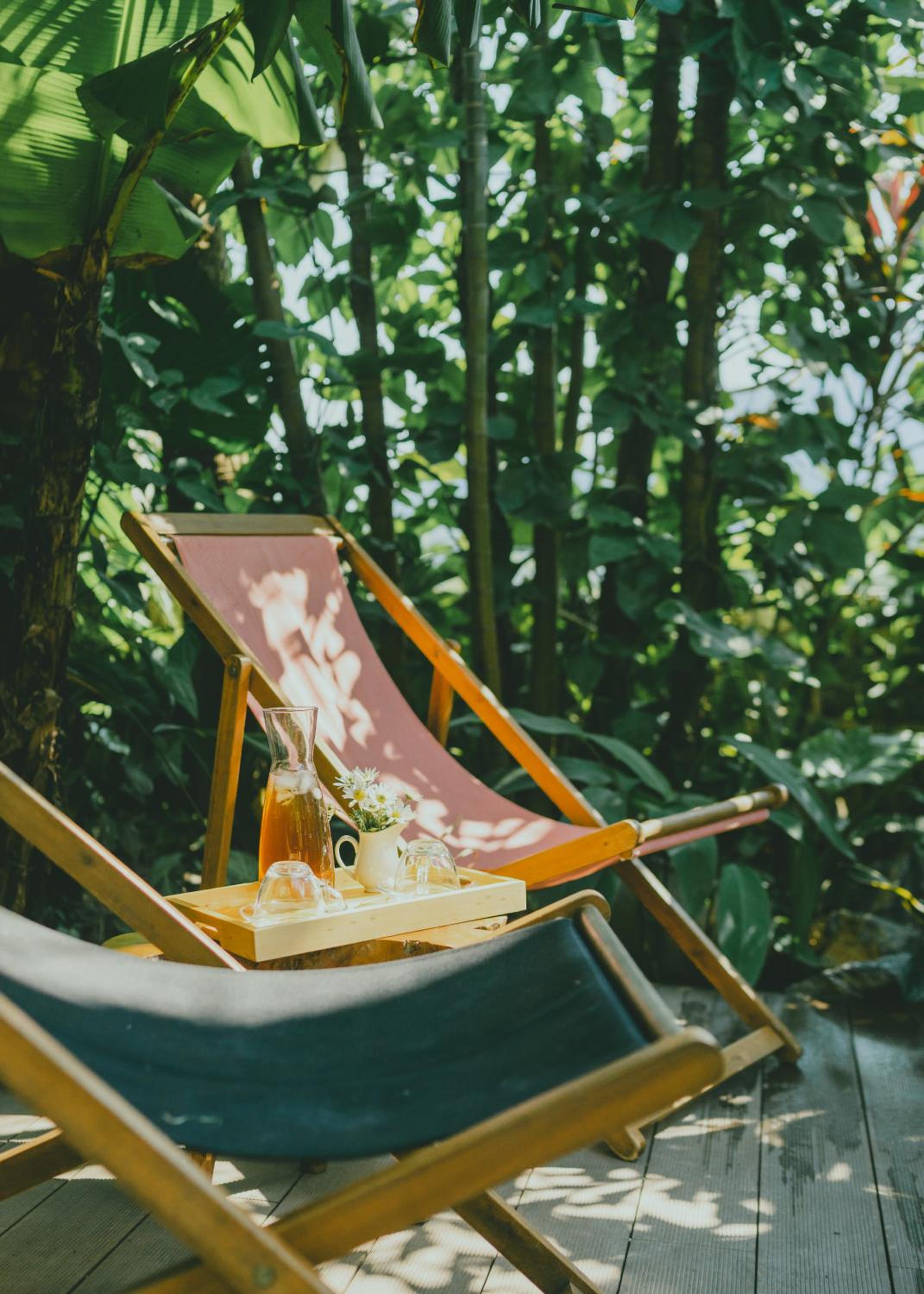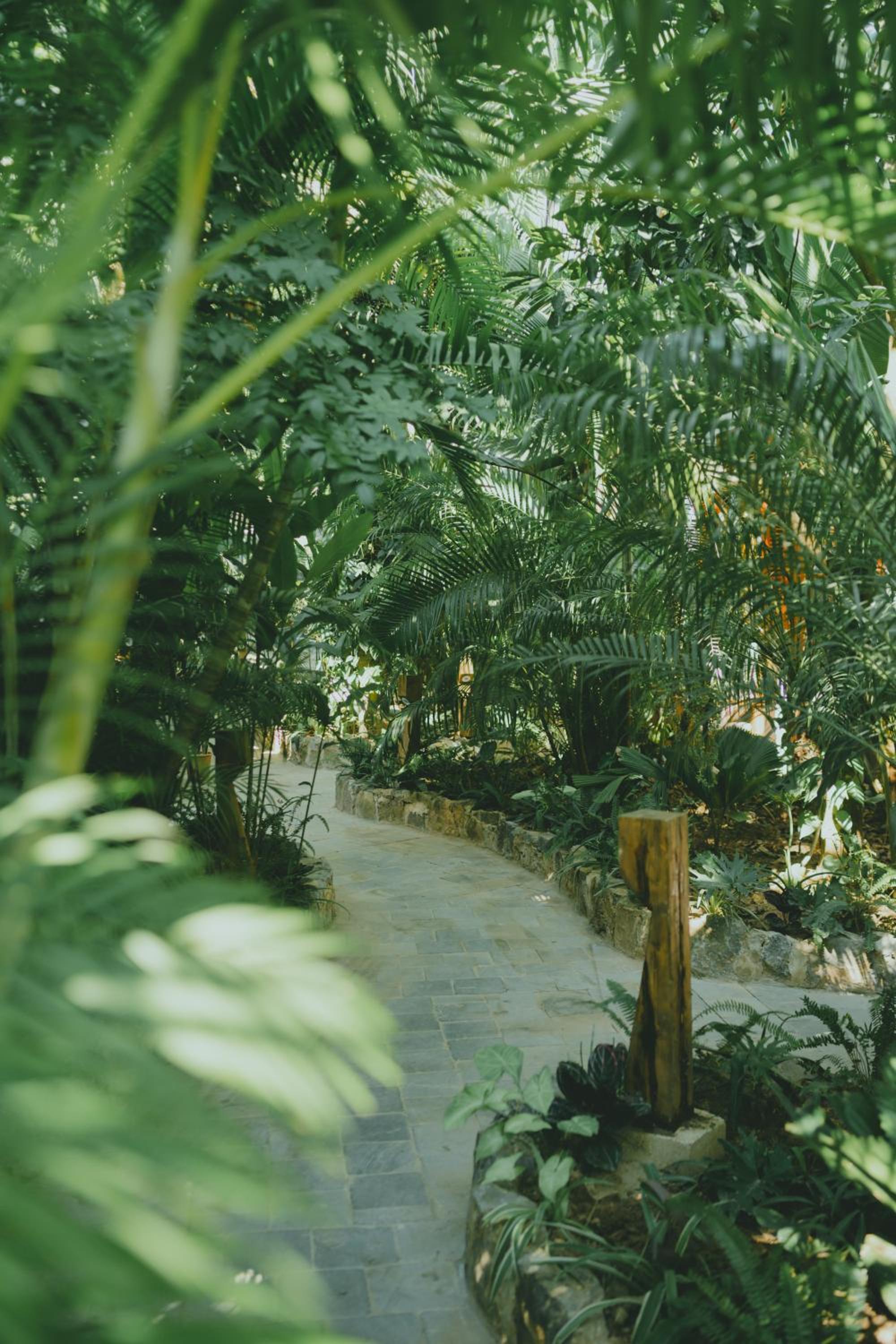 Le jardin est super luxuriant. C'est vraiment orné de plantes et de végétation.