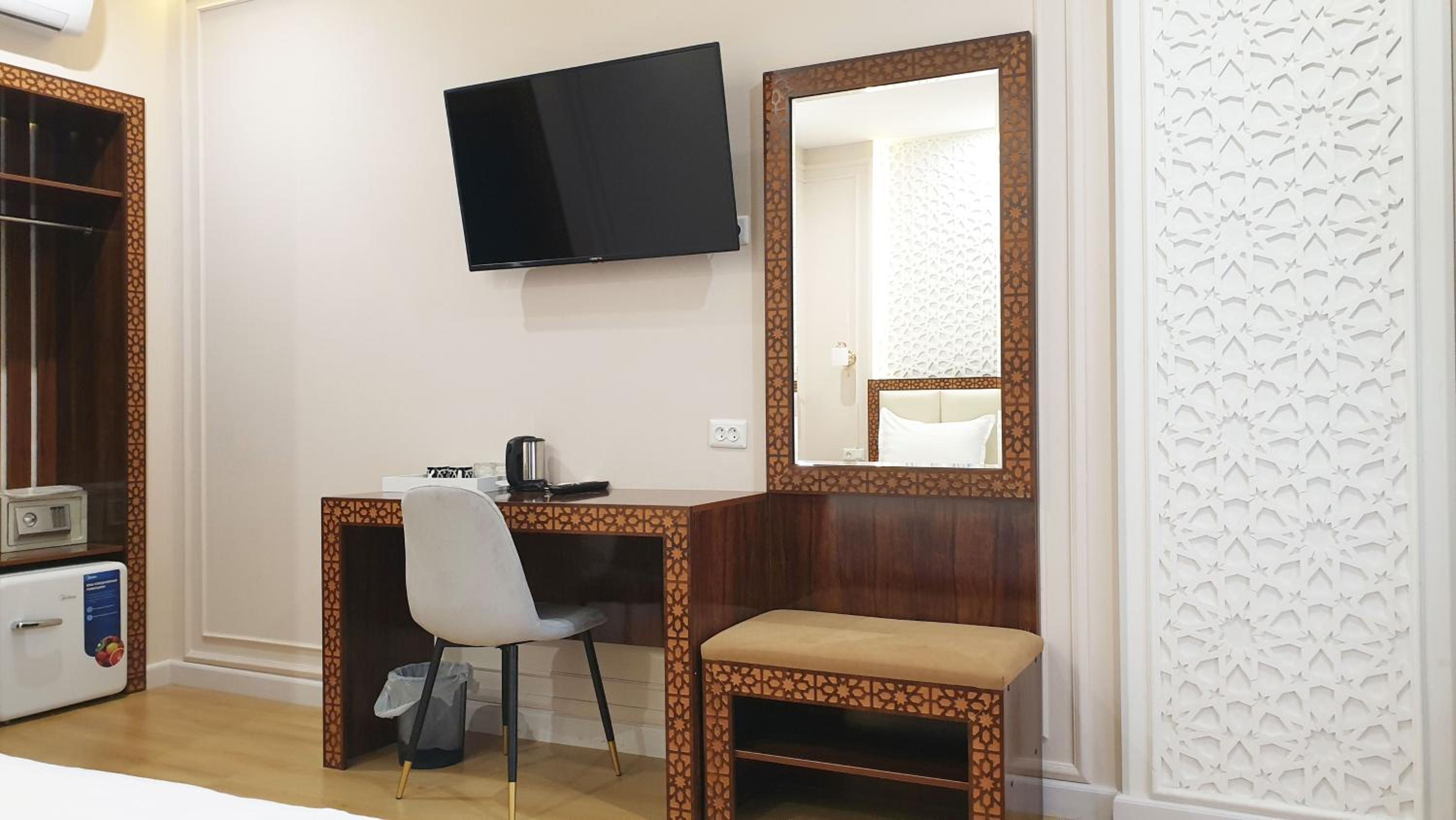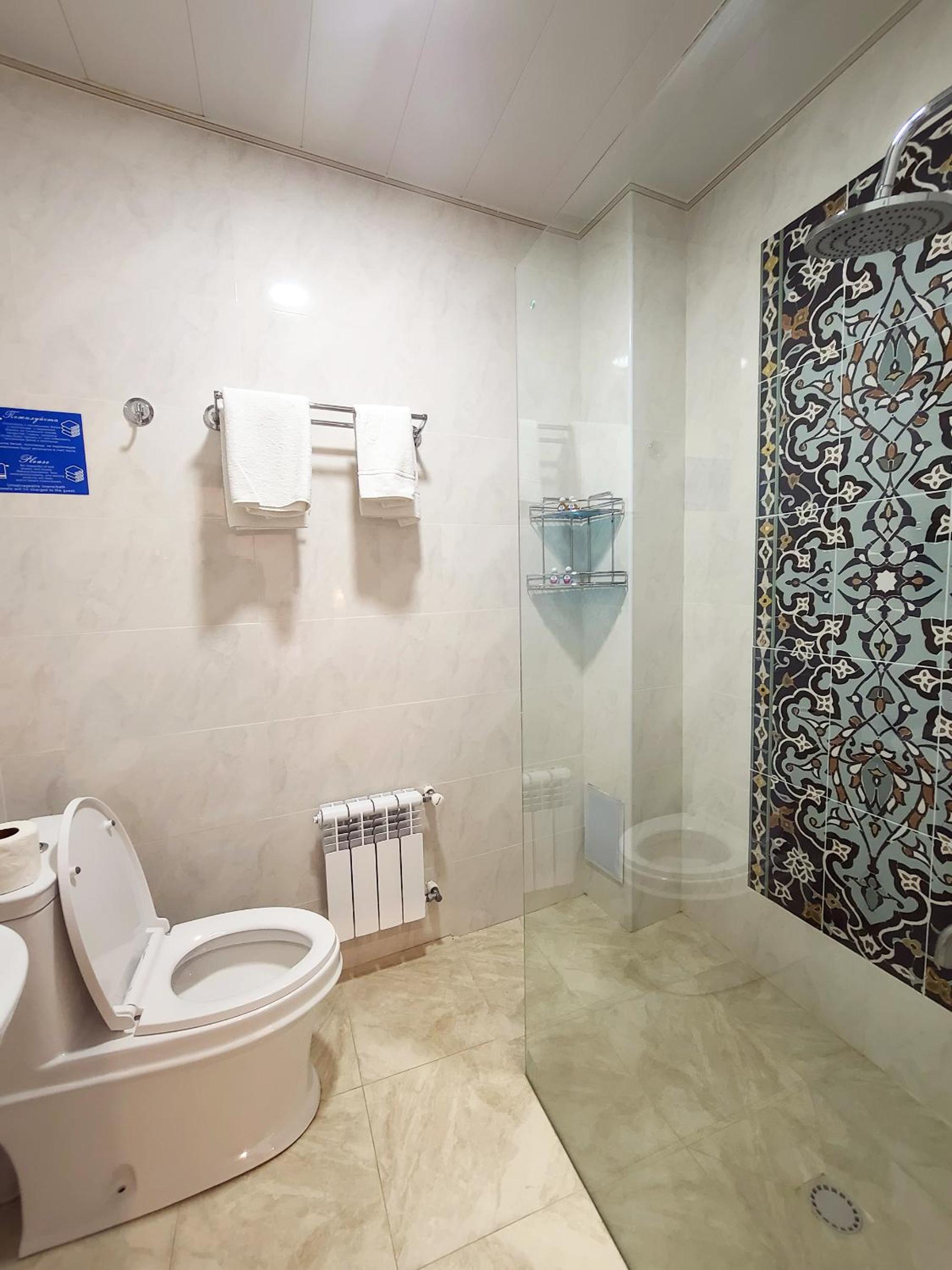 Experience comfort and convenience at Jahongir Premium in Samarkand. Our air-conditioned rooms are equipped with modern amenities such as a flat-screen TV, safety deposit box, and a private bathroom.