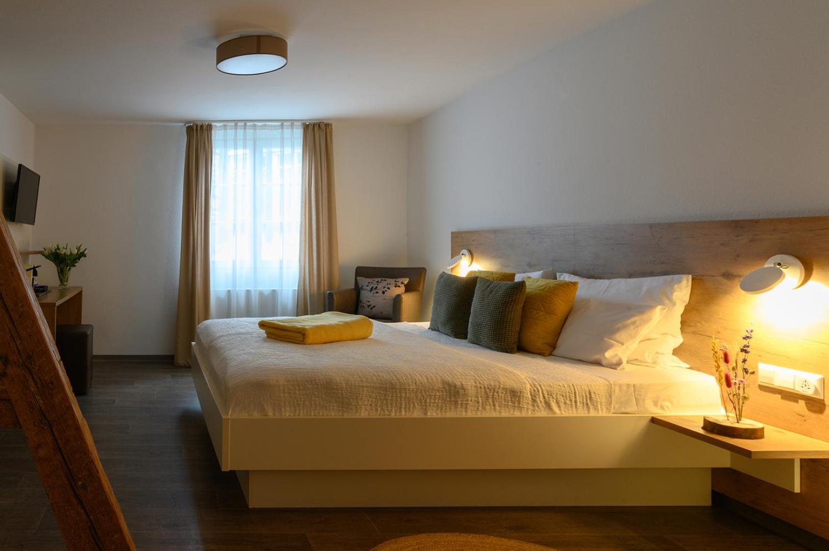 The hotel is located in the center of the beautiful village and it is the oldest building of Schiltach. They run a nice restaurant. Best choise the 2 rooms in the corner of the hotel like a small tower.
