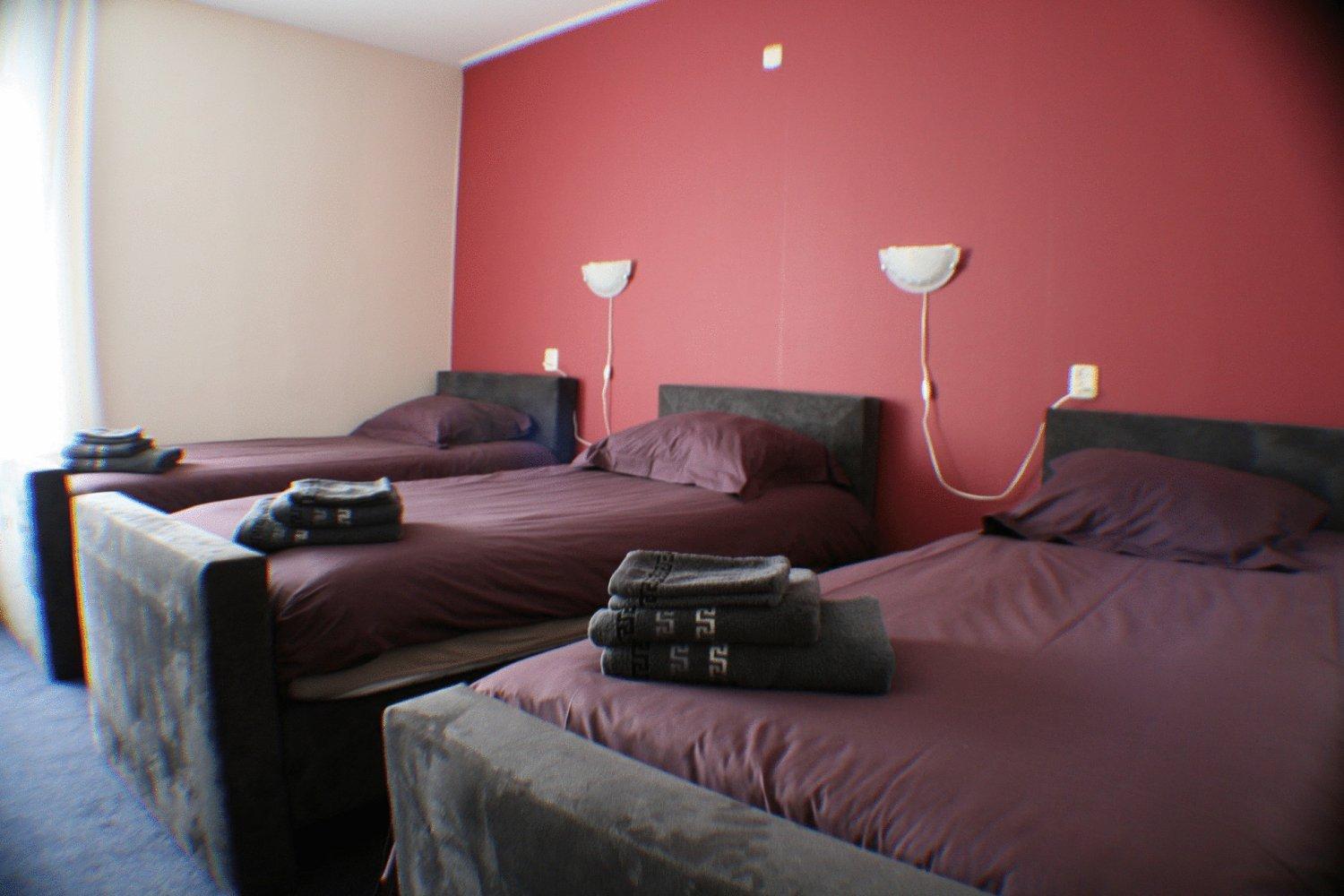 Wir hatten das Dreibettzimmer, da mit Kind unterwegs. Da bleibt die Gemütlichkeit etwas auf der Strecke, denn das Zimmer hat 3 einzelne Betten im Raum verteilt.