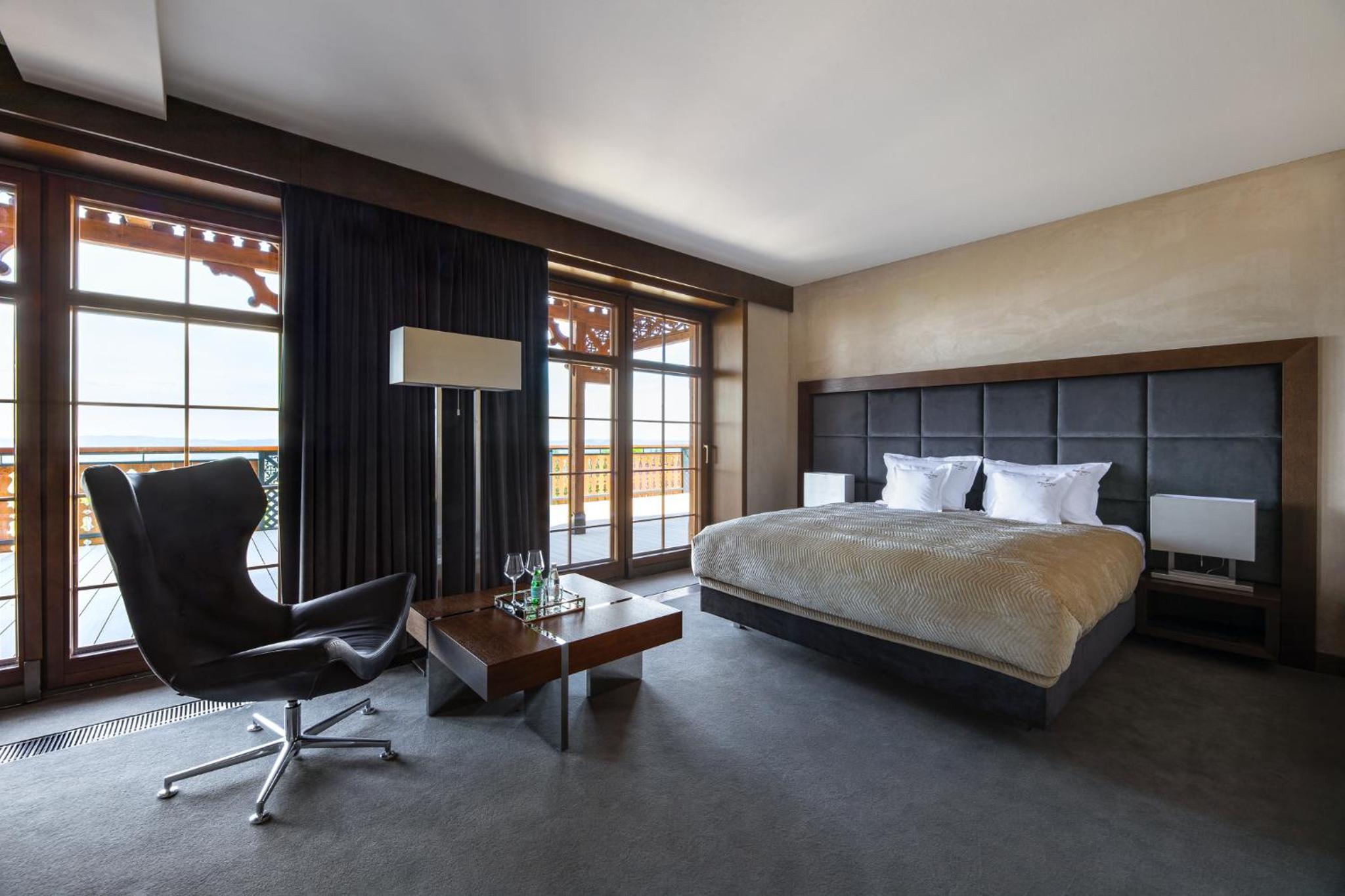 Experience comfort and elegance in the air-conditioned rooms with modern amenities such as a coffee machine, minibar, flat-screen TV, and private bathroom. Some rooms offer stunning mountain views, while all rooms provide a relaxing retreat.