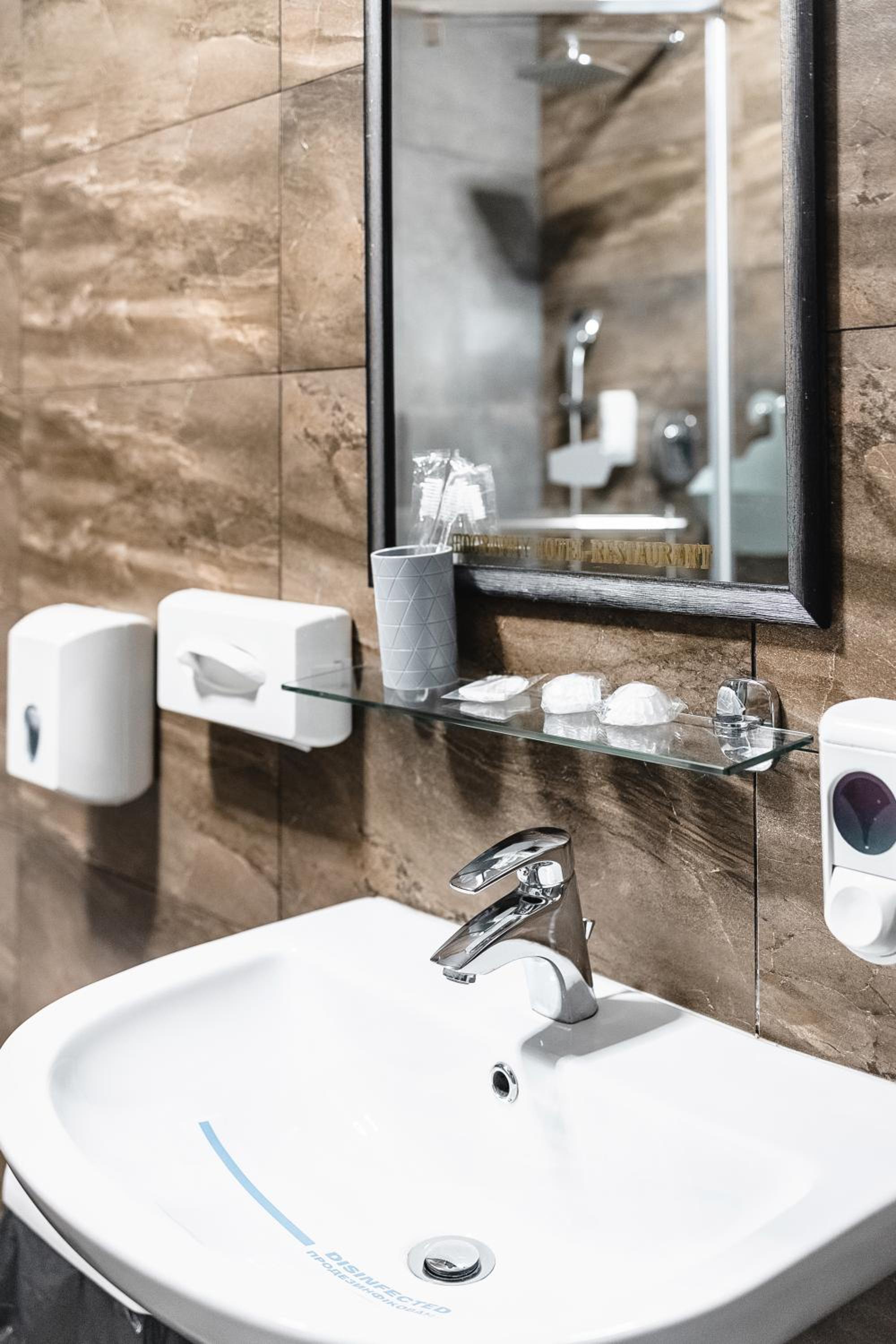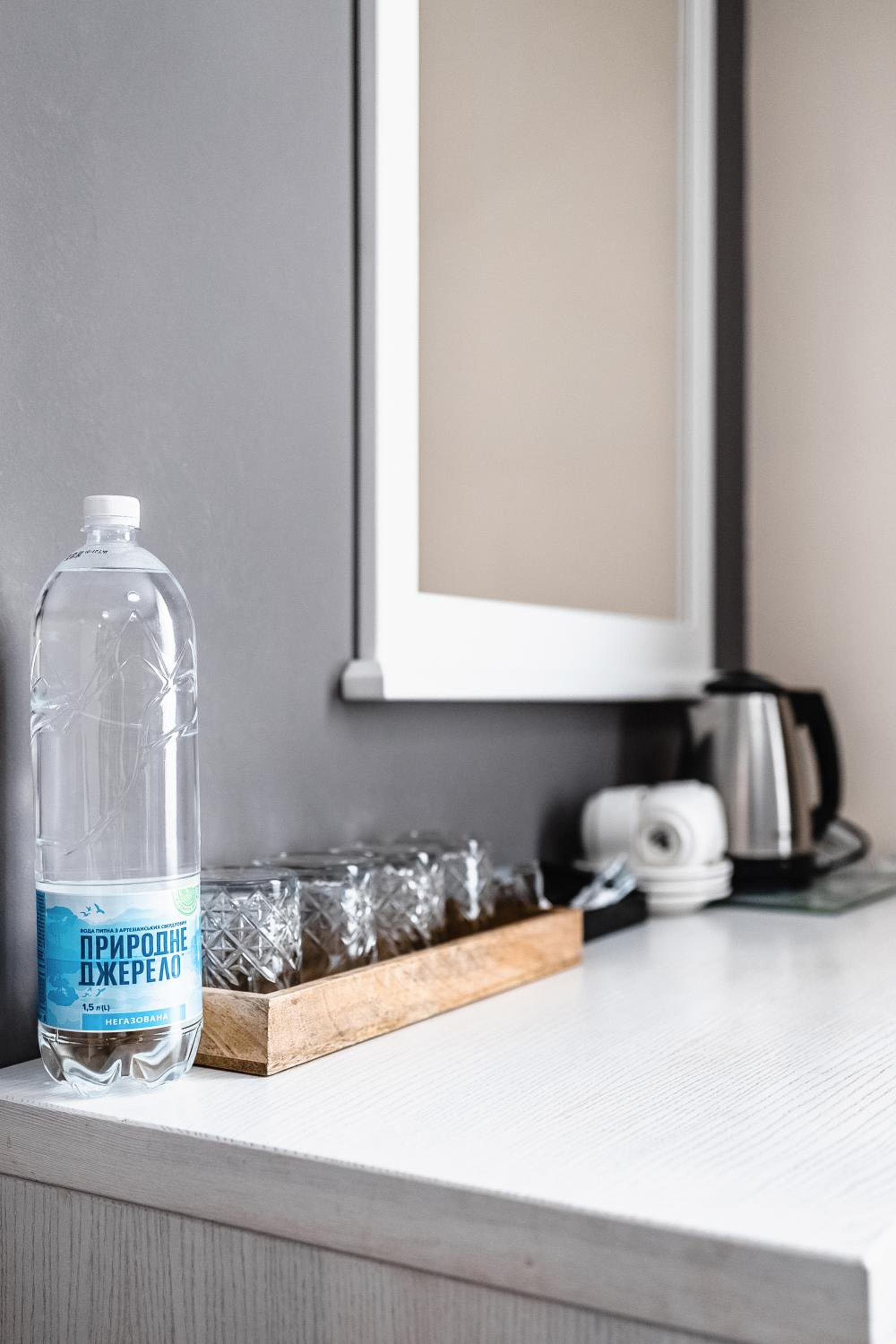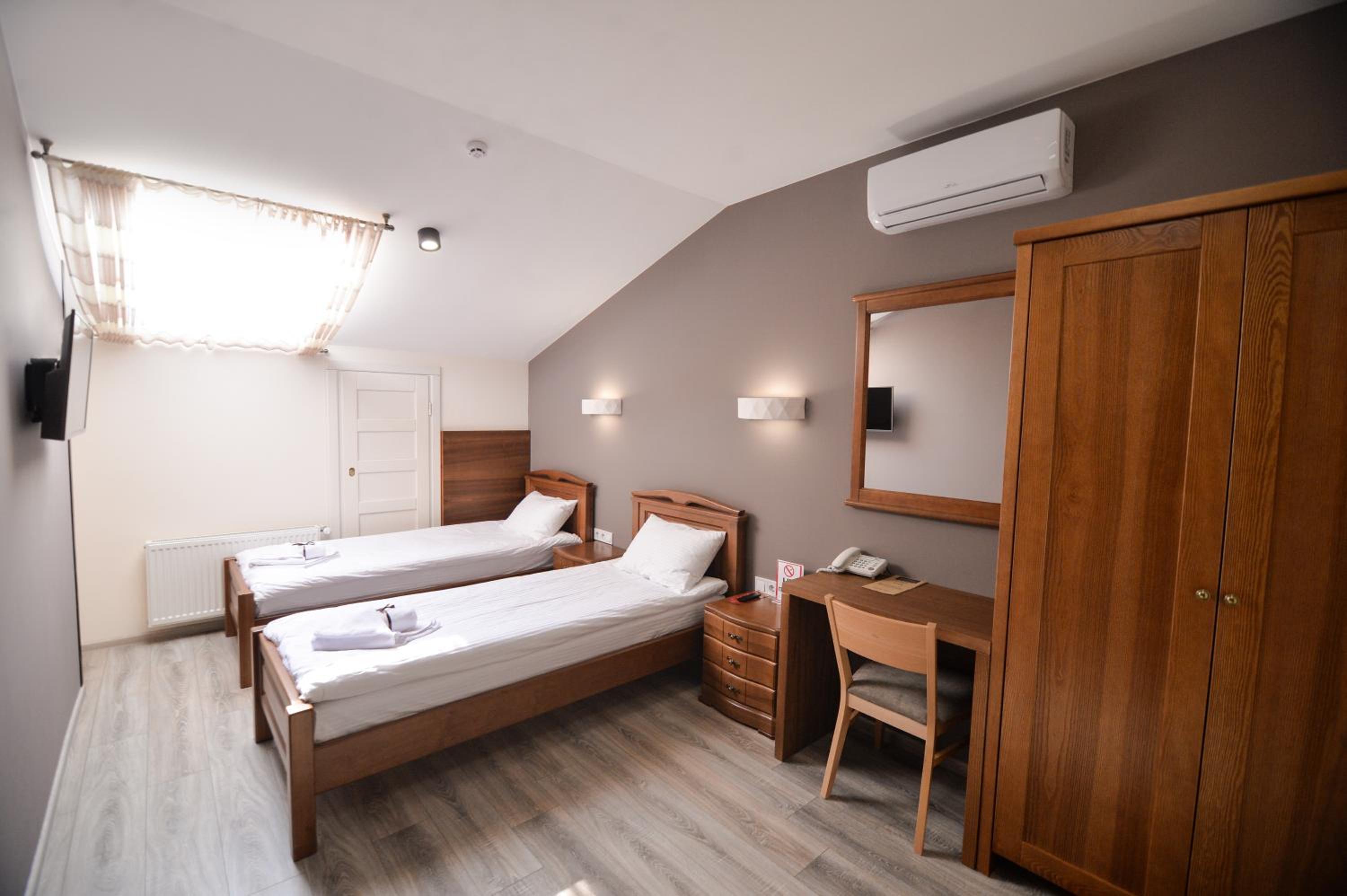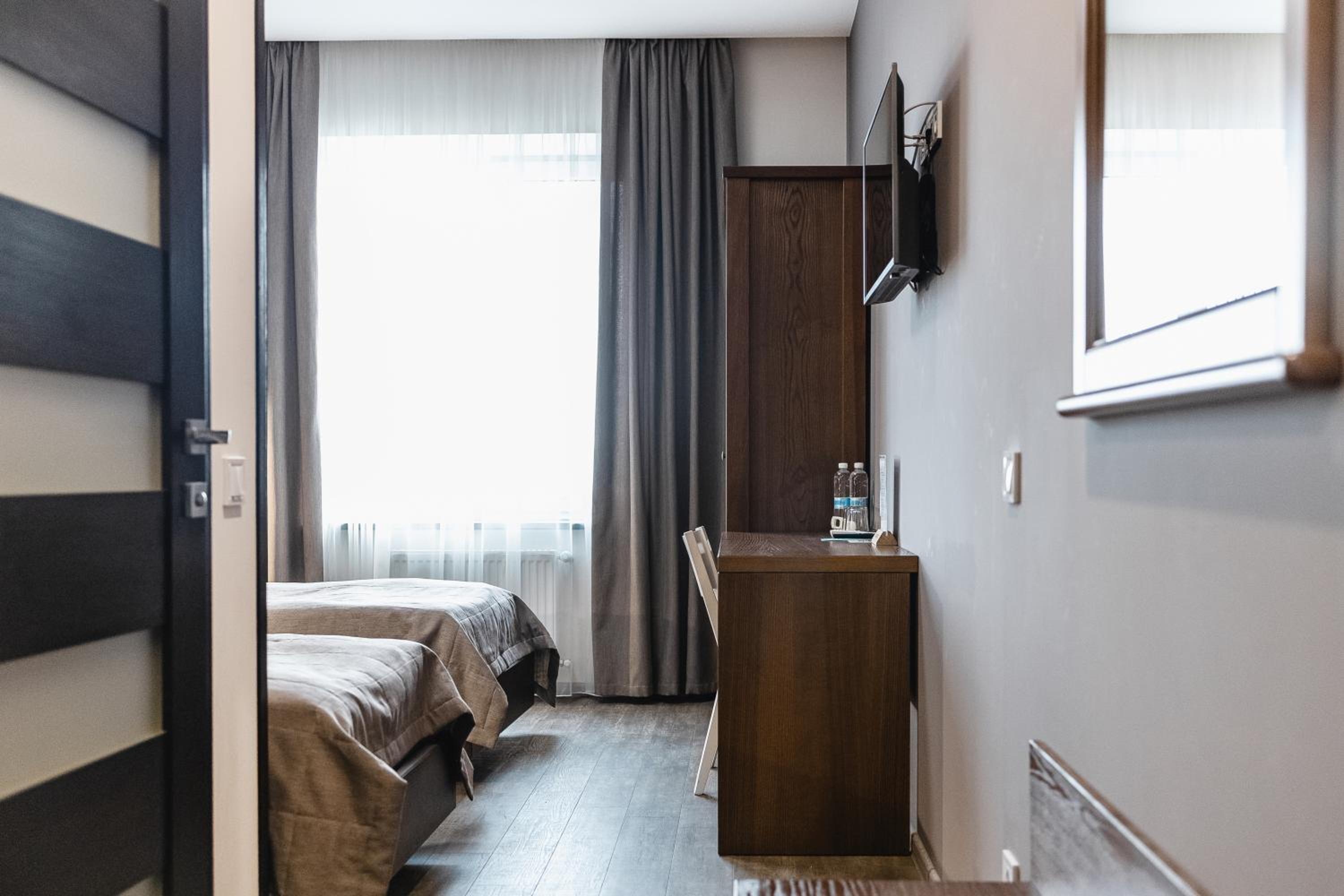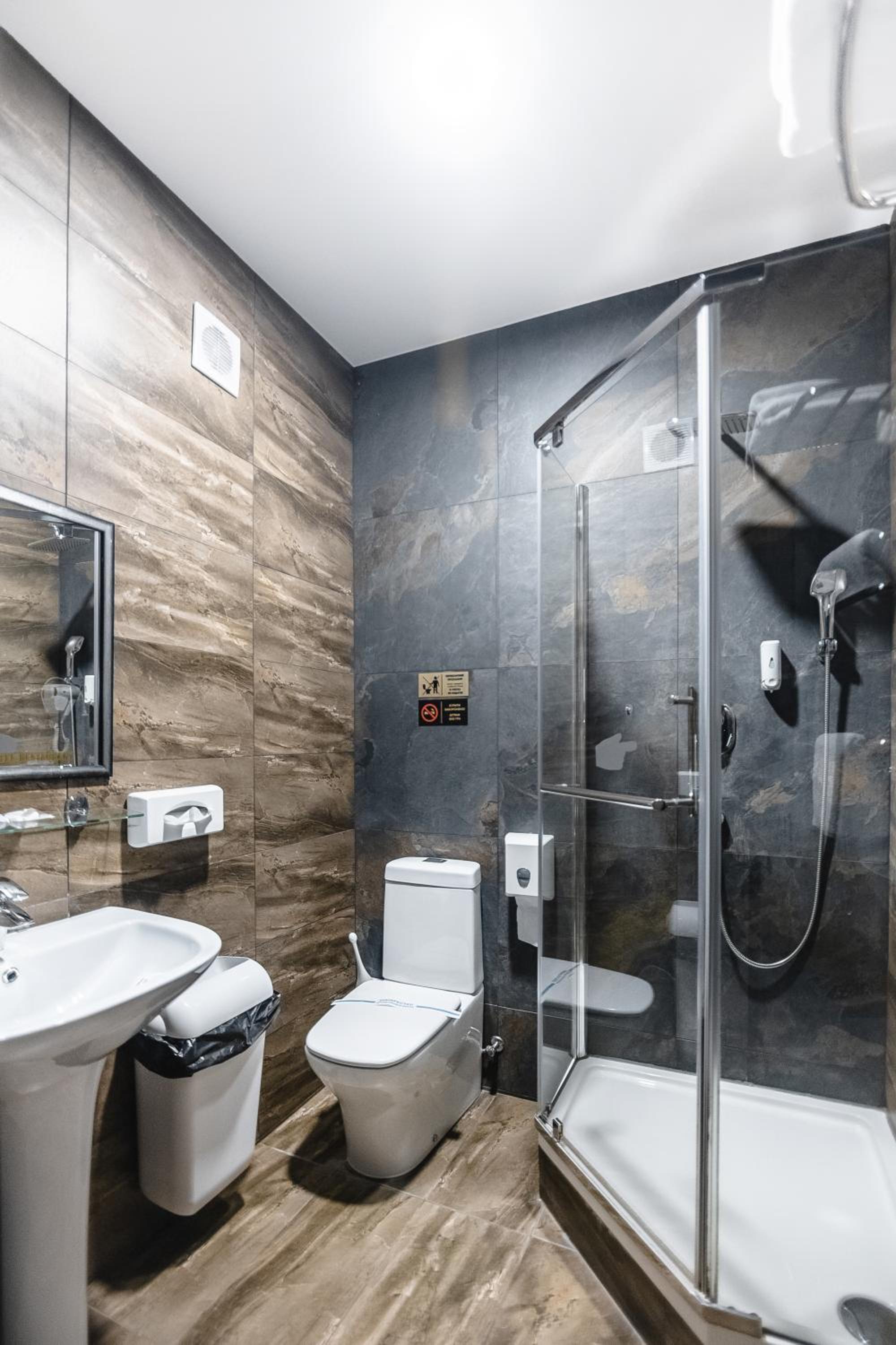 На підвіконні в коридорі майже 5 годин стояли брудний посуд і залишки їжі, сморід йшов по всьому коридору. Чому не прибирали , незрозуміло… сказали, що в готелі не палять, але в ванній кімнаті було чутно запах від цигарок… ми були із песиками, поряд із готелем немає зеленої території, маленька клумба із забороною вигуки для собак, але там досить весело бігав дворовий пес…