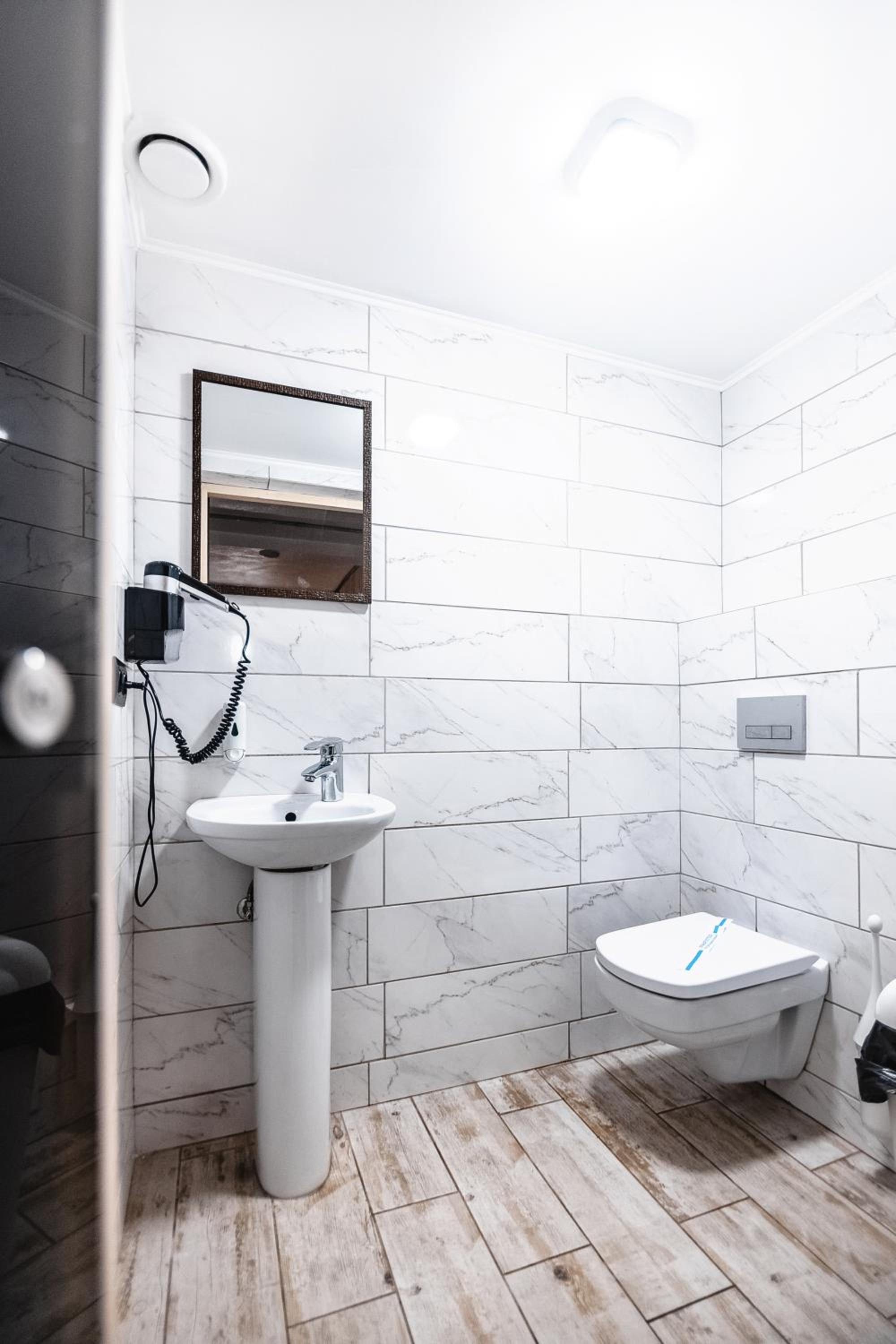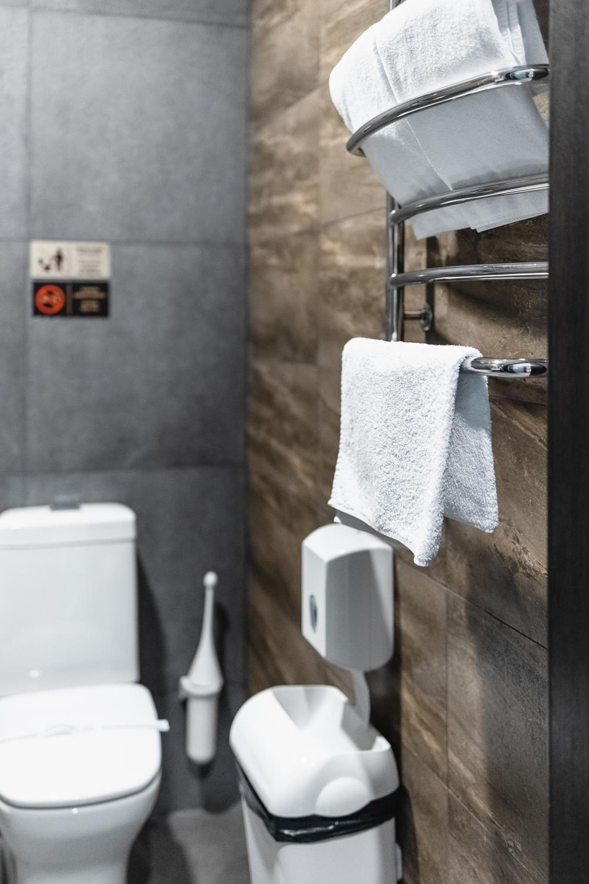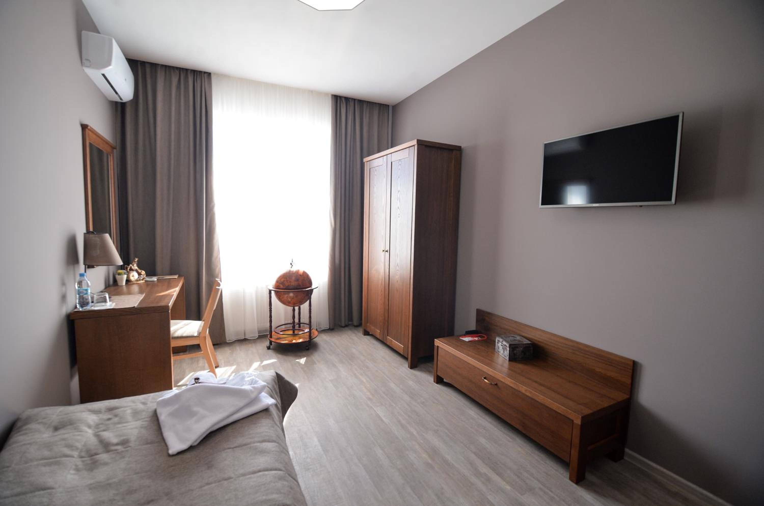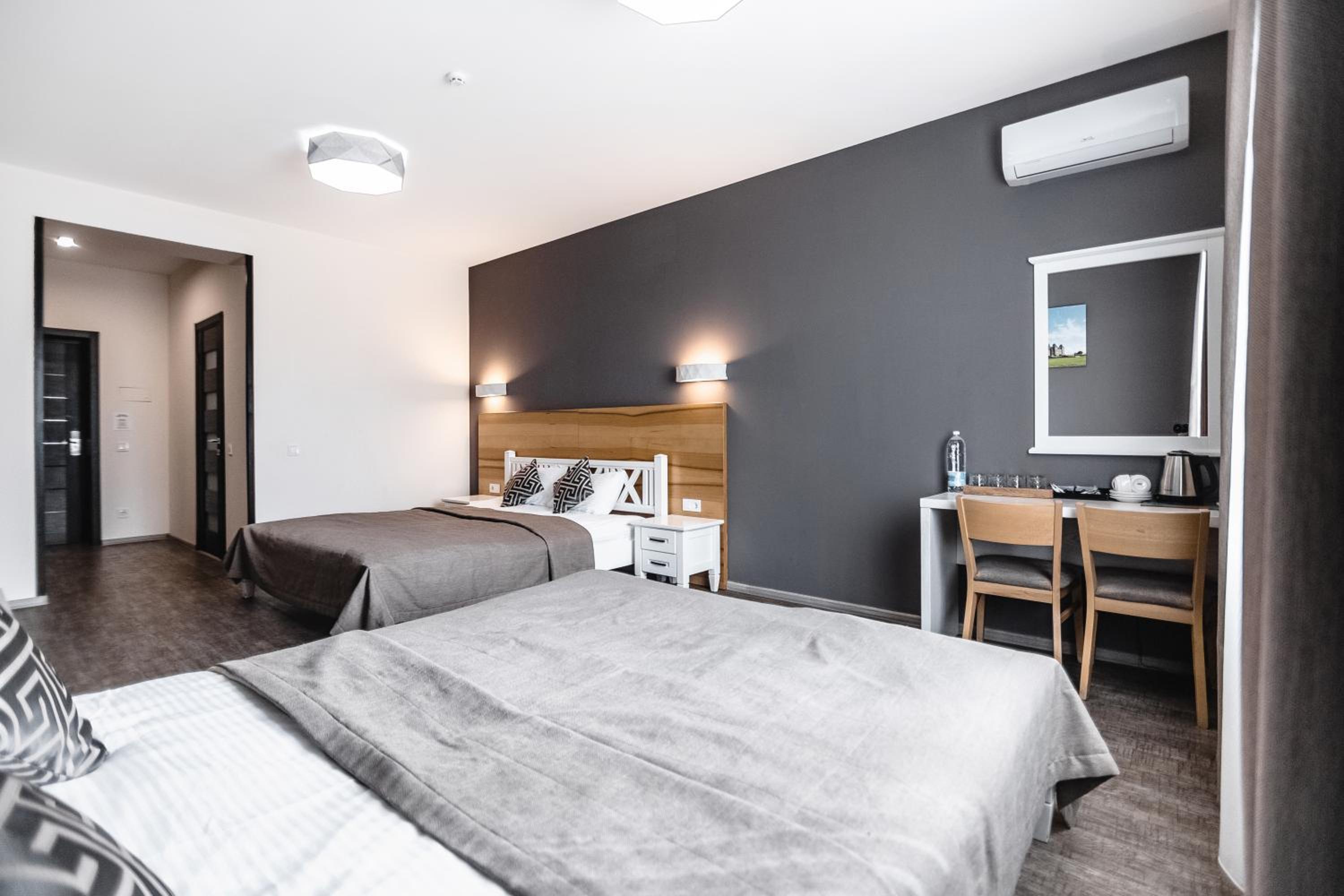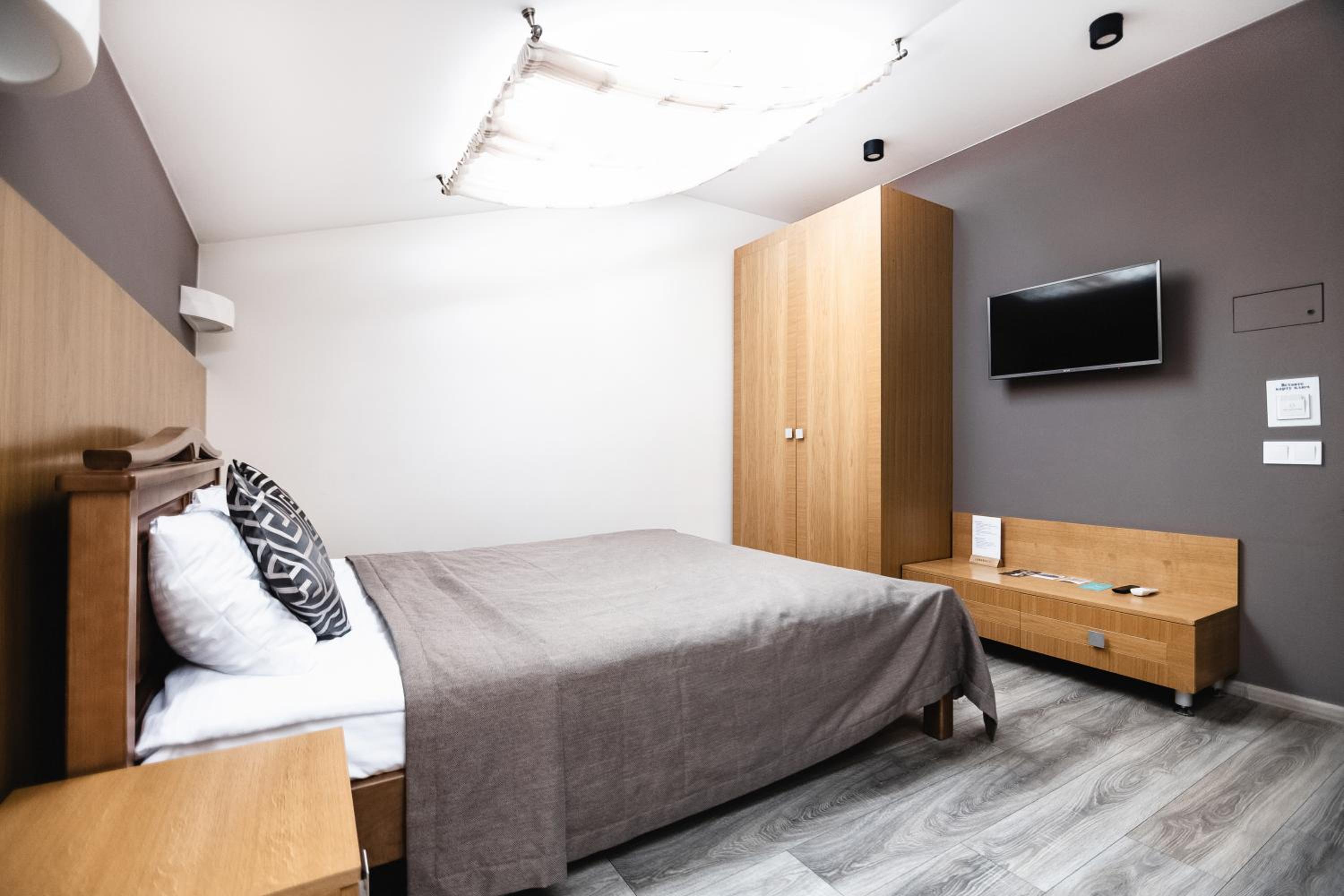 На підвіконні в коридорі майже 5 годин стояли брудний посуд і залишки їжі, сморід йшов по всьому коридору. Чому не прибирали , незрозуміло… сказали, що в готелі не палять, але в ванній кімнаті було чутно запах від цигарок… ми були із песиками, поряд із готелем немає зеленої території, маленька клумба із забороною вигуки для собак, але там досить весело бігав дворовий пес…