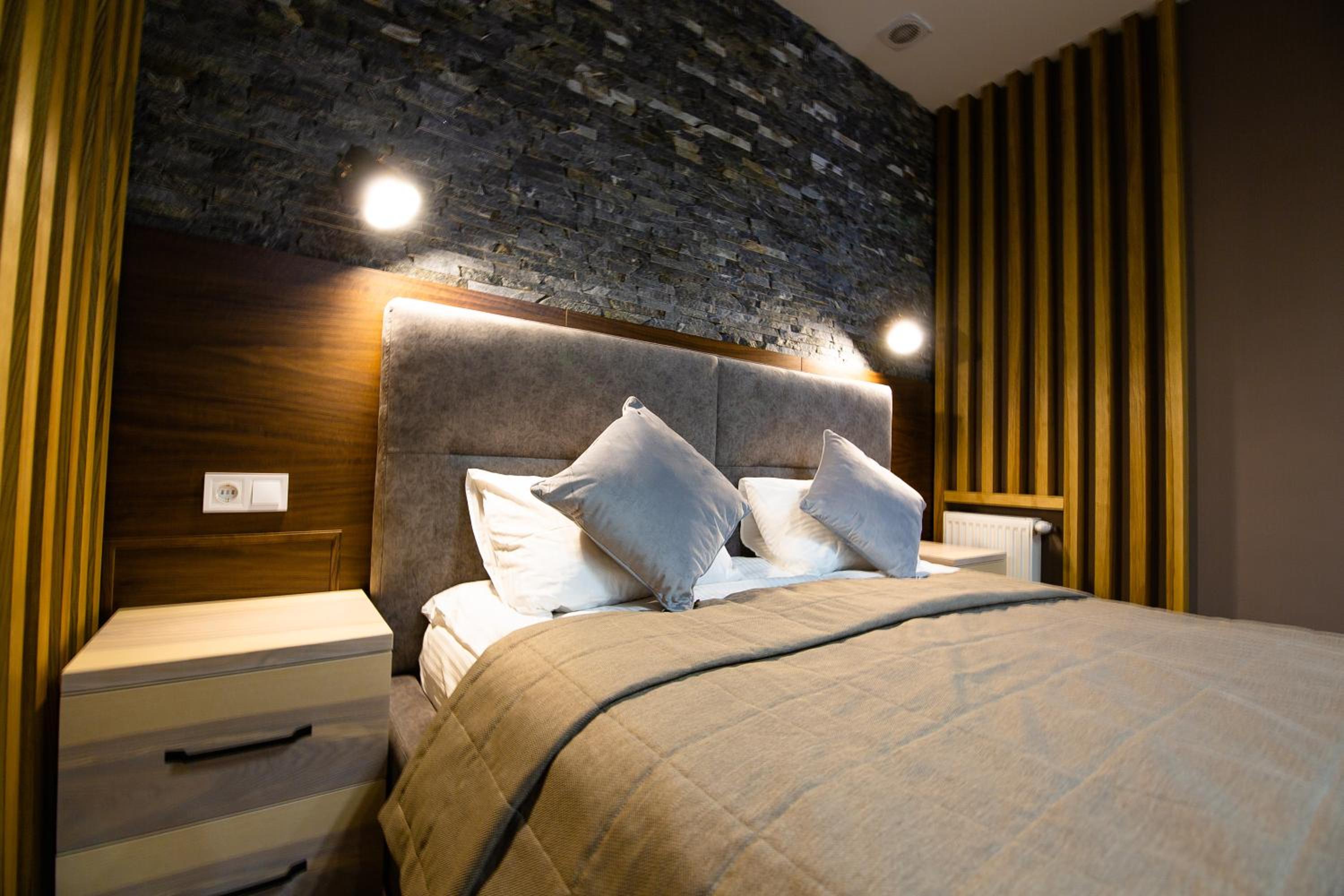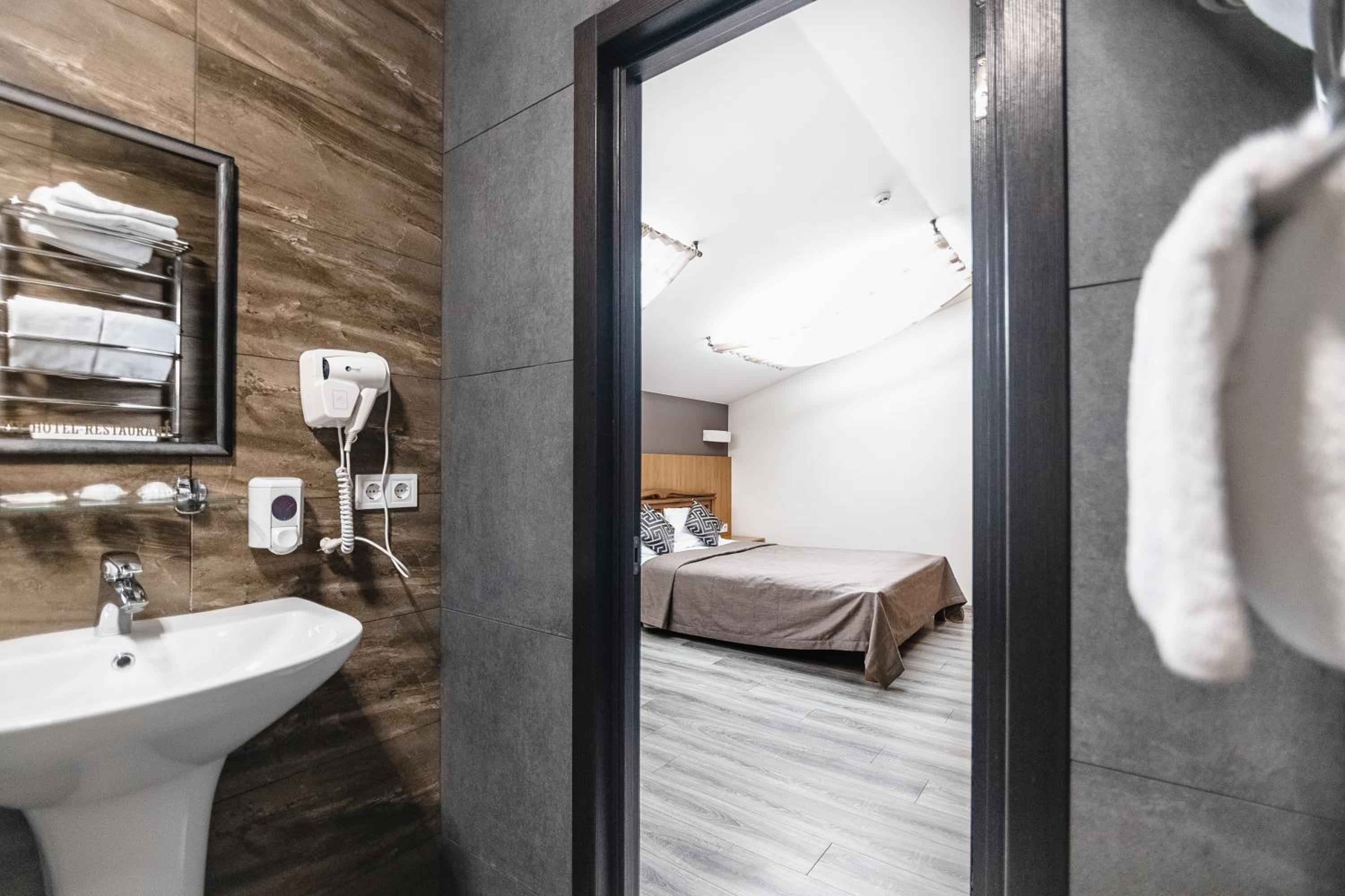 Номер люкс знаходиться над рестораном, нам повезло що не було гучного банкету! Дуже низька звукоізоляція, дуже чутно сусідів зверху, на коридорі. В кімнаті був дуже неприємний запах як мені пояснили на ресепціі, після хімії. Я попросила помити підлогу звичайною водою, бо нічим дихати від сморід у, відмовили, і ми гуляли десь 3 години по вулиці, чекаючи на провітрювання номера.
