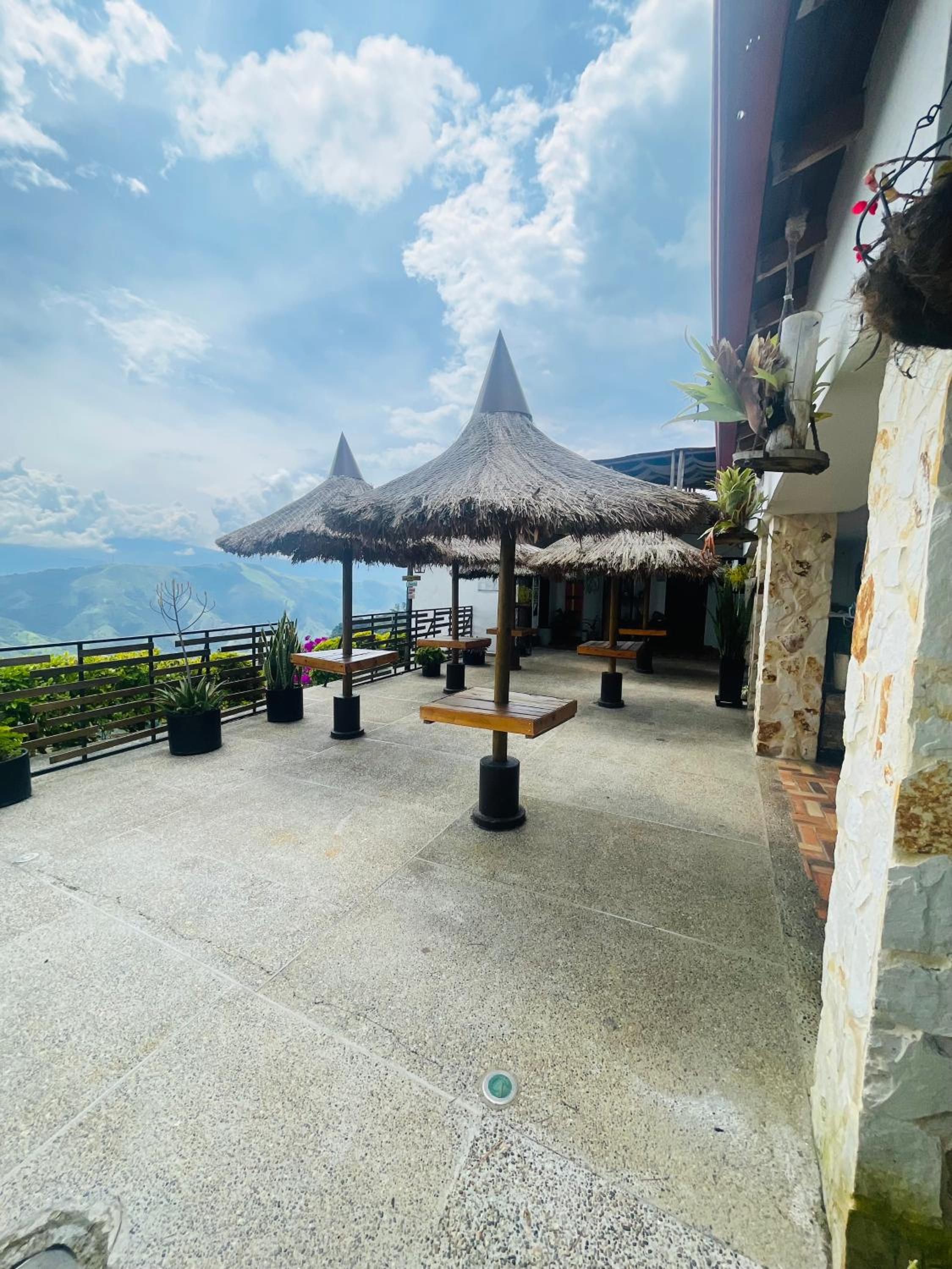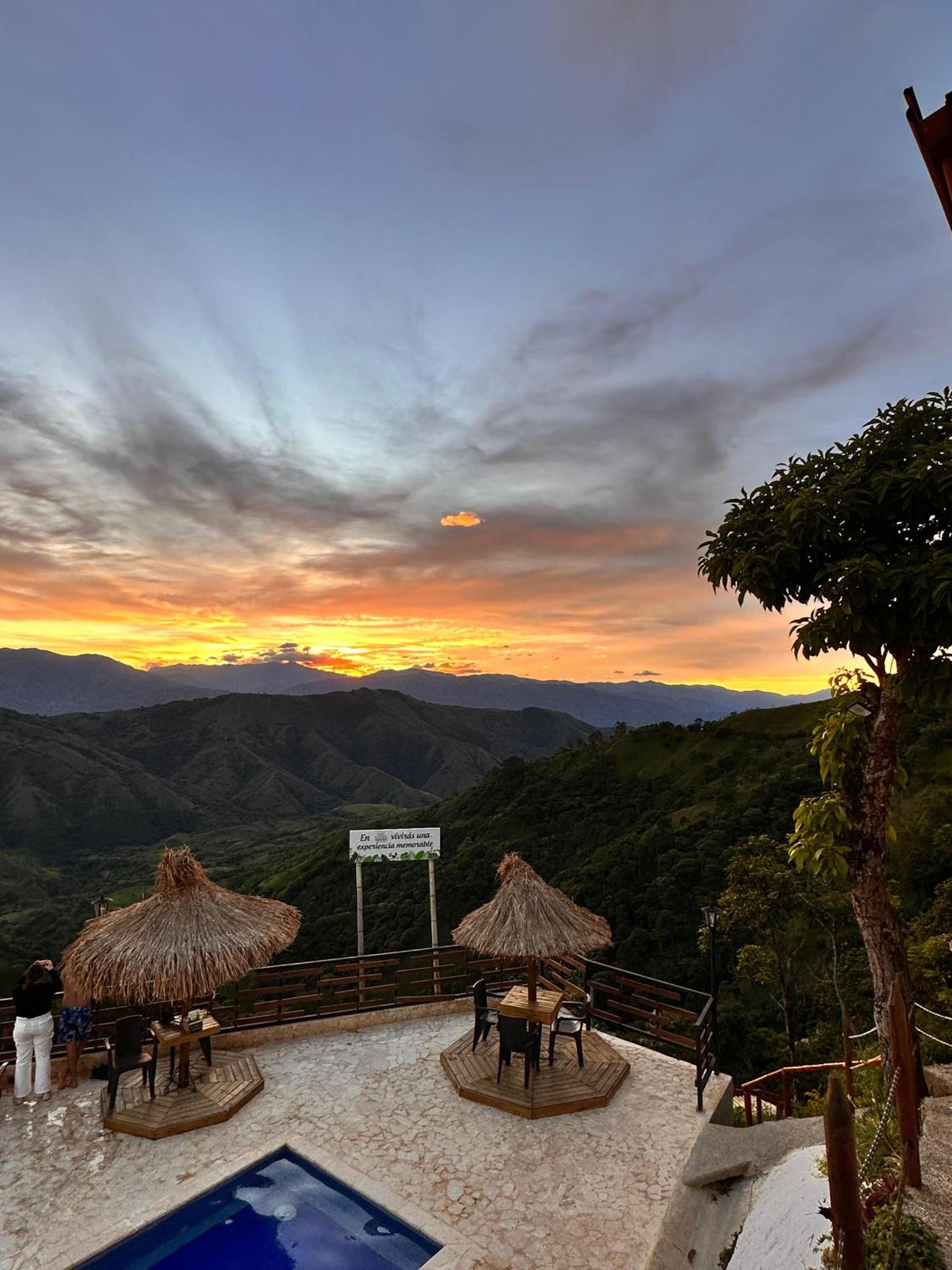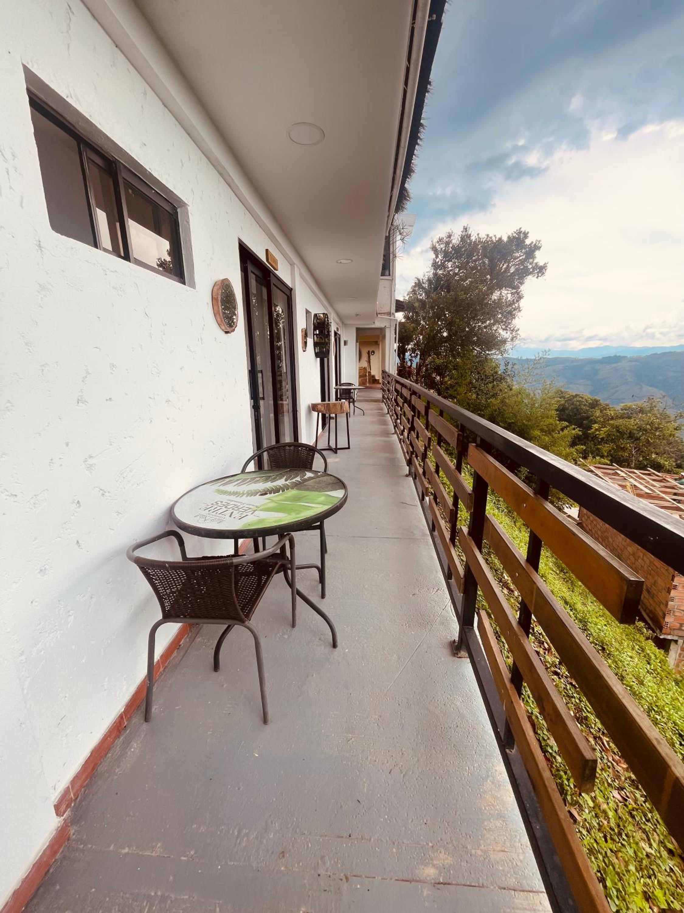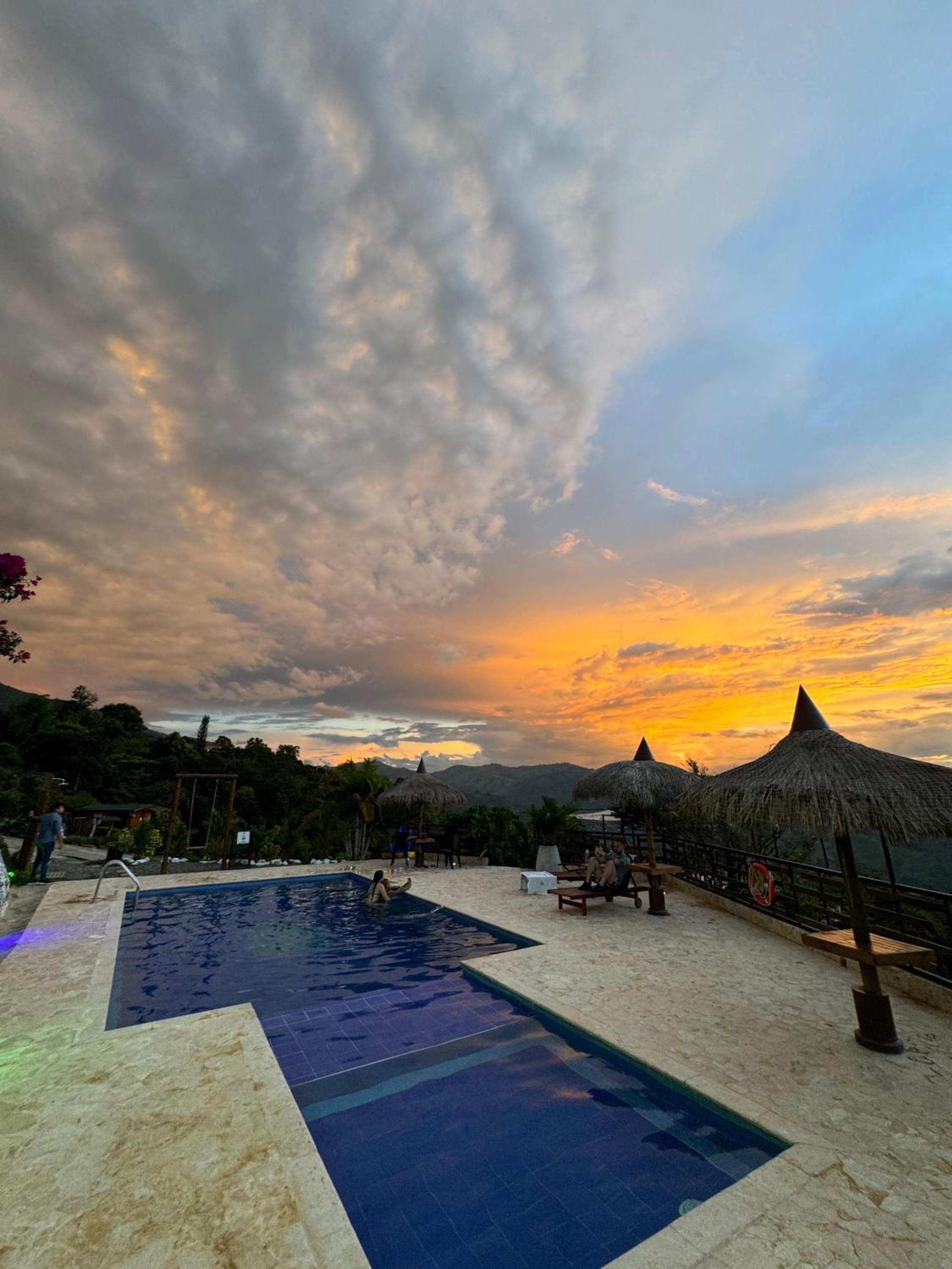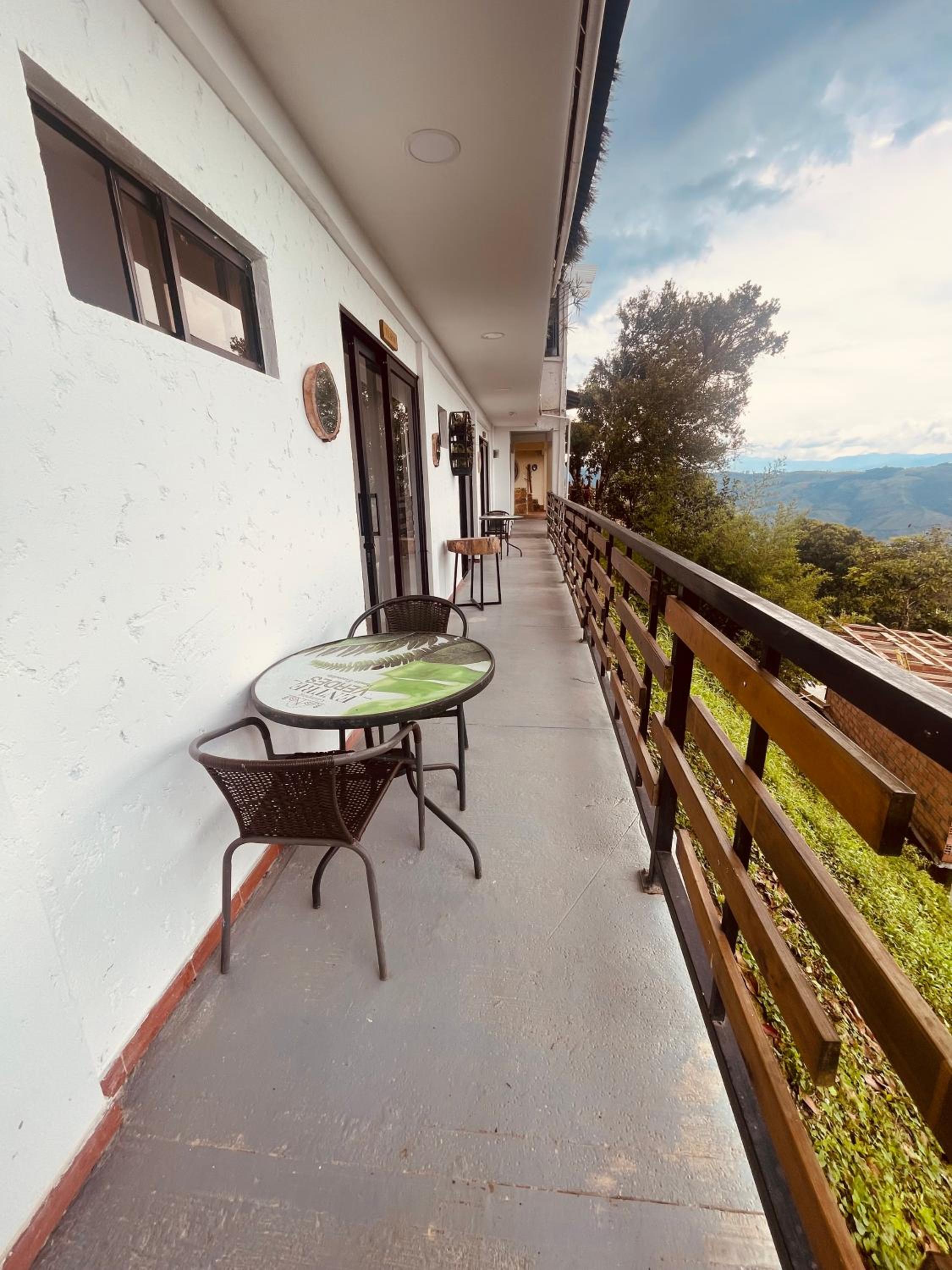 We stayed in the hotel portion of the property. Restaurant was not operating except for a minimal breakfast offering. Bar did not exist. The room had no closet or space to hang or store clothes, and only one light bulb and no AC or even a fan. Only one outlet to charge phones. Bathroom was small and only one light bulb. Pool was not heated. Bedding was thin and mattress was very hard. The view was nice but not different than anywhere else in Colombia. The road to the hotel was unpaved and very rough. The only offering for dinner was a chicken and hotdog skewer. Town was a long ride and no quality restaurants.