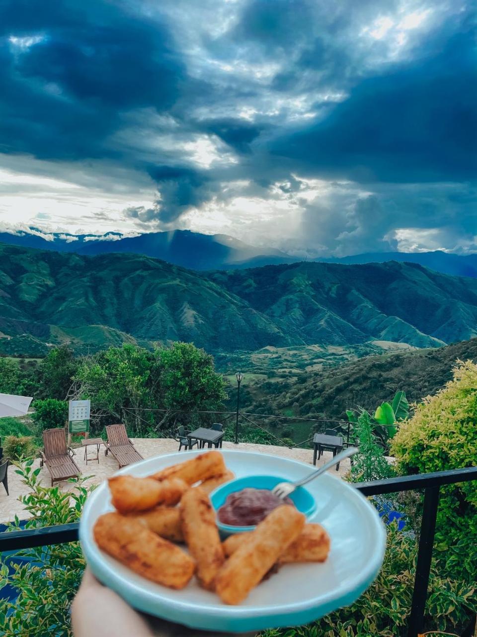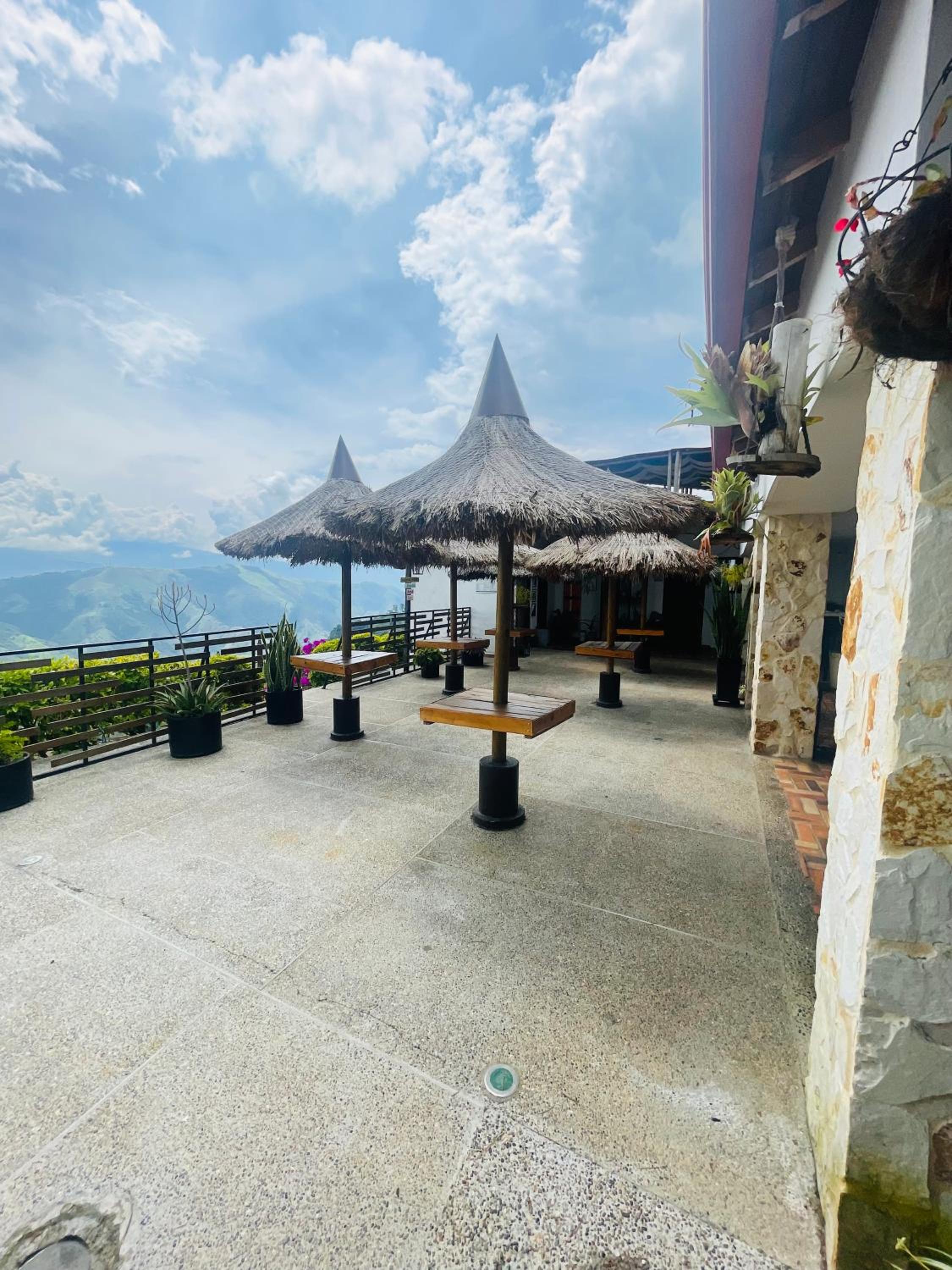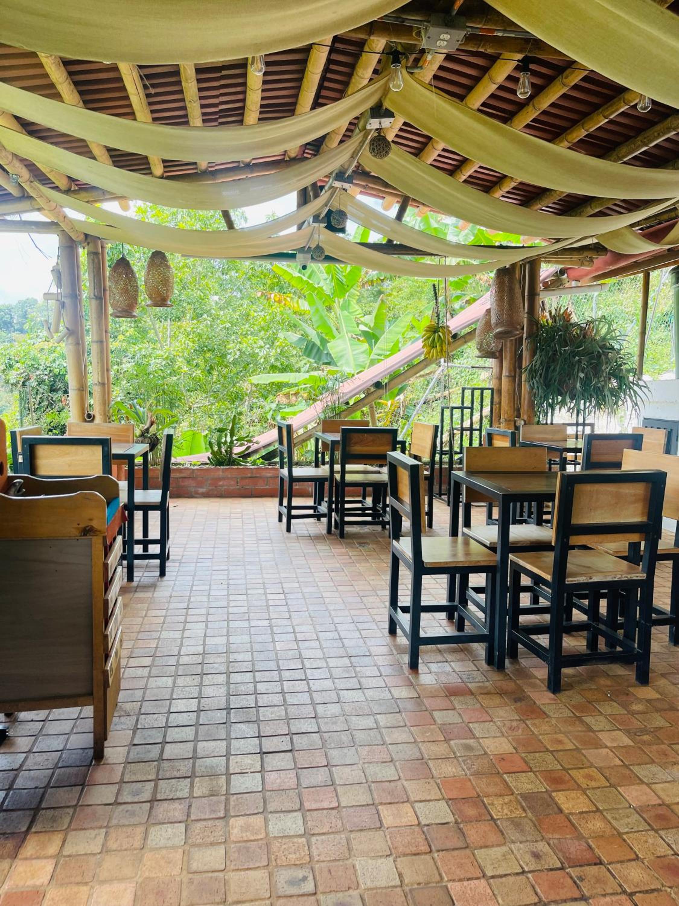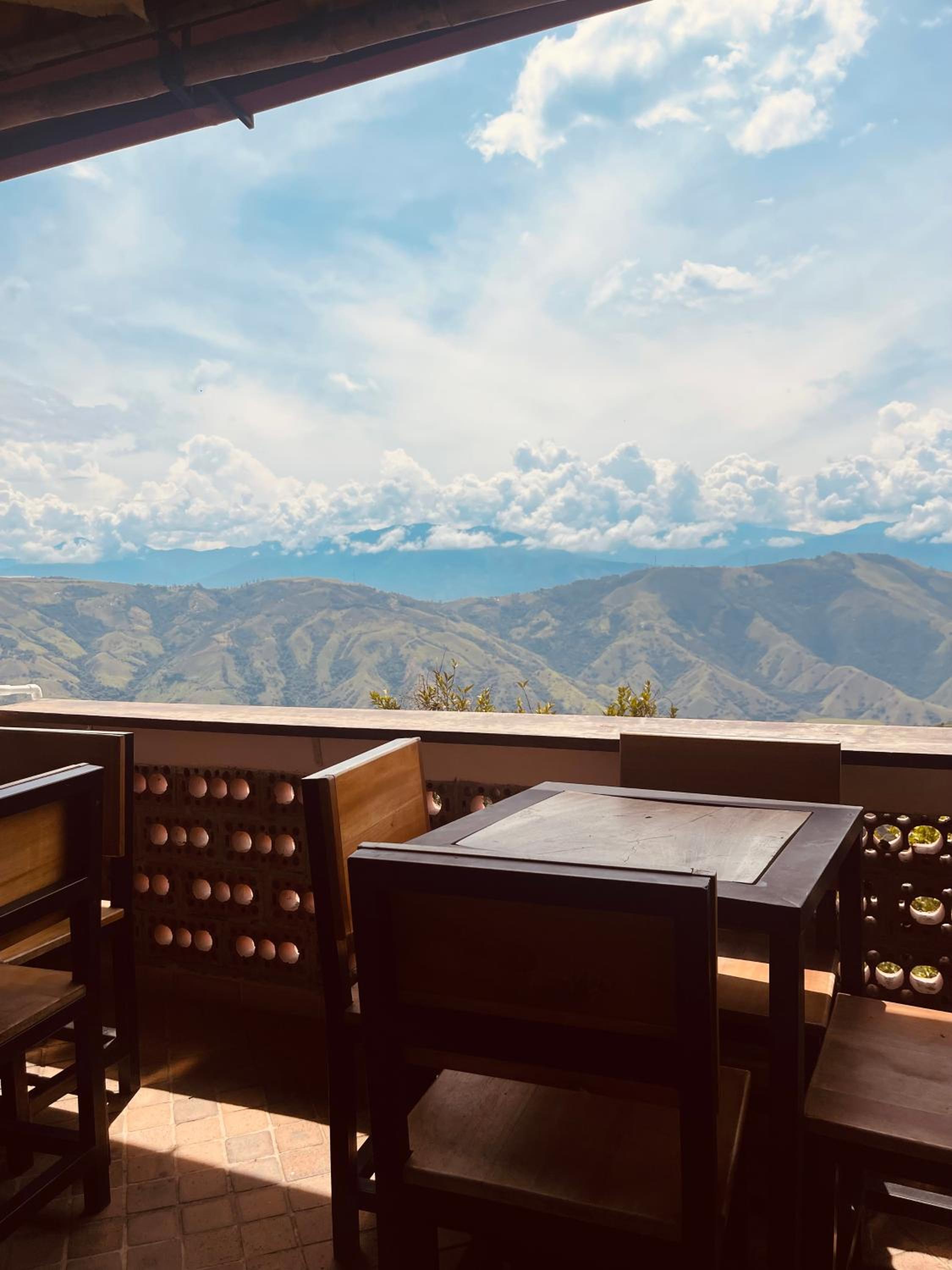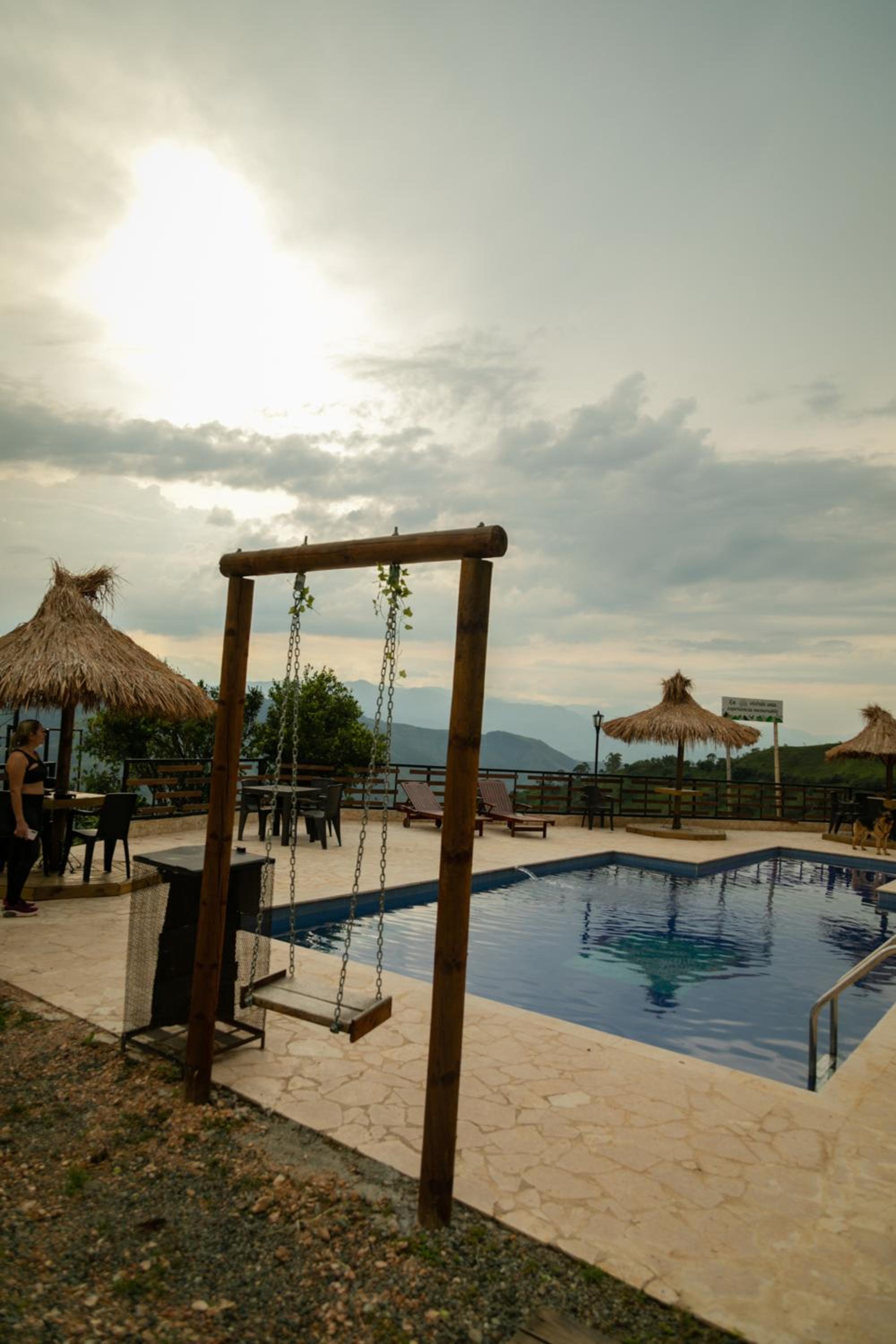 We stayed in the hotel portion of the property. Restaurant was not operating except for a minimal breakfast offering. Bar did not exist. The room had no closet or space to hang or store clothes, and only one light bulb and no AC or even a fan. Only one outlet to charge phones. Bathroom was small and only one light bulb. Pool was not heated. Bedding was thin and mattress was very hard. The view was nice but not different than anywhere else in Colombia. The road to the hotel was unpaved and very rough. The only offering for dinner was a chicken and hotdog skewer. Town was a long ride and no quality restaurants.