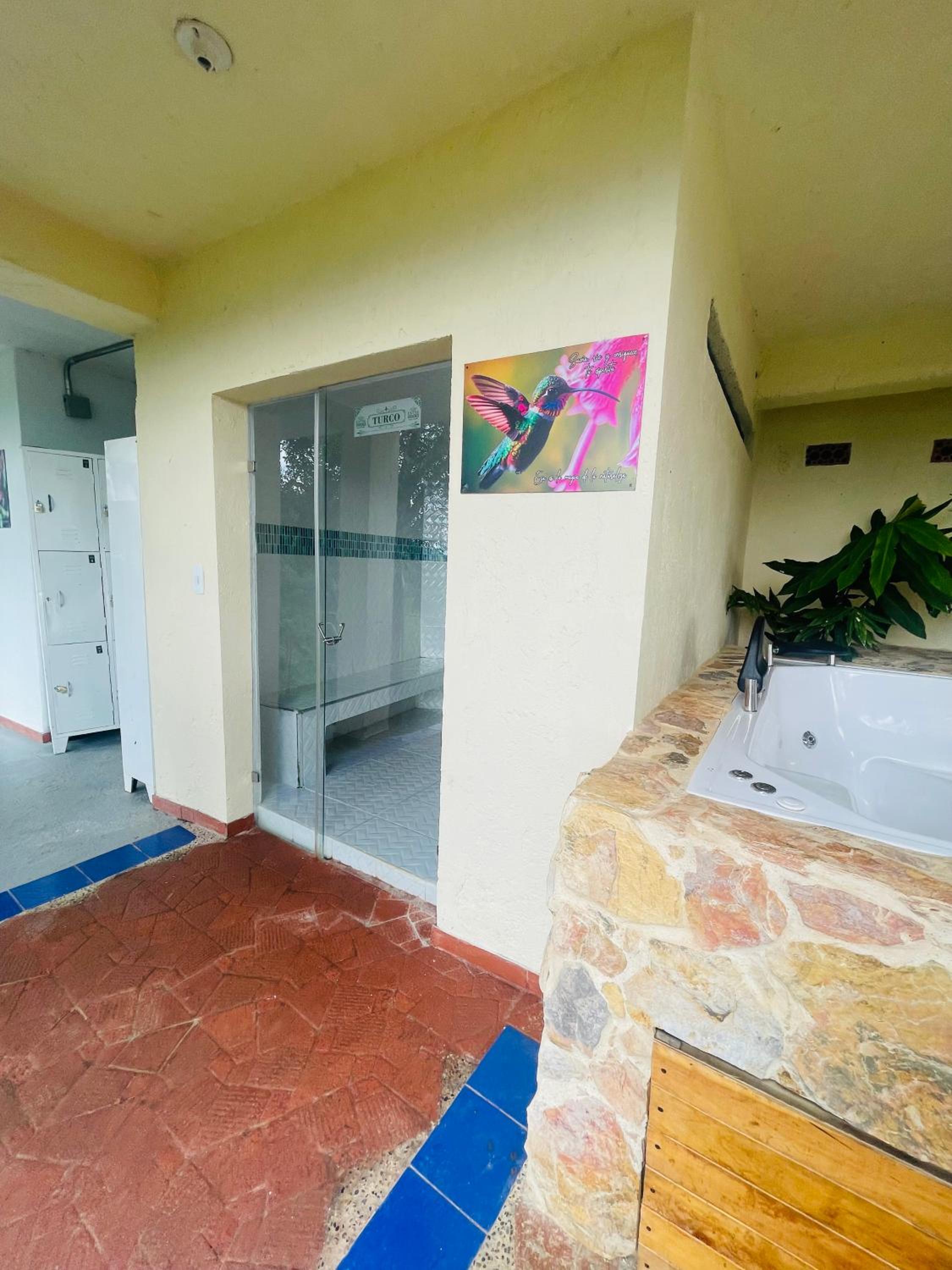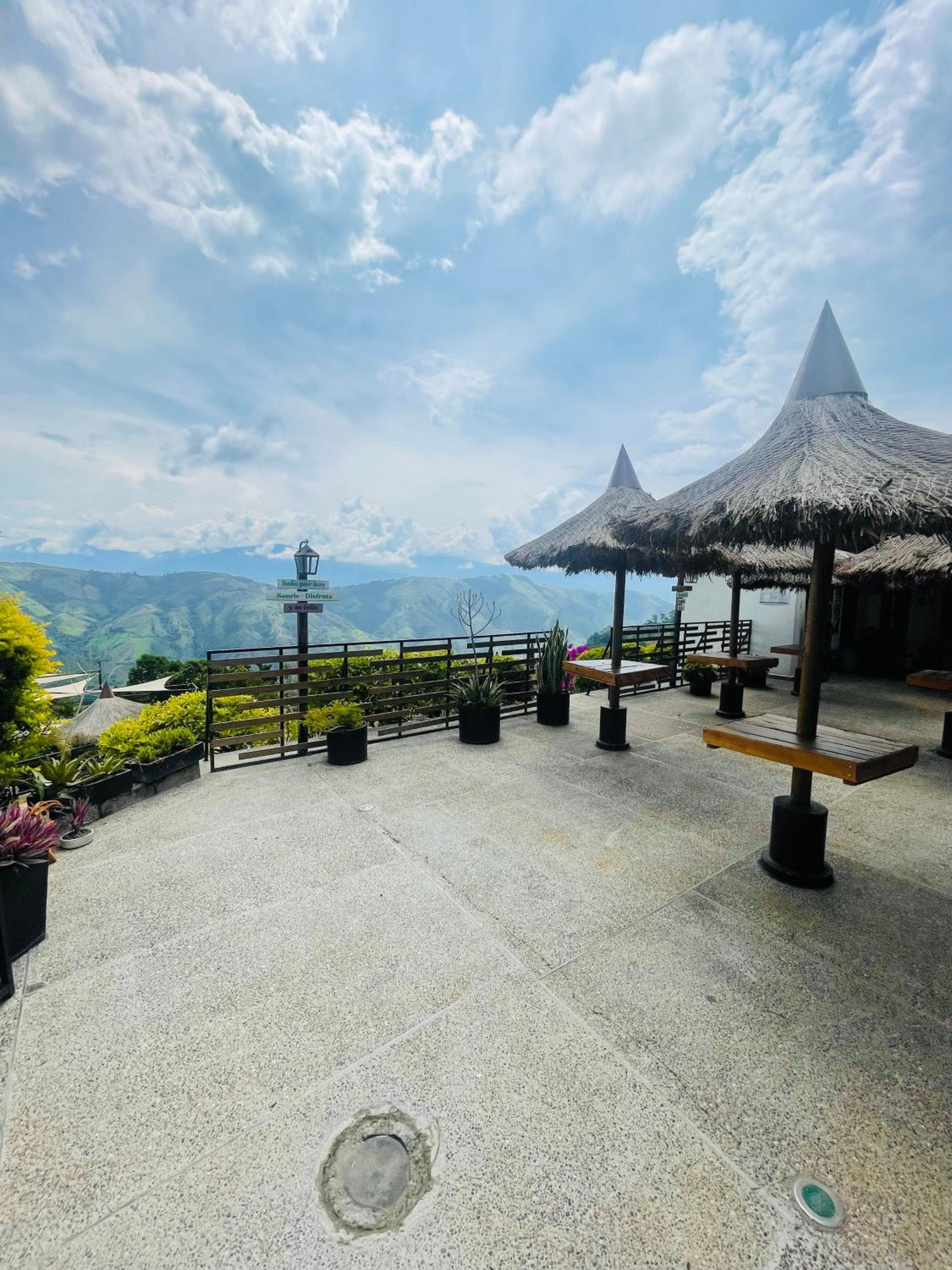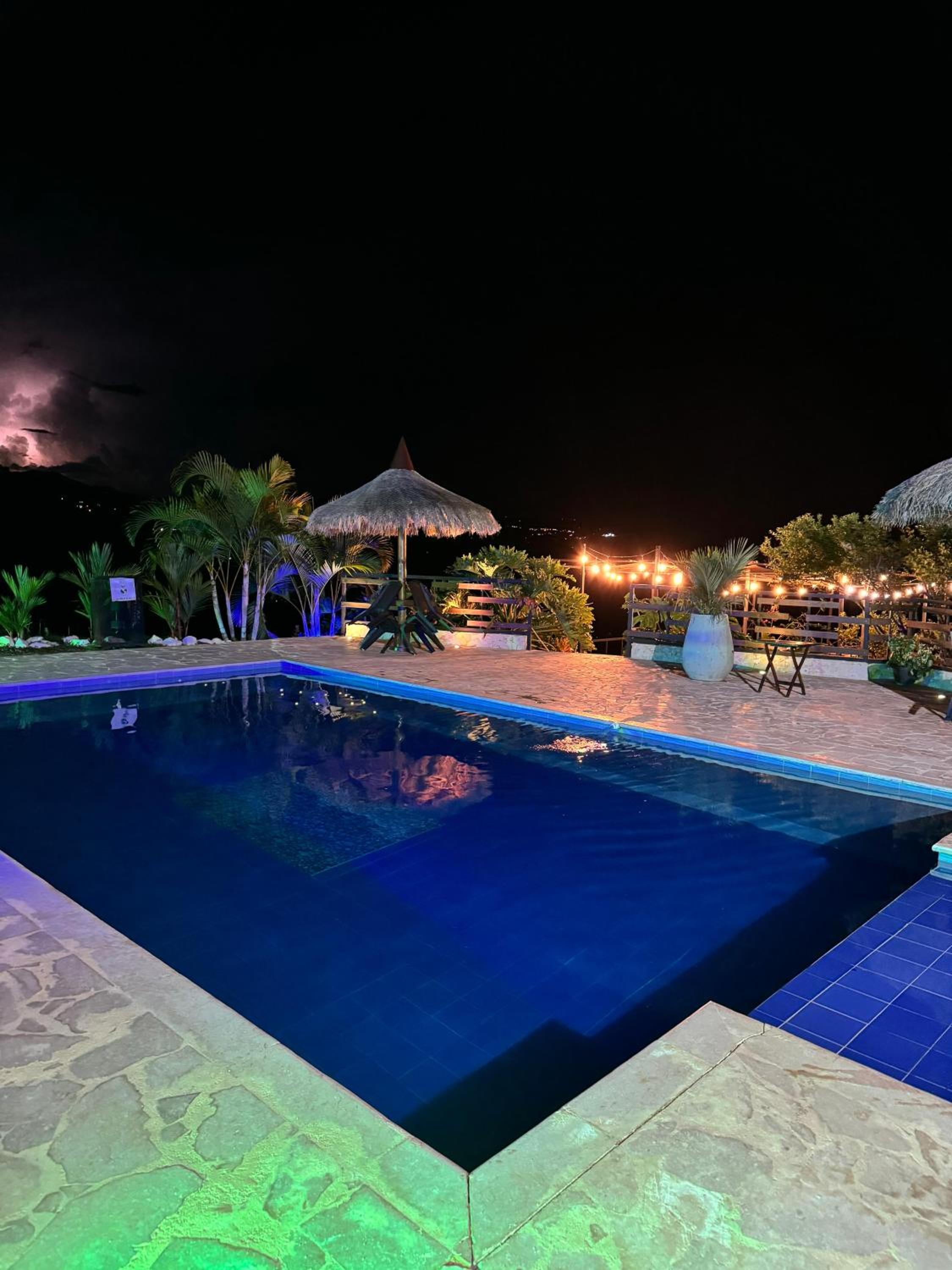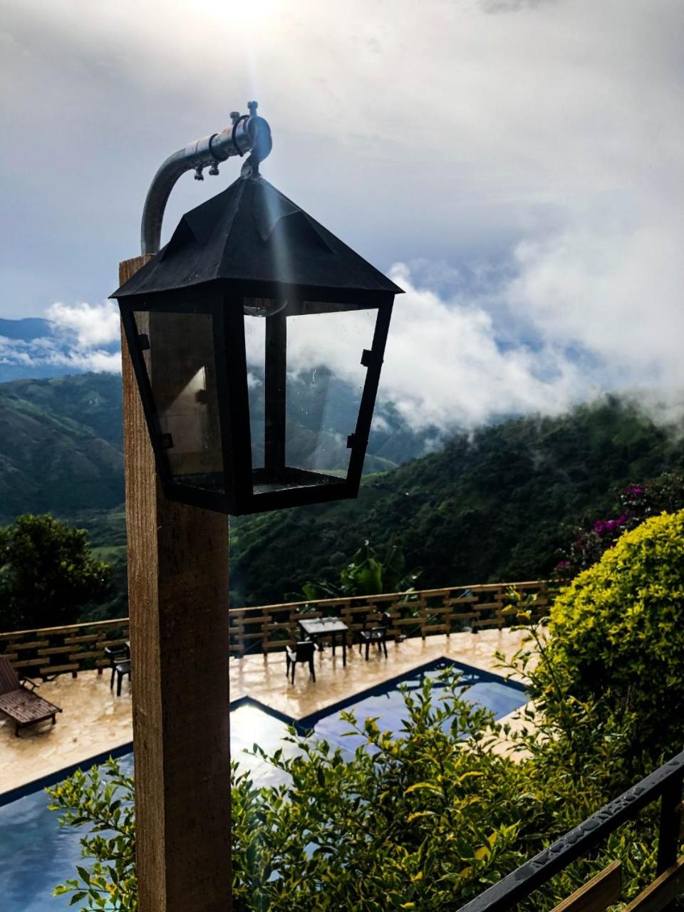 We stayed in the hotel portion of the property. Restaurant was not operating except for a minimal breakfast offering. Bar did not exist. The room had no closet or space to hang or store clothes, and only one light bulb and no AC or even a fan. Only one outlet to charge phones. Bathroom was small and only one light bulb. Pool was not heated. Bedding was thin and mattress was very hard. The view was nice but not different than anywhere else in Colombia. The road to the hotel was unpaved and very rough. The only offering for dinner was a chicken and hotdog skewer. Town was a long ride and no quality restaurants.