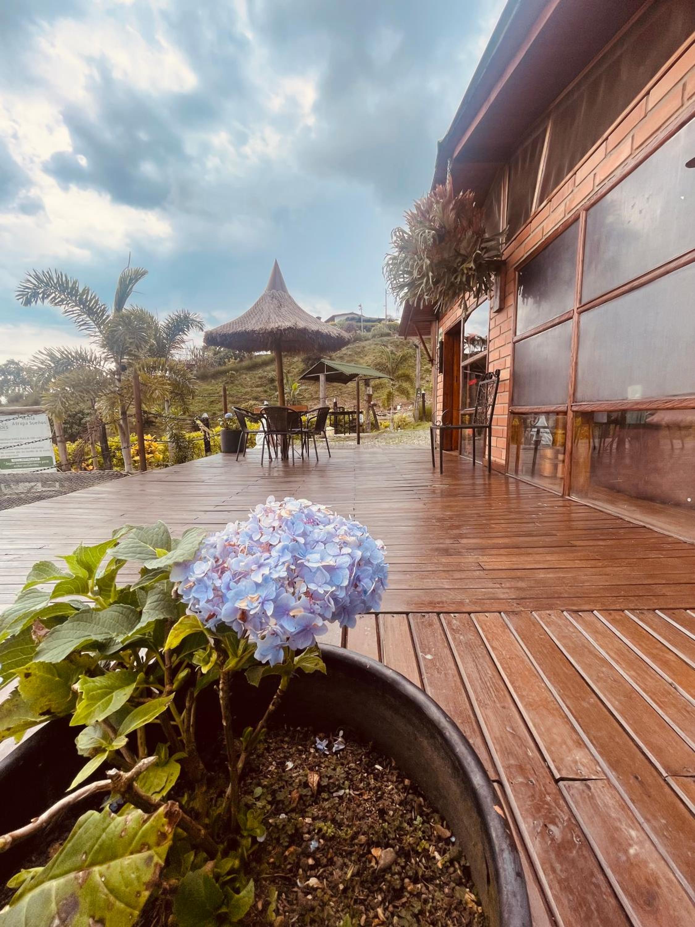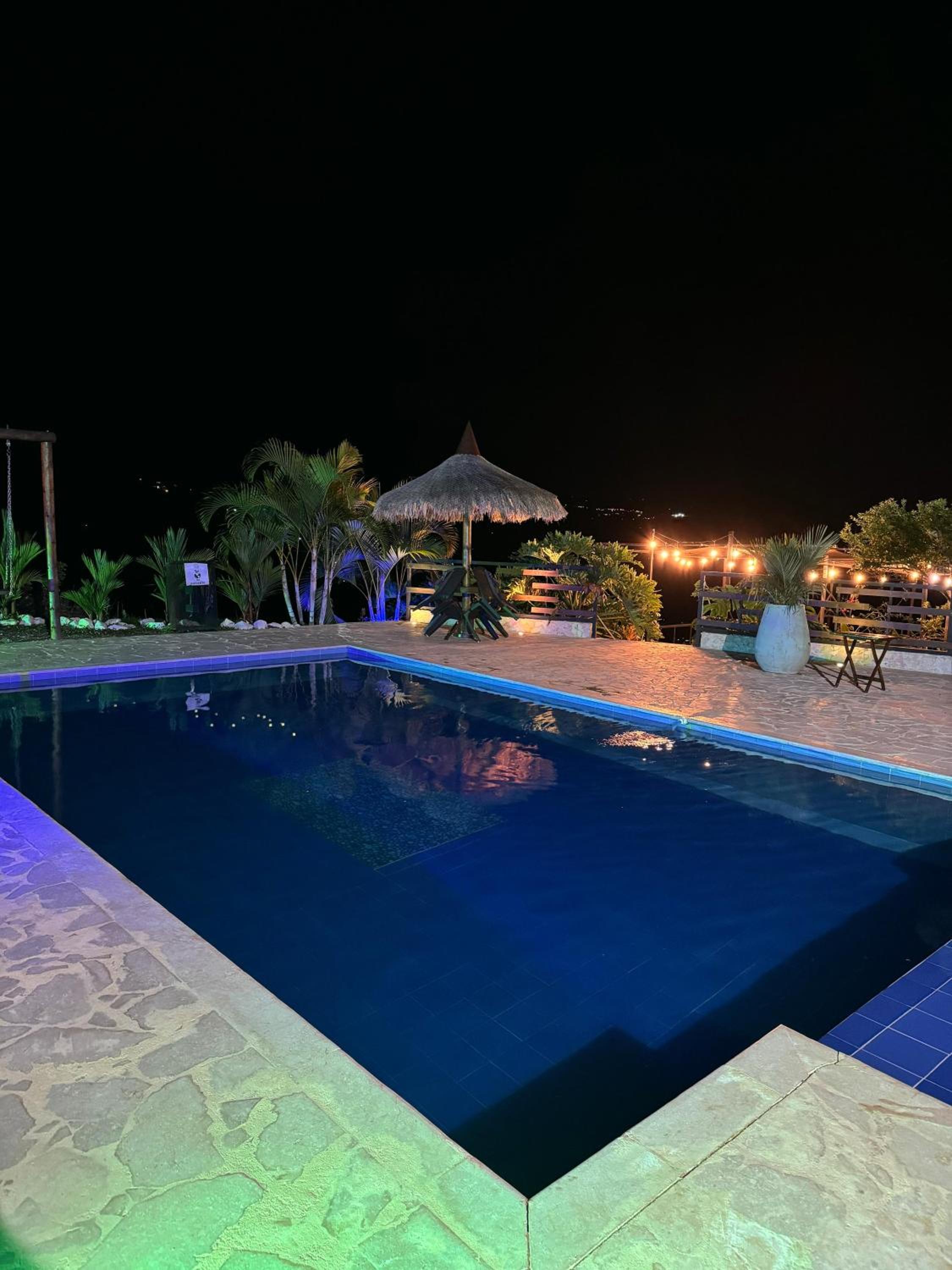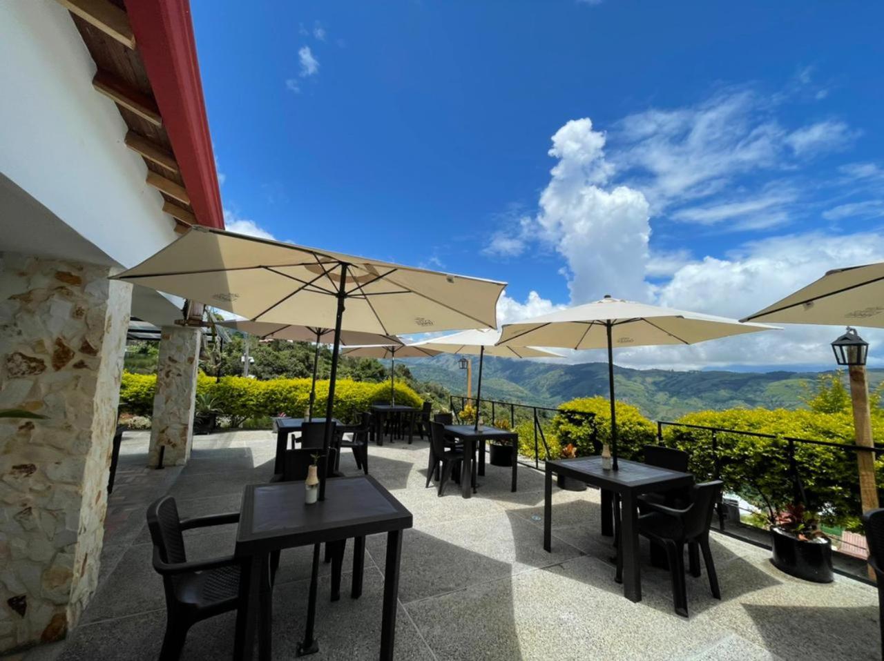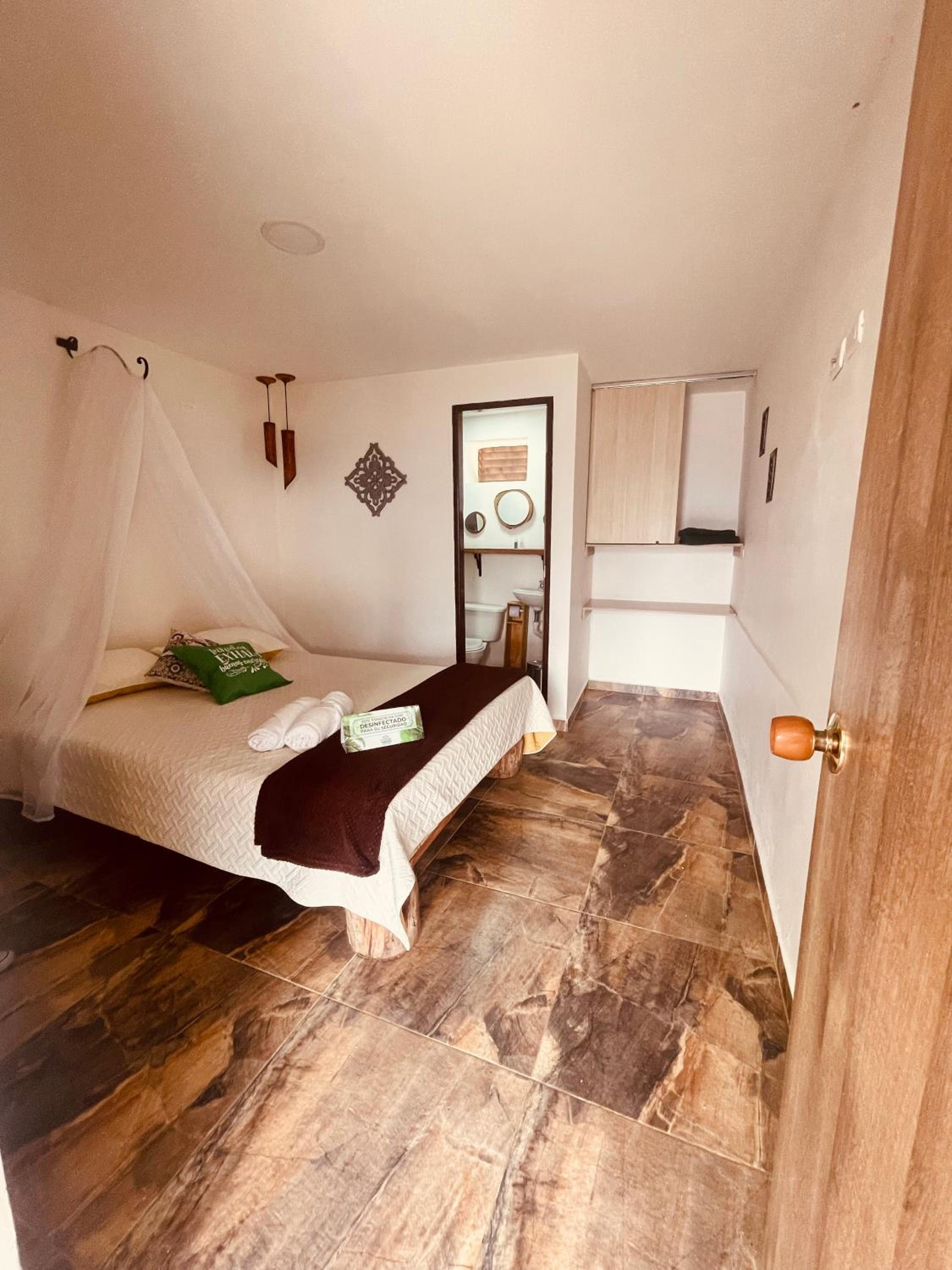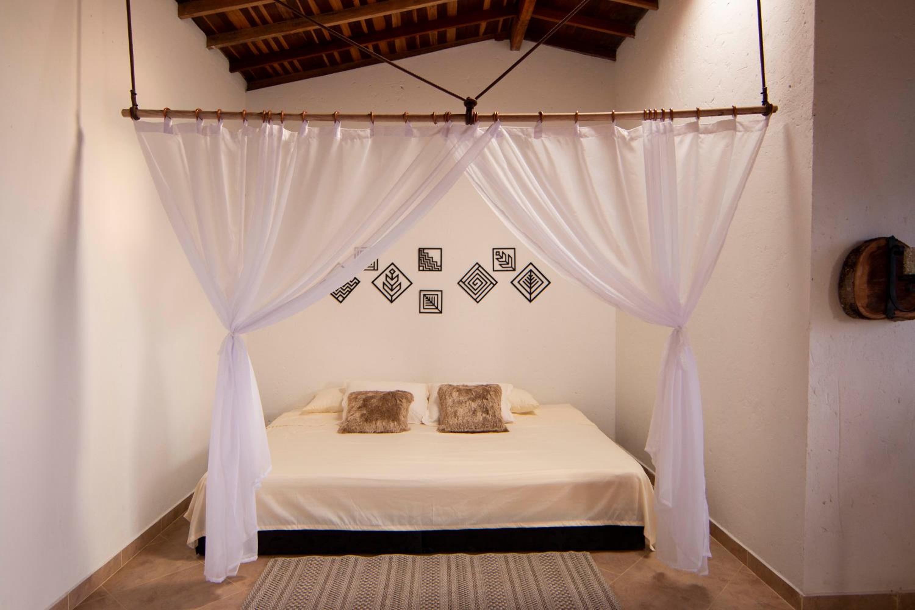 We stayed in the hotel portion of the property. Restaurant was not operating except for a minimal breakfast offering. Bar did not exist. The room had no closet or space to hang or store clothes, and only one light bulb and no AC or even a fan. Only one outlet to charge phones. Bathroom was small and only one light bulb. Pool was not heated. Bedding was thin and mattress was very hard. The view was nice but not different than anywhere else in Colombia. The road to the hotel was unpaved and very rough. The only offering for dinner was a chicken and hotdog skewer. Town was a long ride and no quality restaurants.