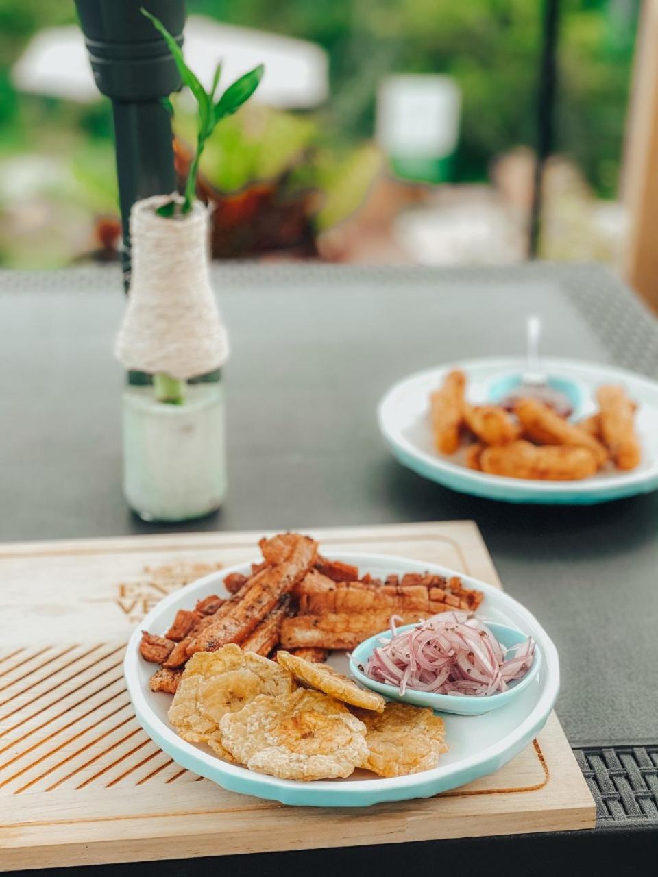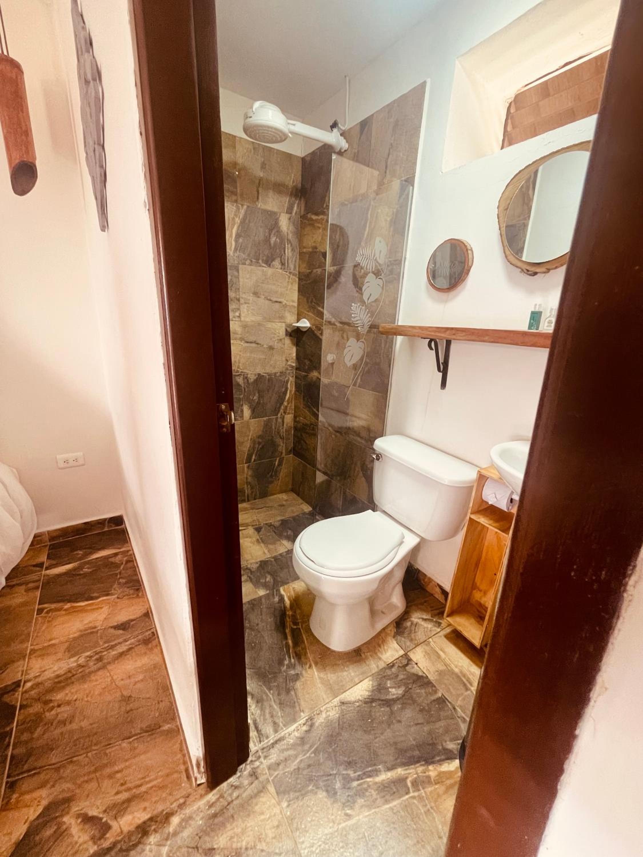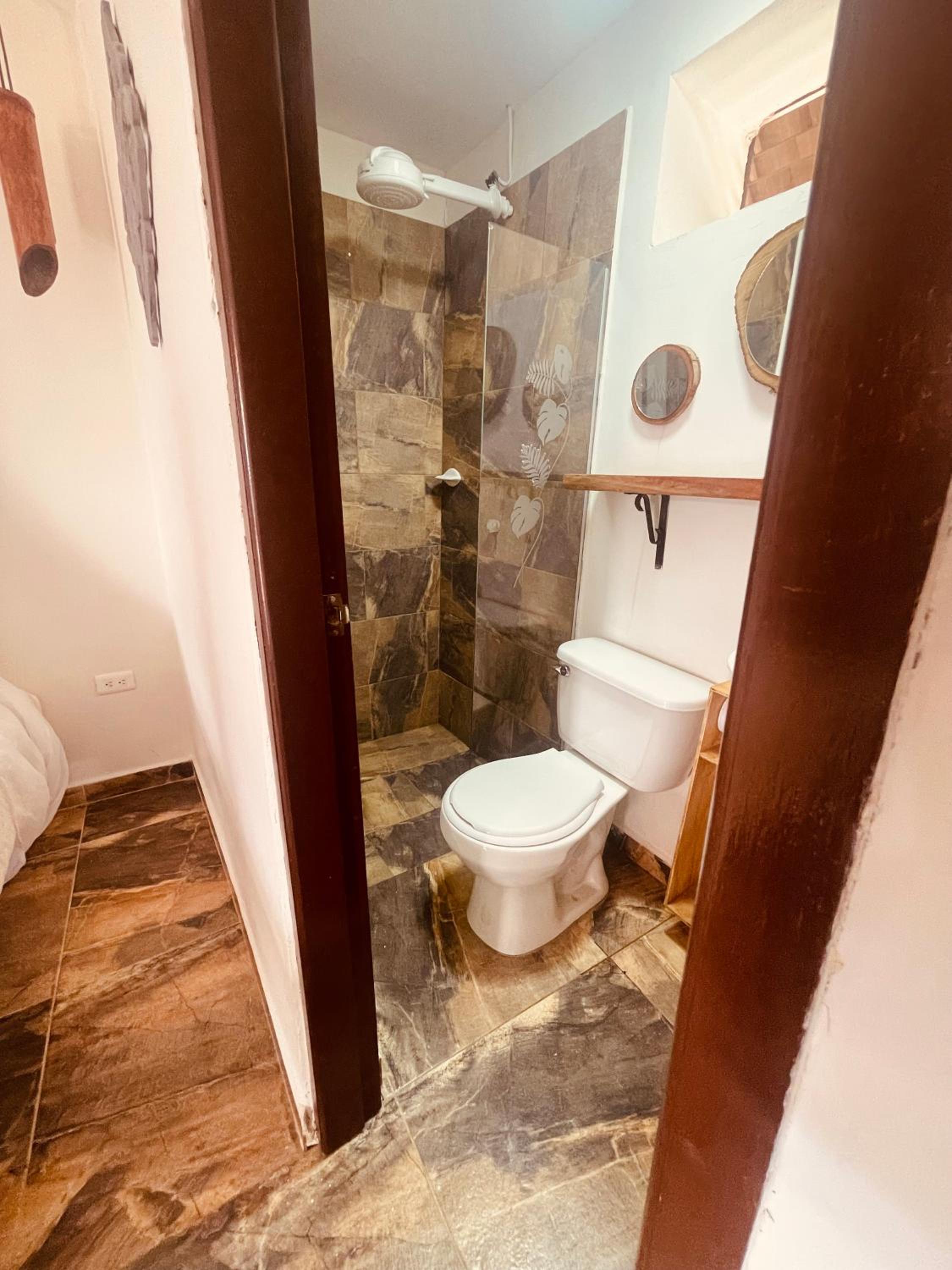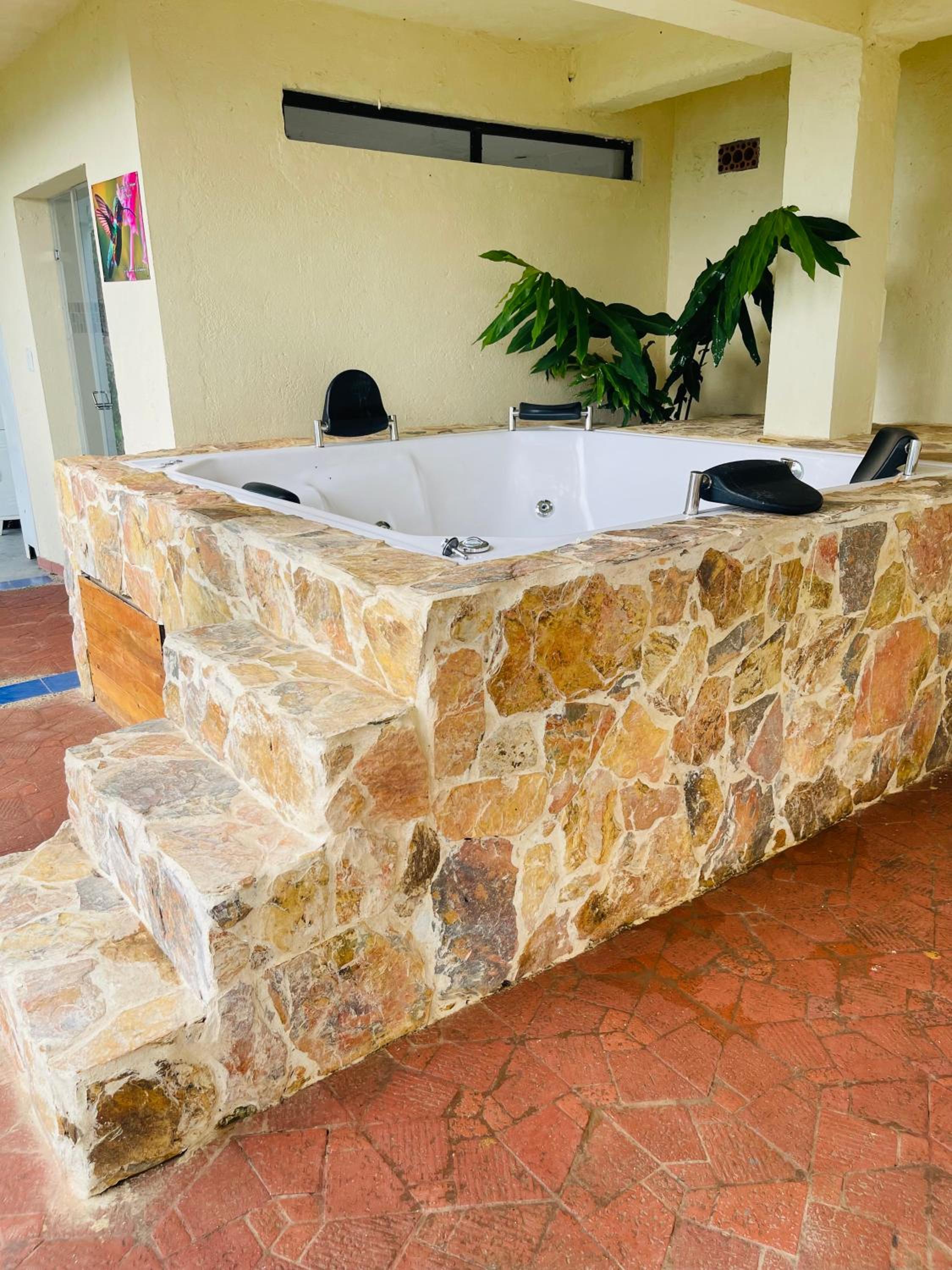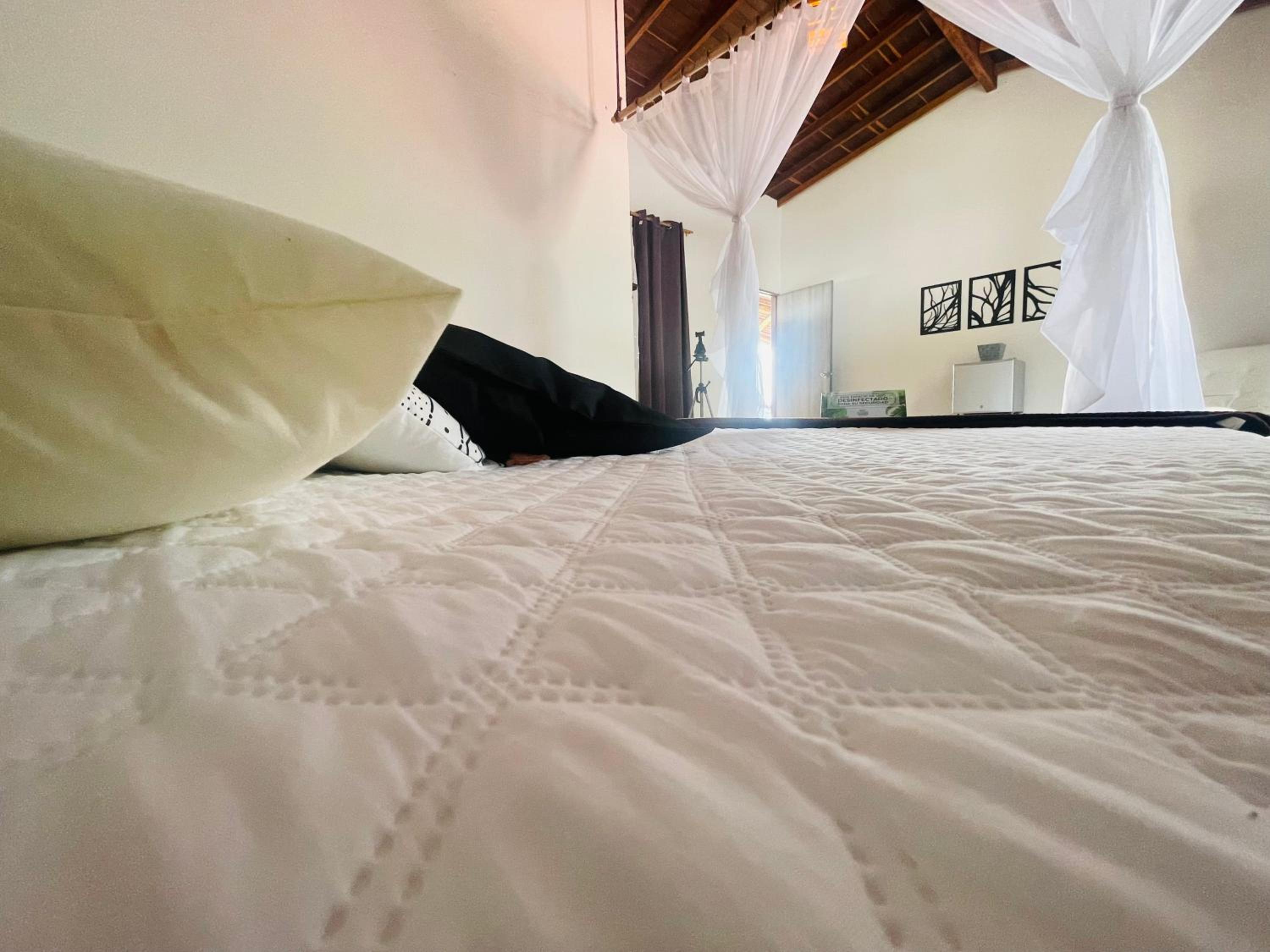 We stayed in the hotel portion of the property. Restaurant was not operating except for a minimal breakfast offering. Bar did not exist. The room had no closet or space to hang or store clothes, and only one light bulb and no AC or even a fan. Only one outlet to charge phones. Bathroom was small and only one light bulb. Pool was not heated. Bedding was thin and mattress was very hard. The view was nice but not different than anywhere else in Colombia. The road to the hotel was unpaved and very rough. The only offering for dinner was a chicken and hotdog skewer. Town was a long ride and no quality restaurants.
