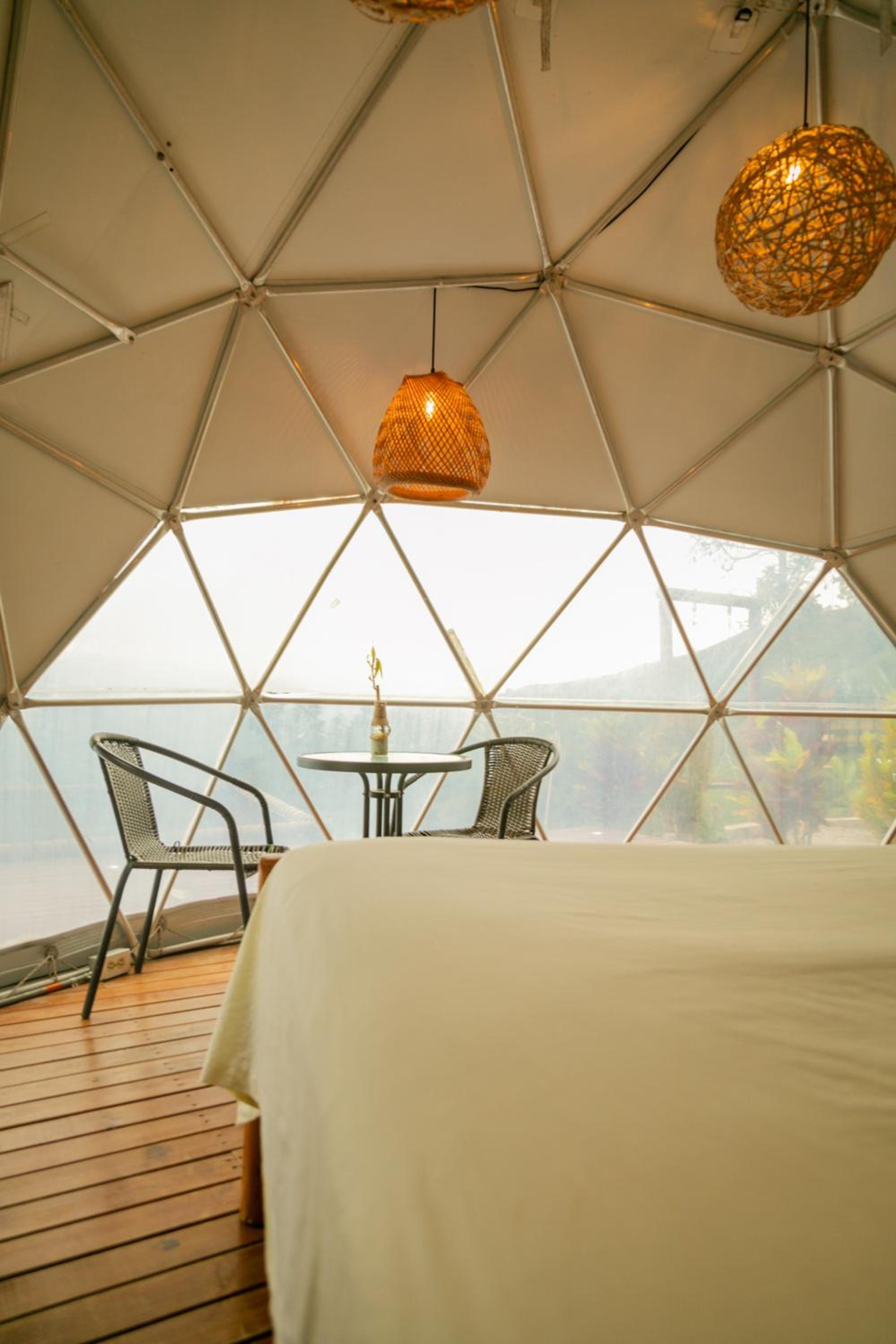 Wake up to stunning panoramic views of lush gardens and rolling hills from the private balconies in each glamping unit, creating an intimate connection with nature.
