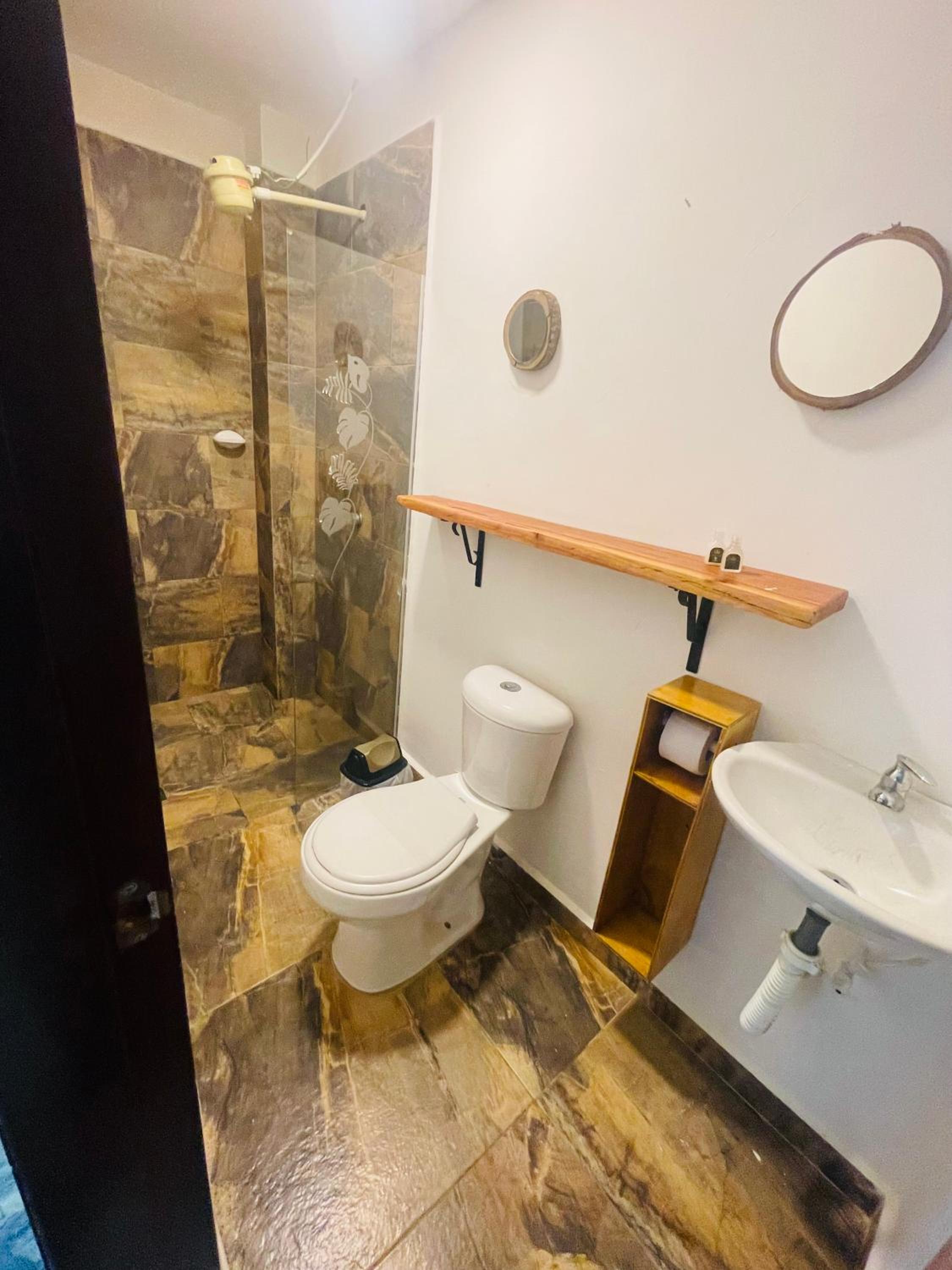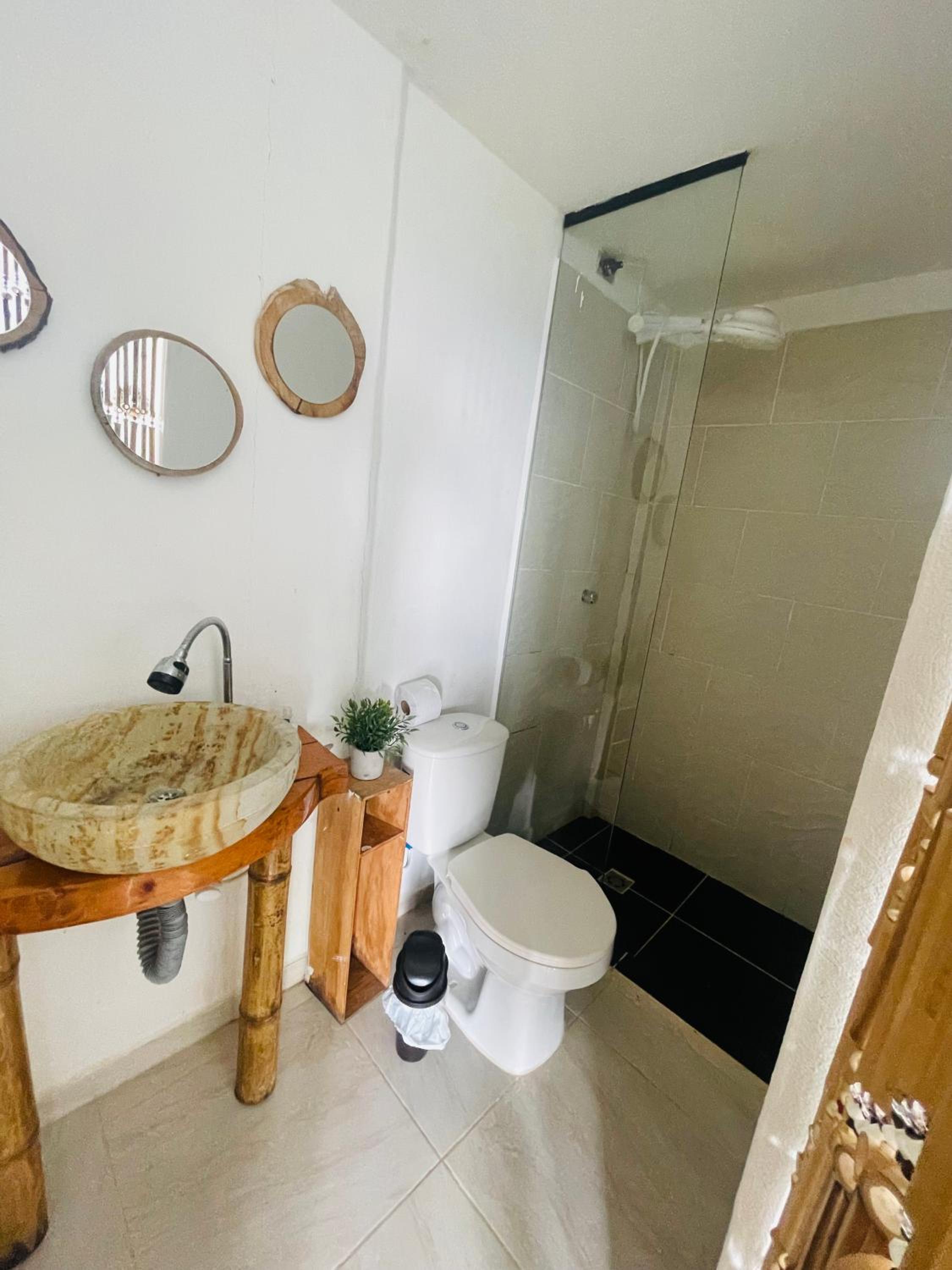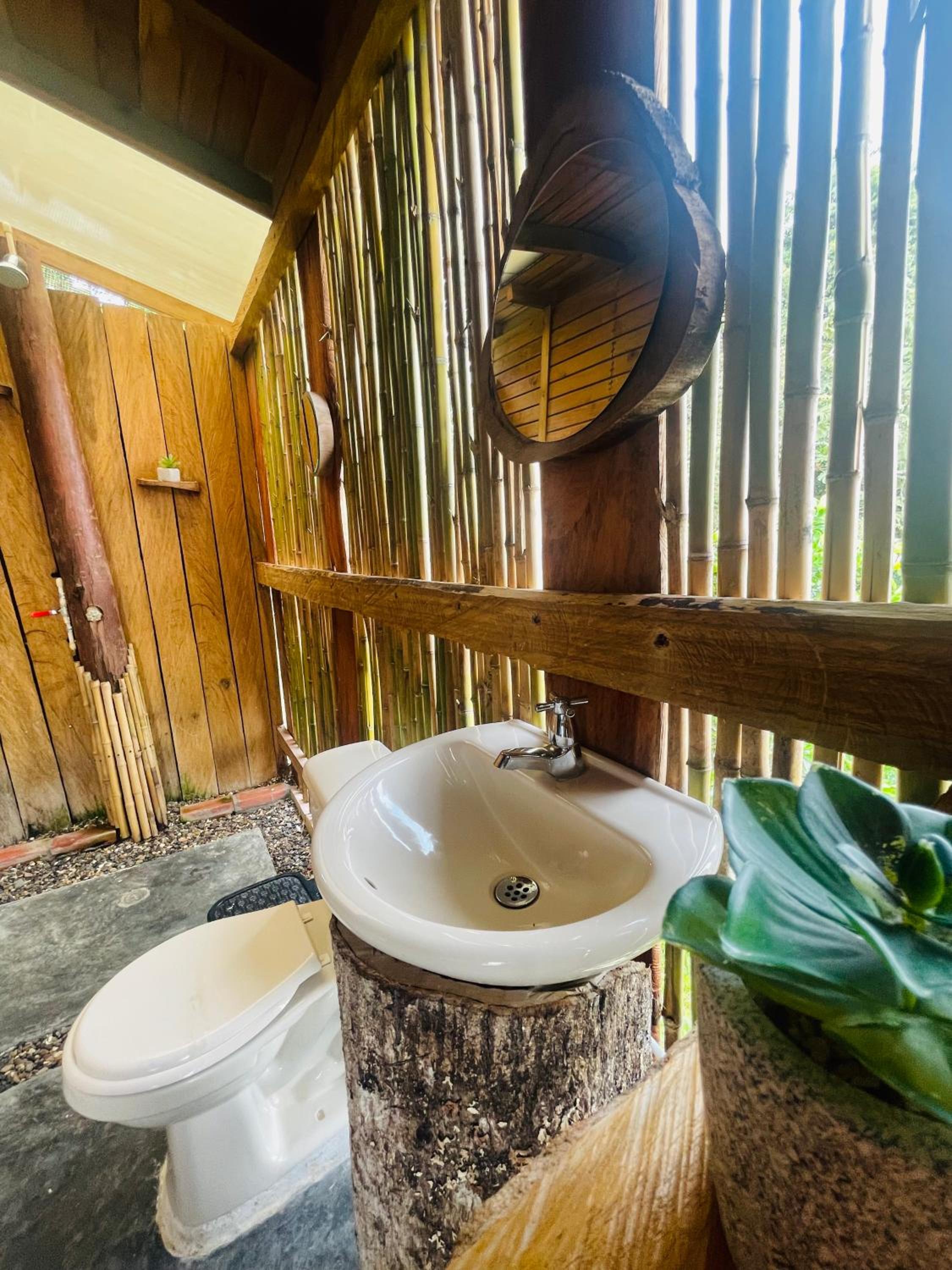 Not safe / doors cannot lock / windows don’t have any lock / dog poo all over / road awful / no security / no other guess / lonely spot/ no organization or direction for a behotel / bathroom does not have any door / bathroom for showering cannot close / bed is rock hard / bad odor / bubbles door cannot lock / no English speaking assistance/ had to carry bags down large hill and back by my self , but could not pull bags because the roading was awful